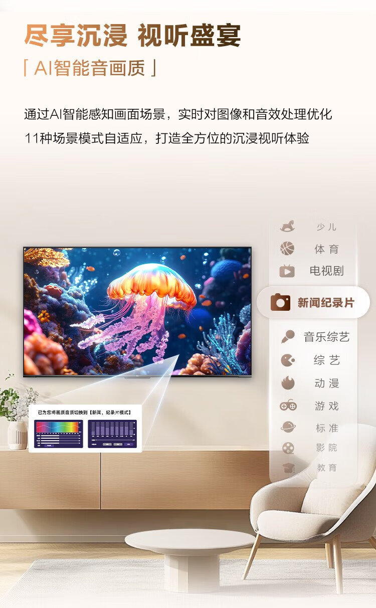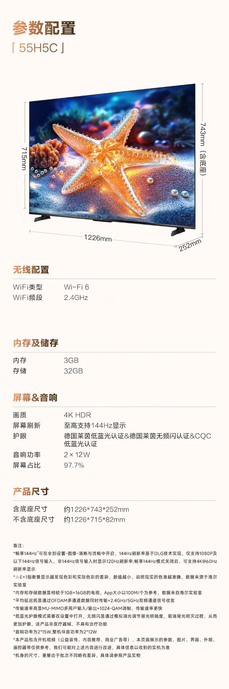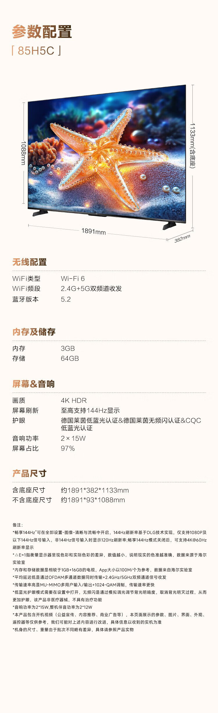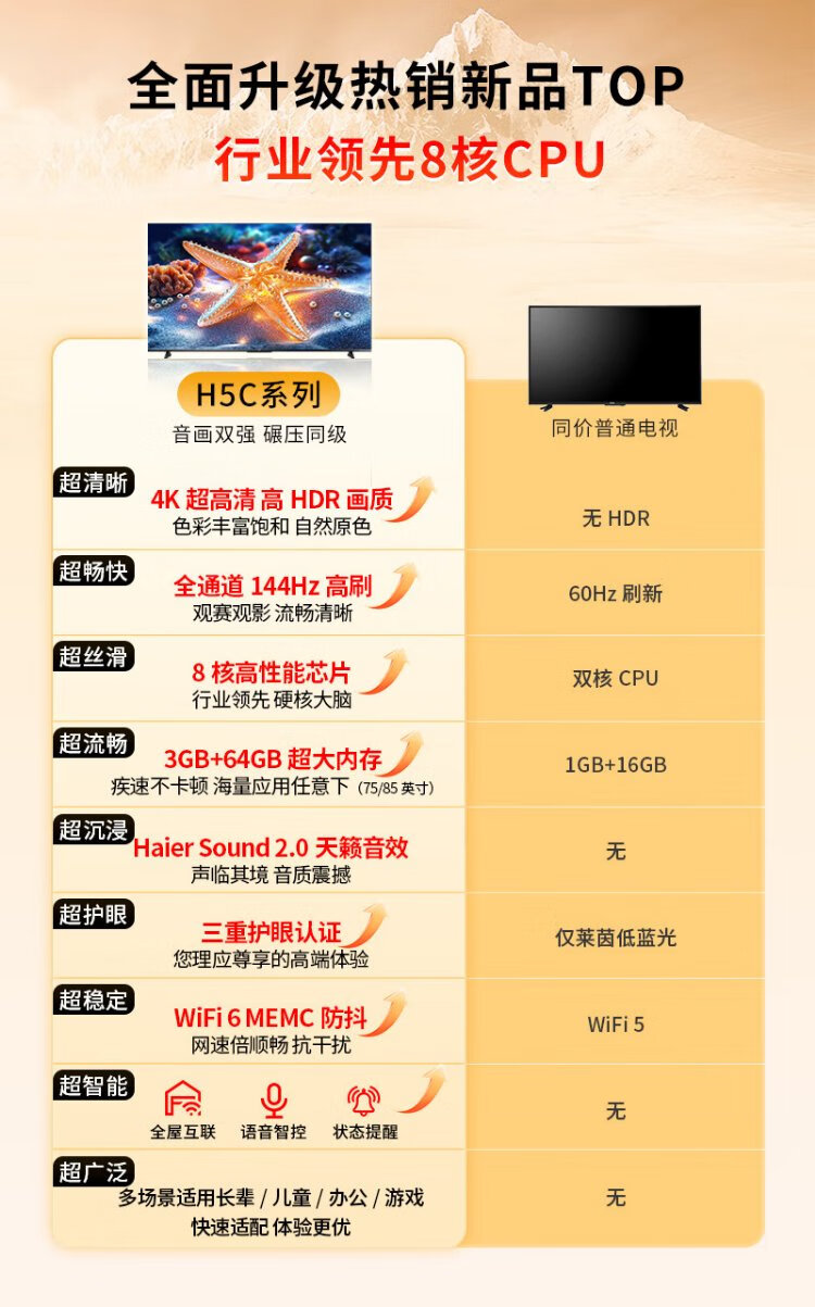 Haier TV 85/75/65/55-inch home H5C state-subsidized smart high-definition 4K flat-panel smart screen 144HZ color TV ultra-thin eye protection trade-in first-class energy efficiency 75-inch new product 3+64G memory 8-core CPU Consult customer service to enjoy discounts