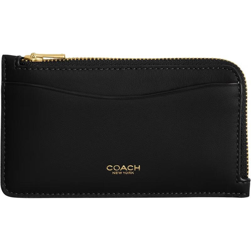 COACH Women's Wallet Multi-card Slot Zipper Sandwich Business Simple Commuting Leather Wallet Gift for Girlfriend Black ONE SIZE