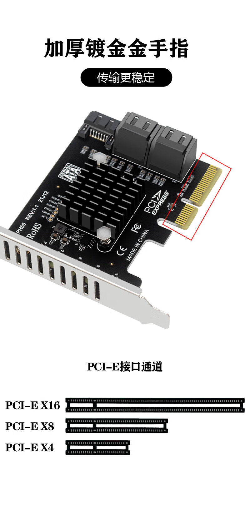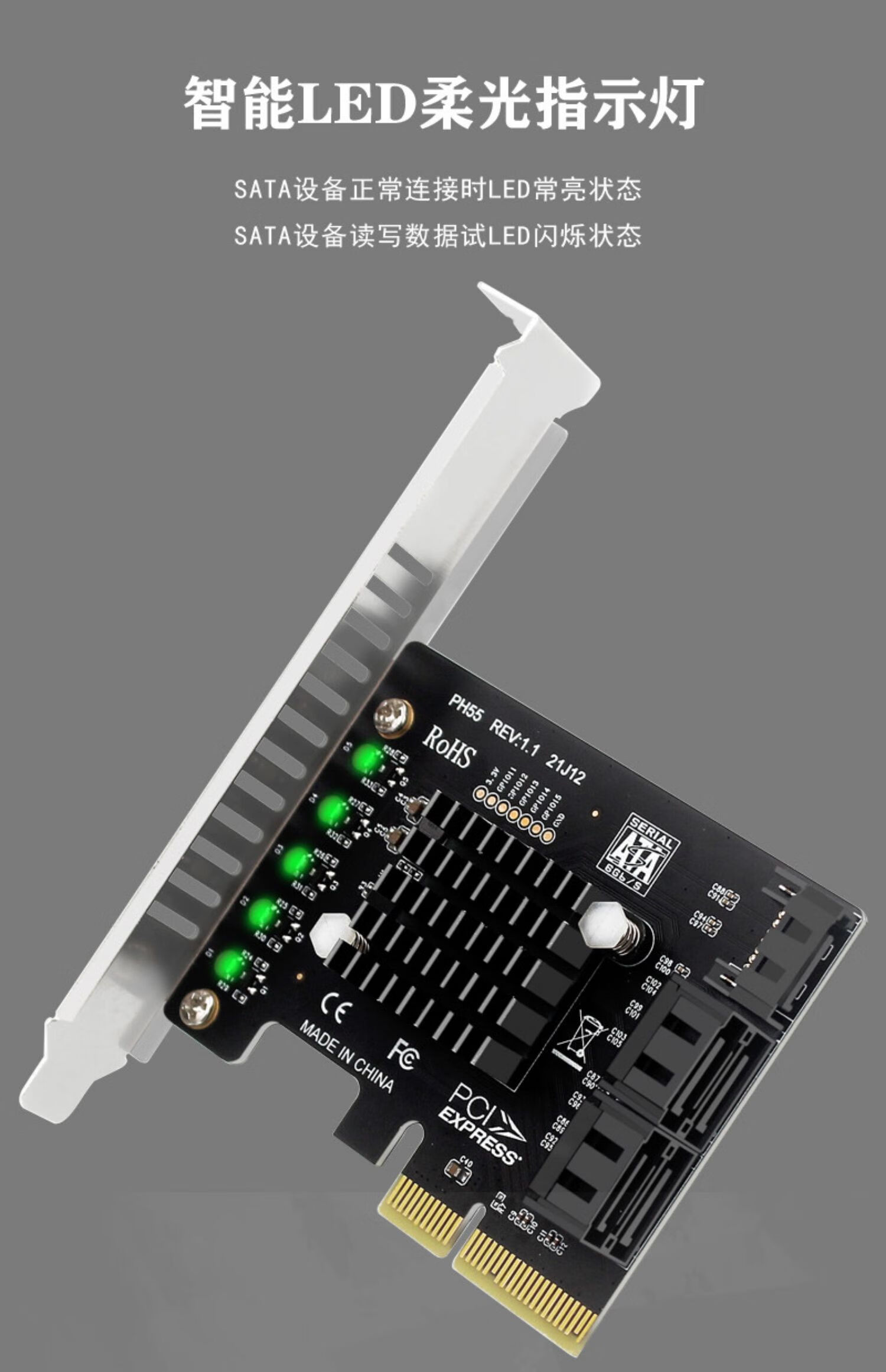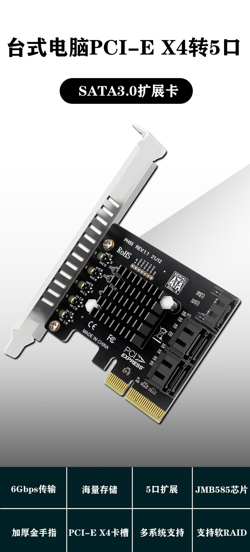 Yue Changsheng PCIe to 5-port SATA3.0 expansion card JMB585 supports cascading TRIM Panhong PH55 full-height bezel