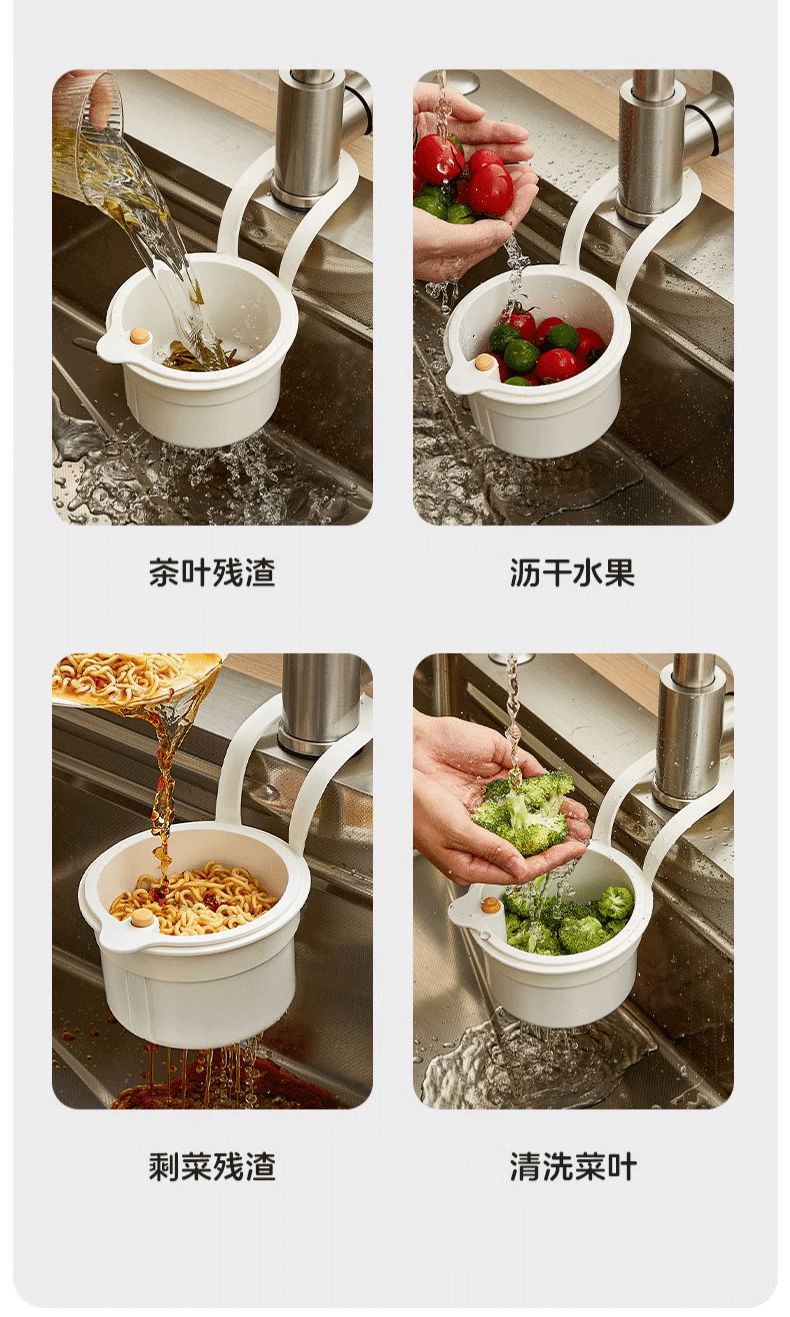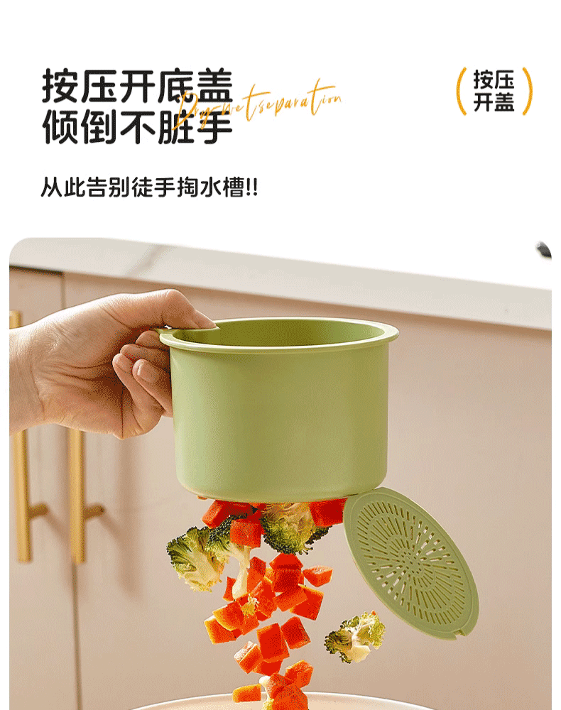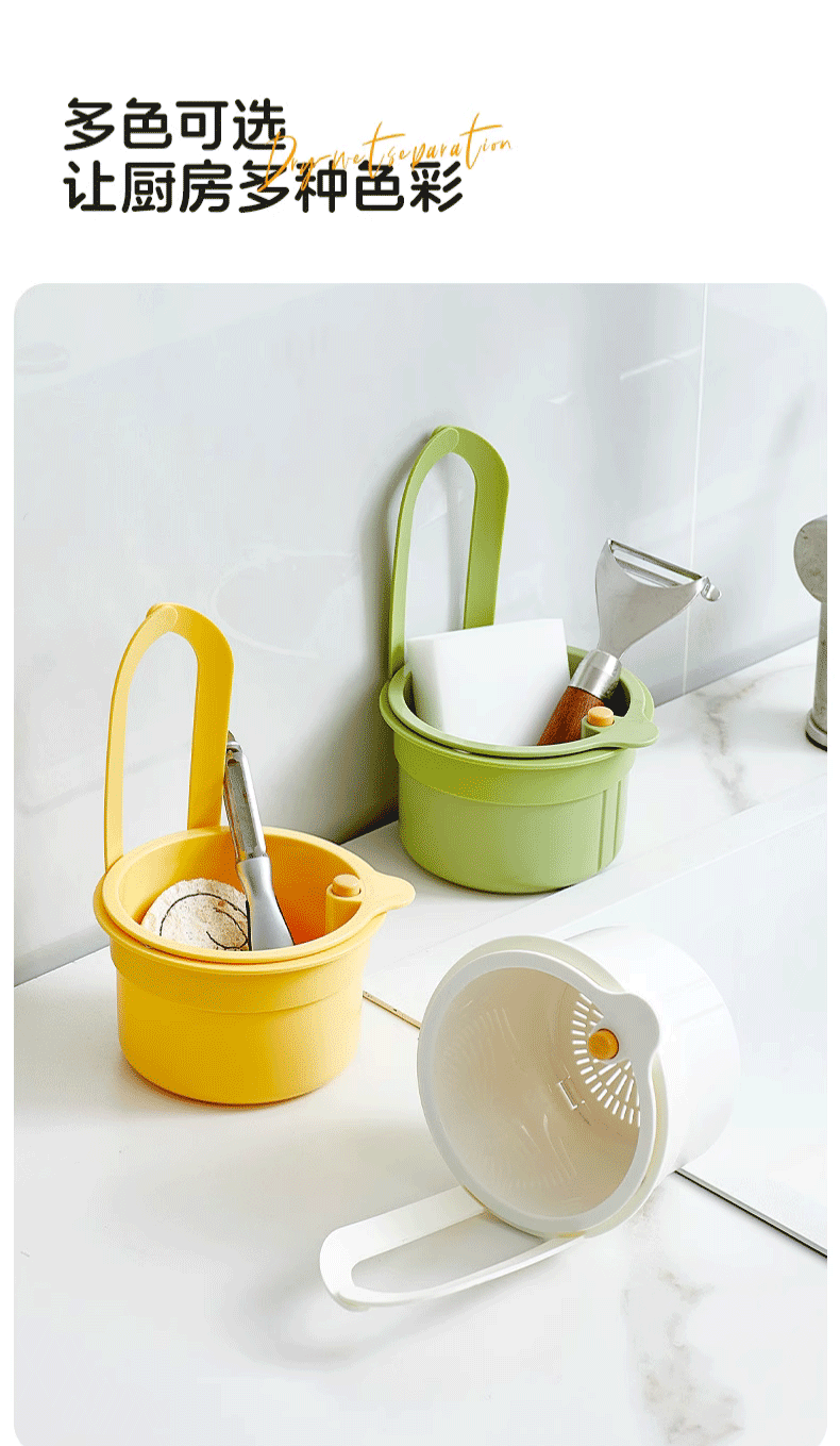 MPPMCK sink drain basket hanging household kitchen food residue garbage separation filter basket fruit cleaning drain rack one-click opening and closing without dirty hands green 1 pack