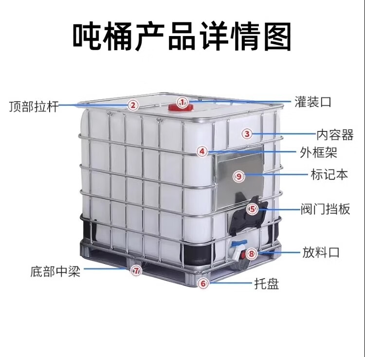 Ton barrel 1000 liters new thickened diesel barrel 1 ton square plastic barrel water tank chemical barrel acid and alkali resistant water storage tank 1000 liter white ton barrel (cleaned version)