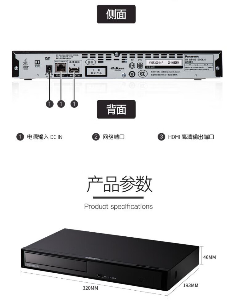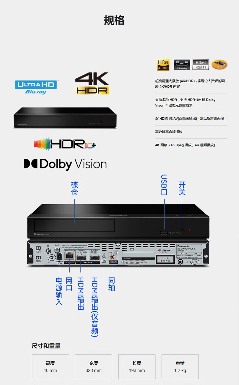 Panasonic DP-UB150GK/UB450 HD DVD Dolby Vision hard disk player Home DVD player UB450 cracked version Blu-ray ABC zone DVD full zone