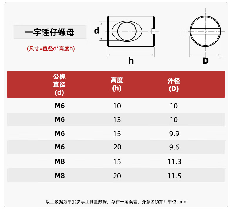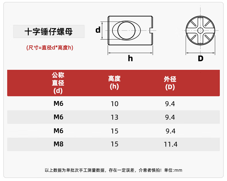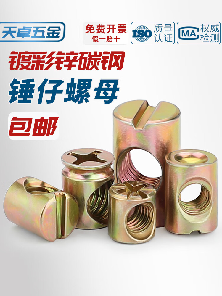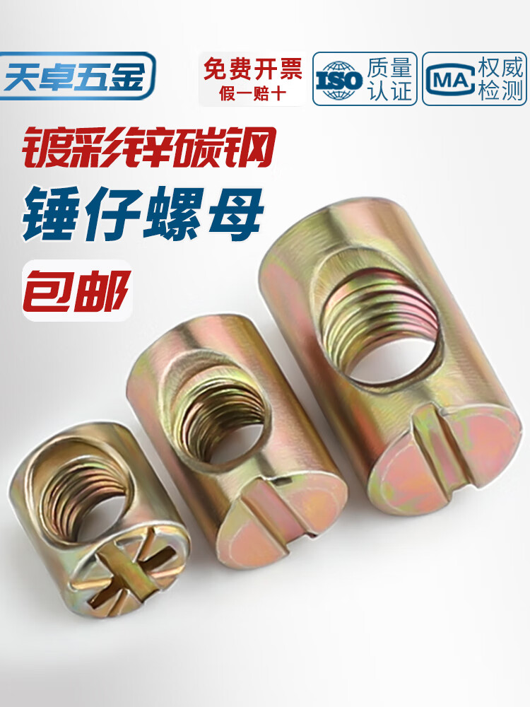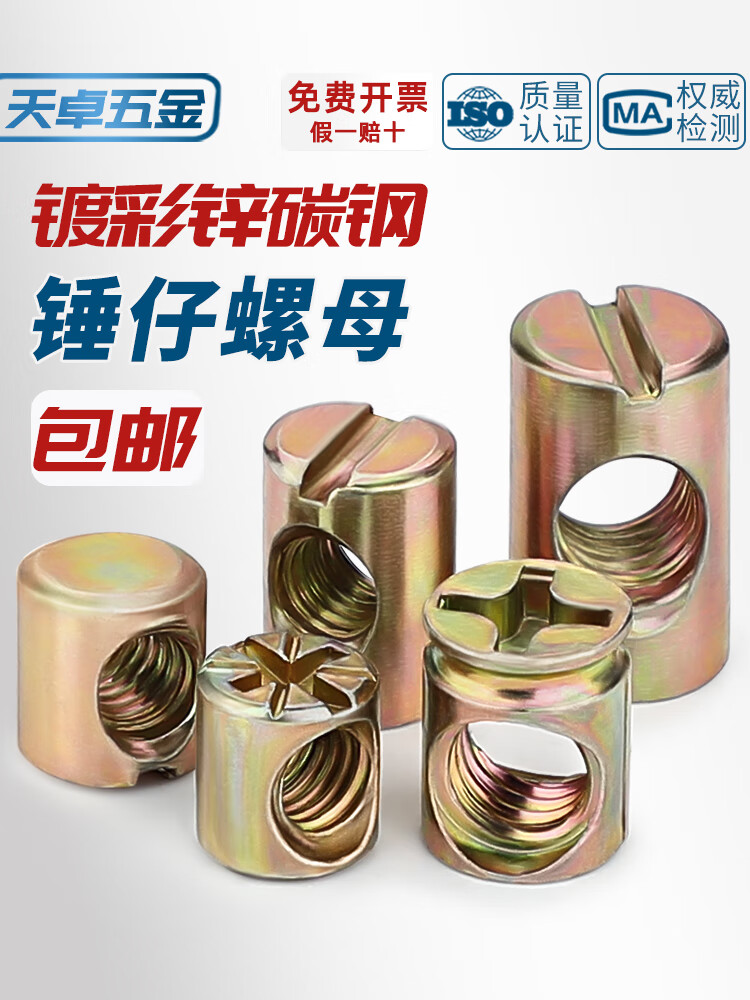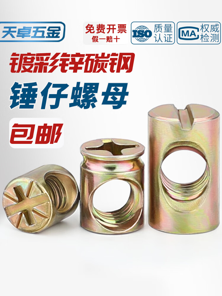 Tianzhuo Hardware National Standard Hammer Nut Hammer Head Nut Furniture Two-in-One Connector Collection Hammer Embedded Screw Cap M6M8mm M6*11 20 pieces/one word/color zinc