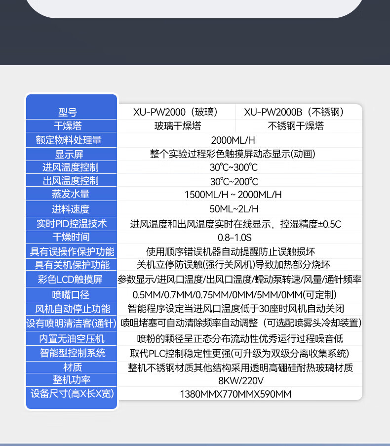 Xiniu Technology Laboratory Spray Drying Small Stainless Steel High-speed Centrifugal Atomization Drying Equipment High Temperature XU-PW2000 (Glass) High Temperature Resistant Material