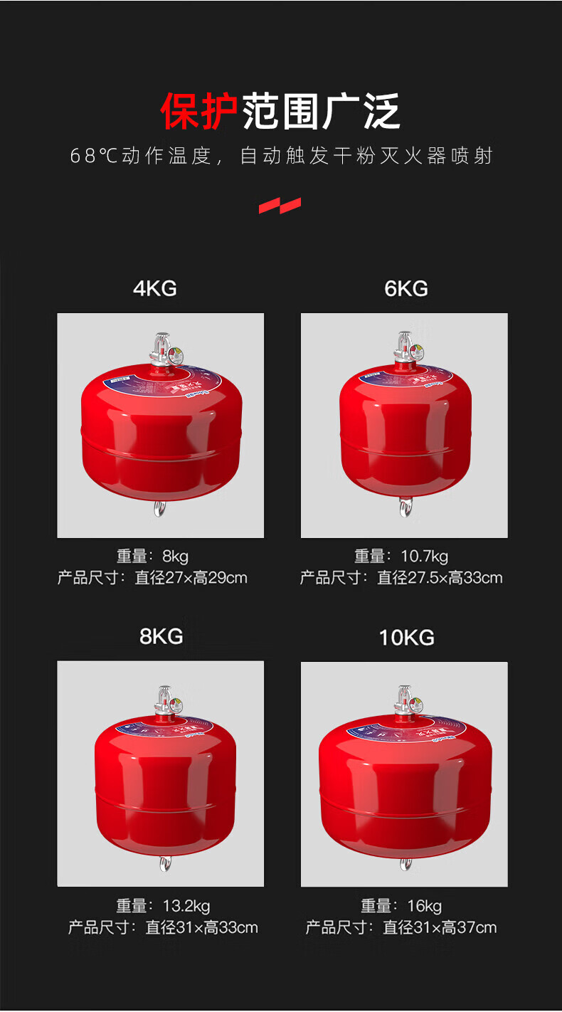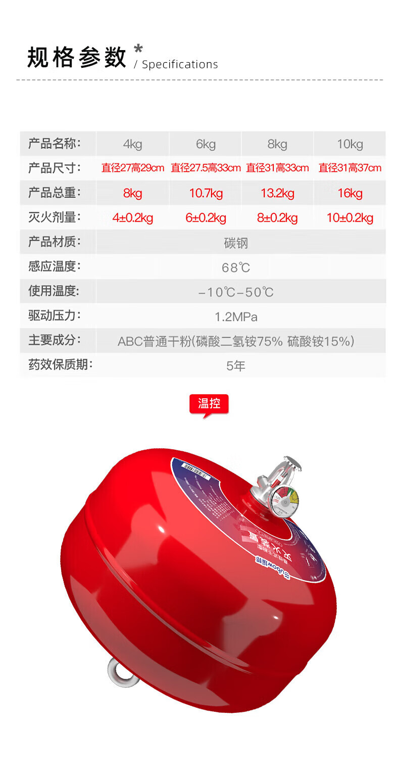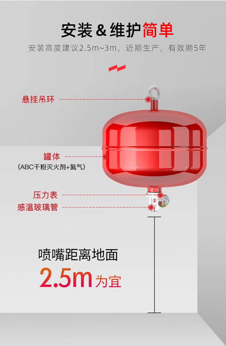 Yuanbang suspended dry powder fire extinguisher automatic fire extinguishing temperature control device fire certified commercial machine room carport garage parking hanging dry powder fire extinguisher 10kg ultra-fine
