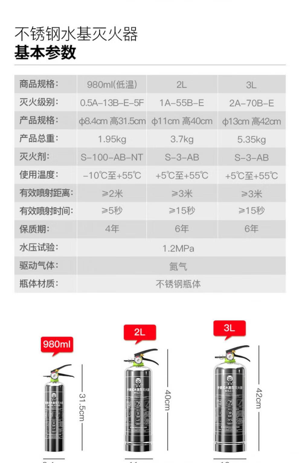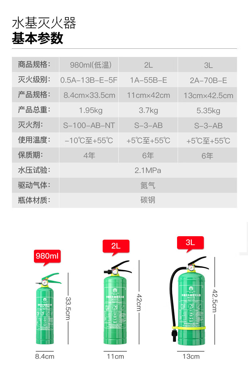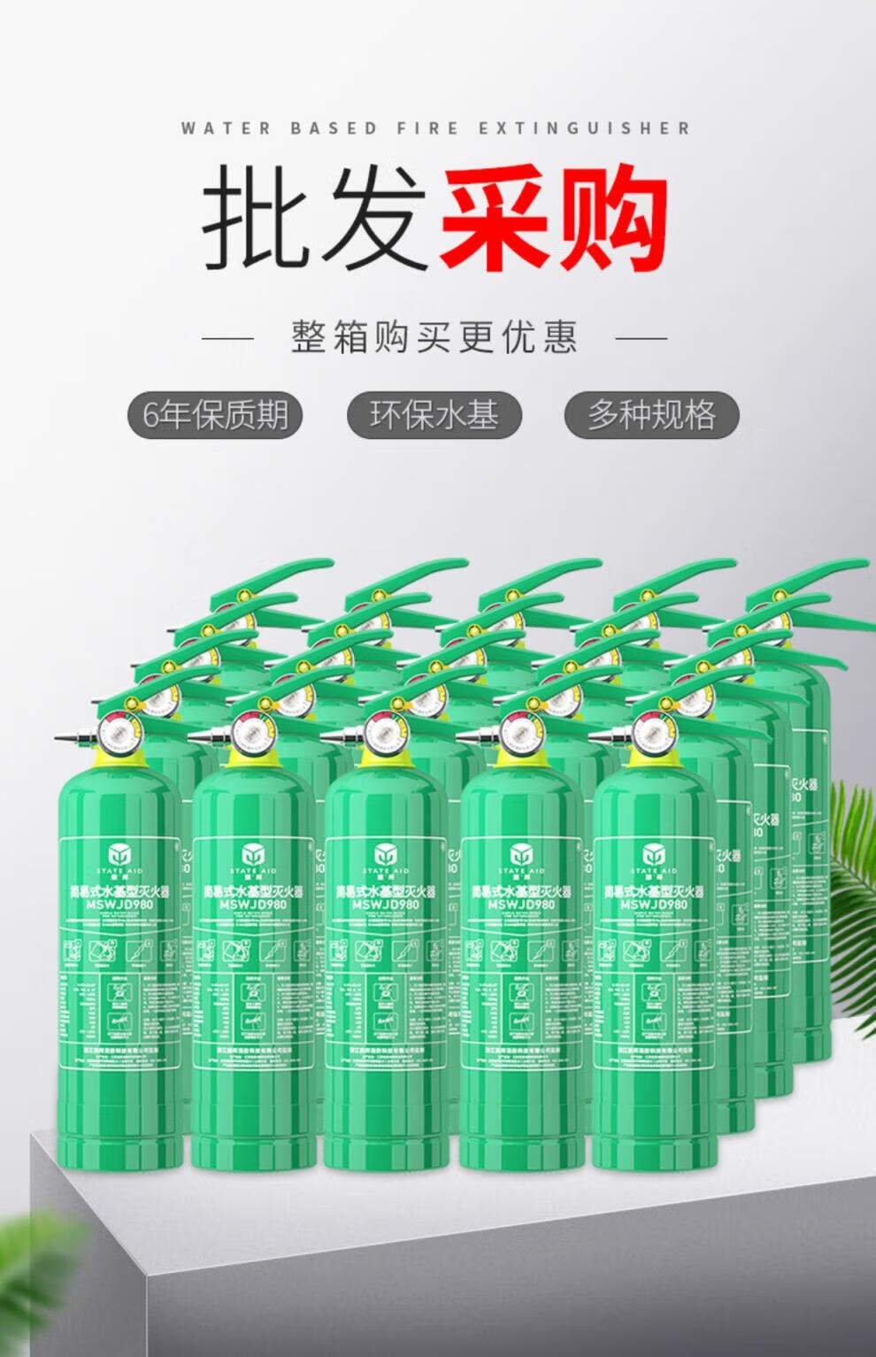 Yuanbang water-based fire extinguisher vehicle-mounted small portable household fire fighting equipment full box purchase 980ml carbon steel MSWJD980 20 bottles (one box)