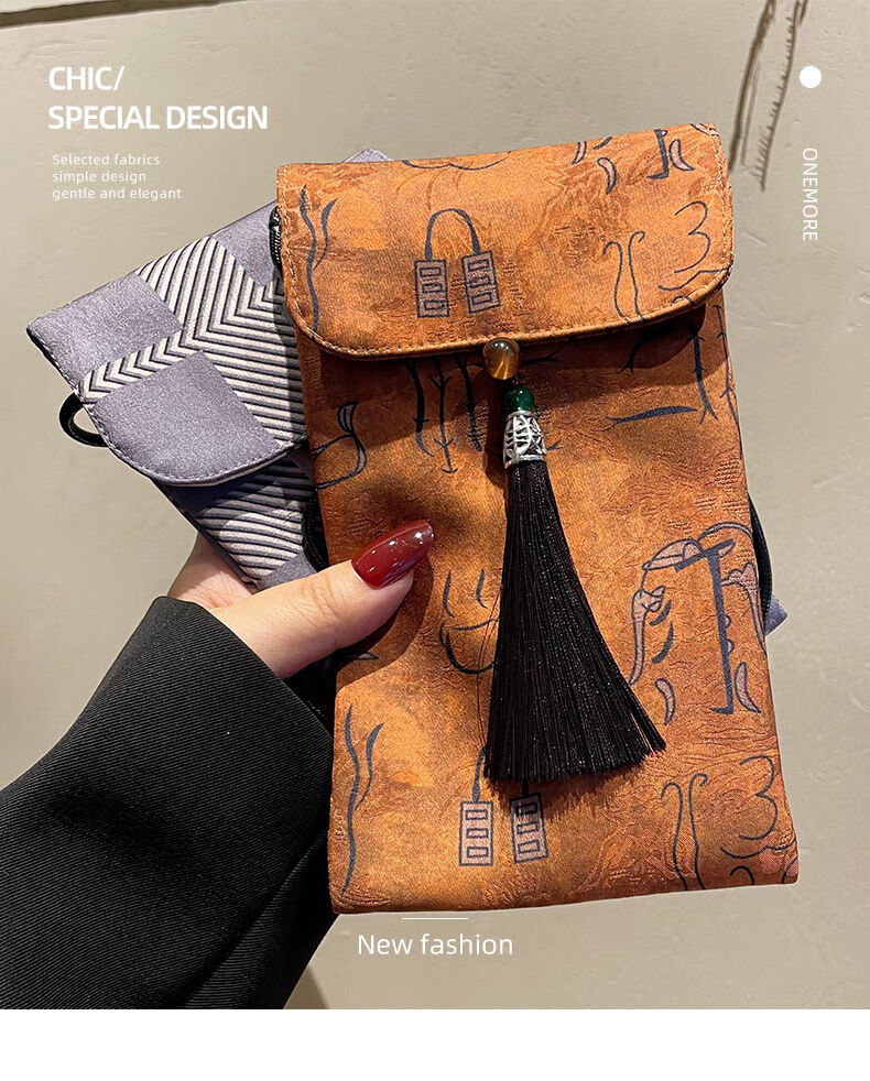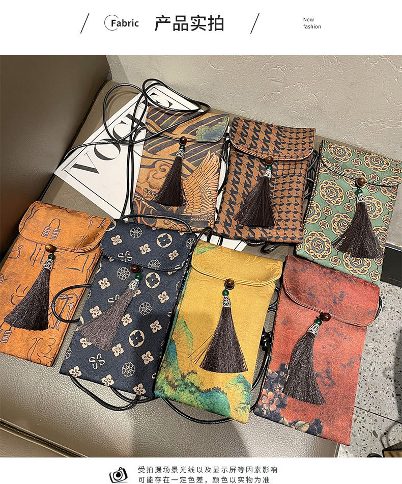 2024 new high-end anti-scent cloud yarn cross-body bag mobile phone bag retro bag storage ladies Chinese style casual bag Green Peony 28*18