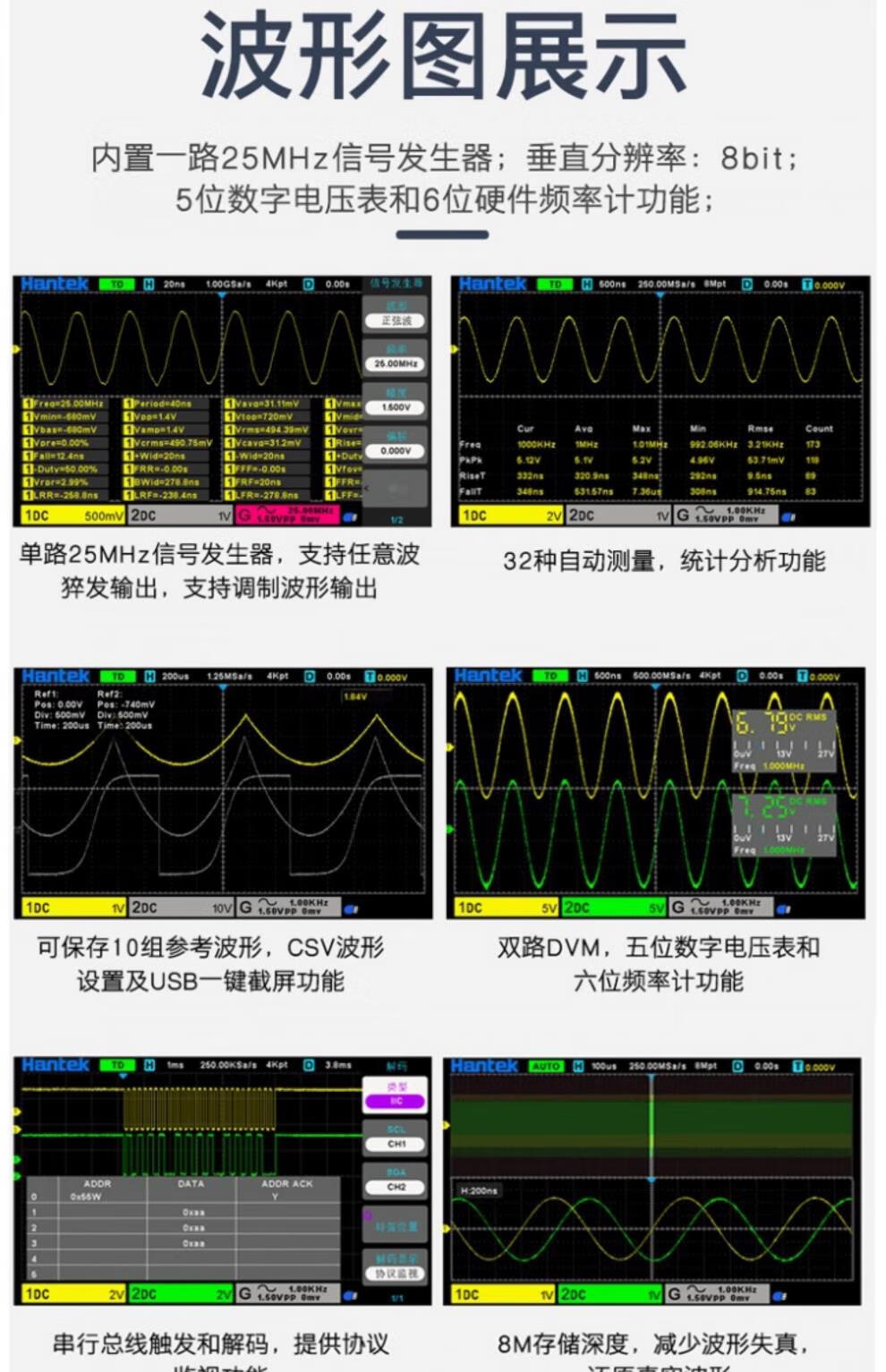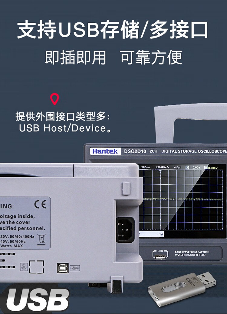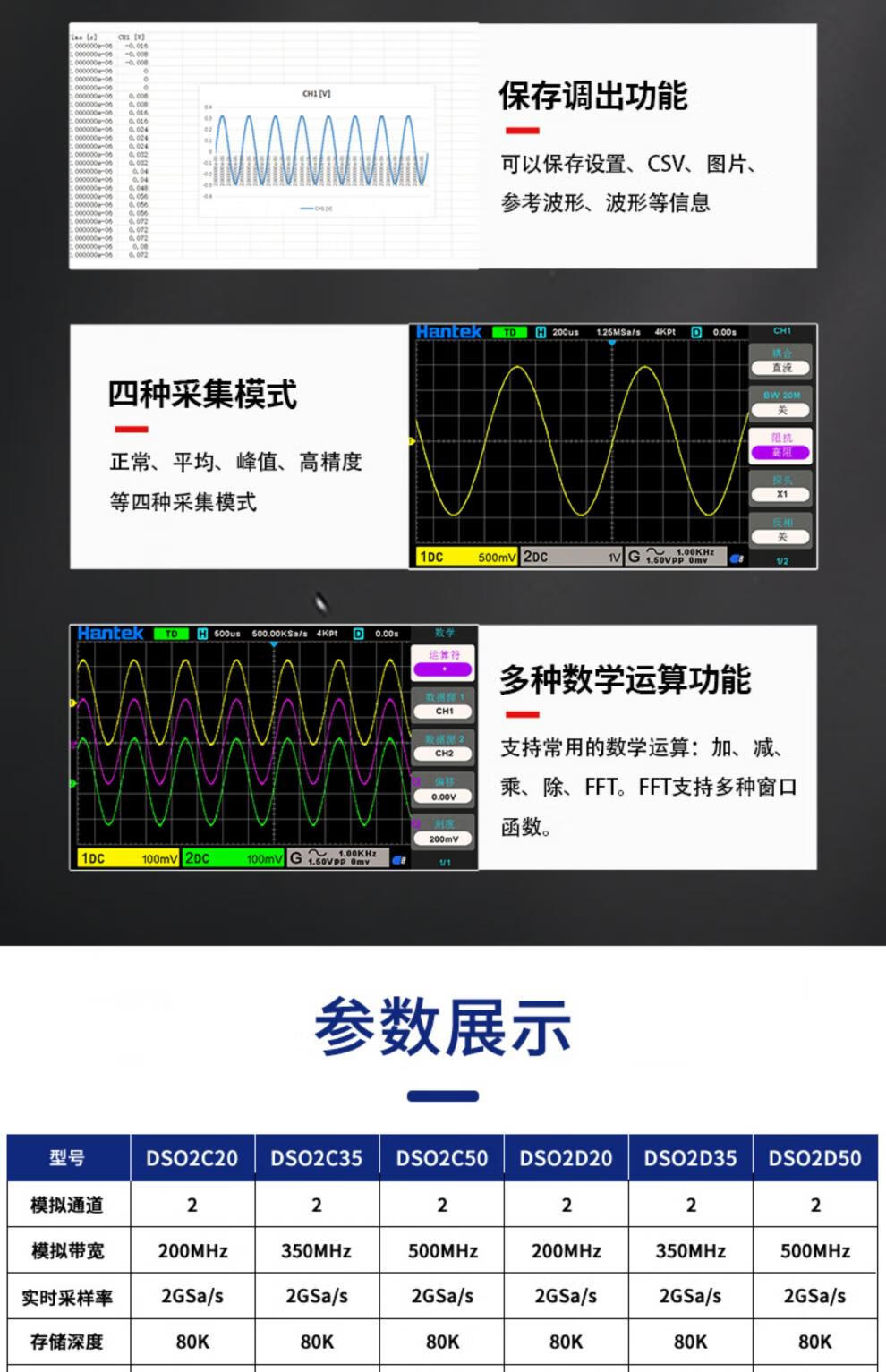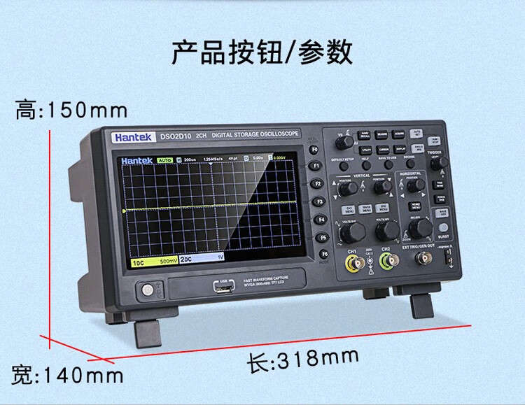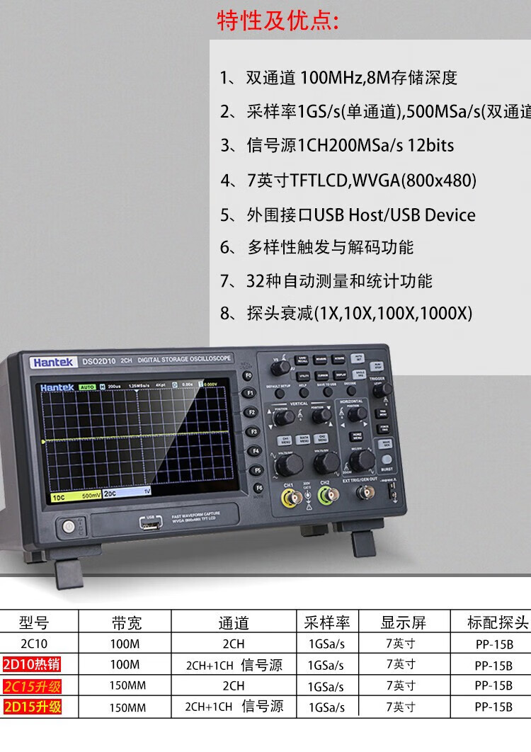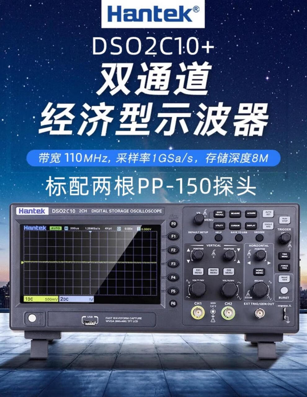 HantekHantek digital storage oscilloscope DSO2C10+ dual channel 100M bandwidth 2D50 with signal source T3100 (100MHz) high voltage probe
