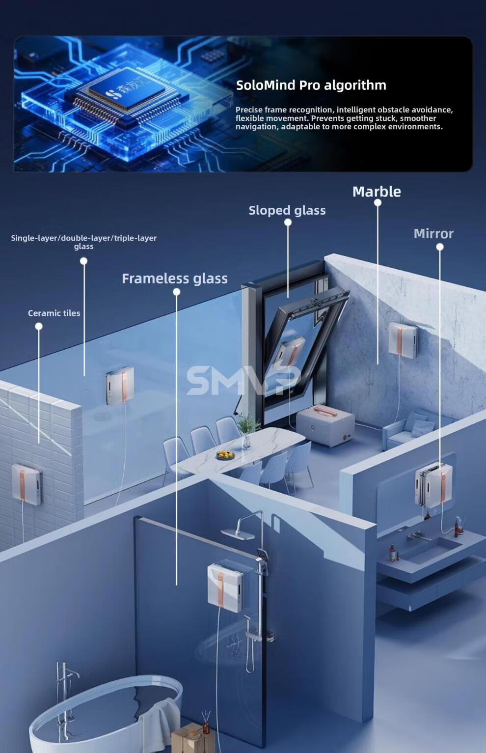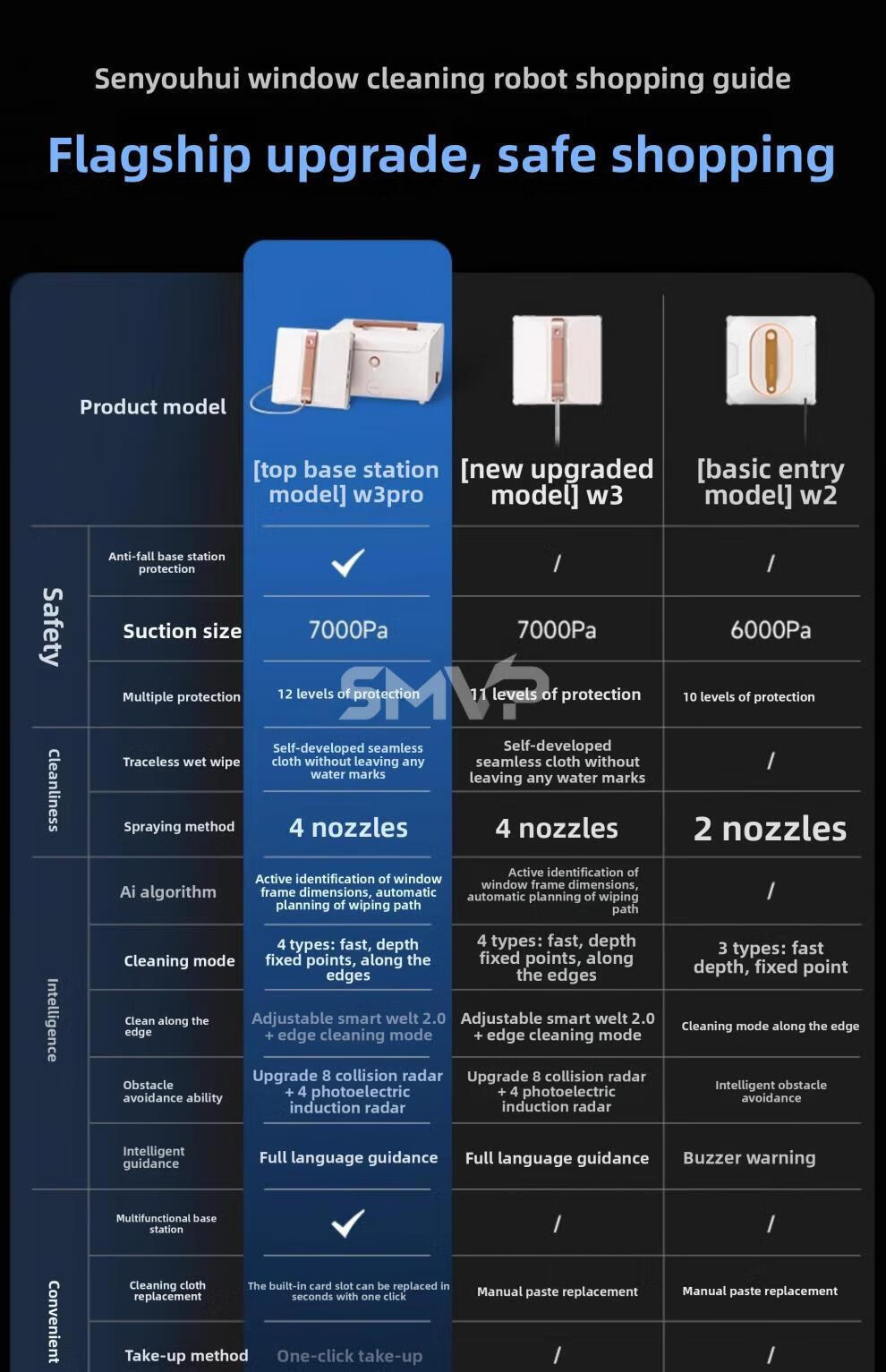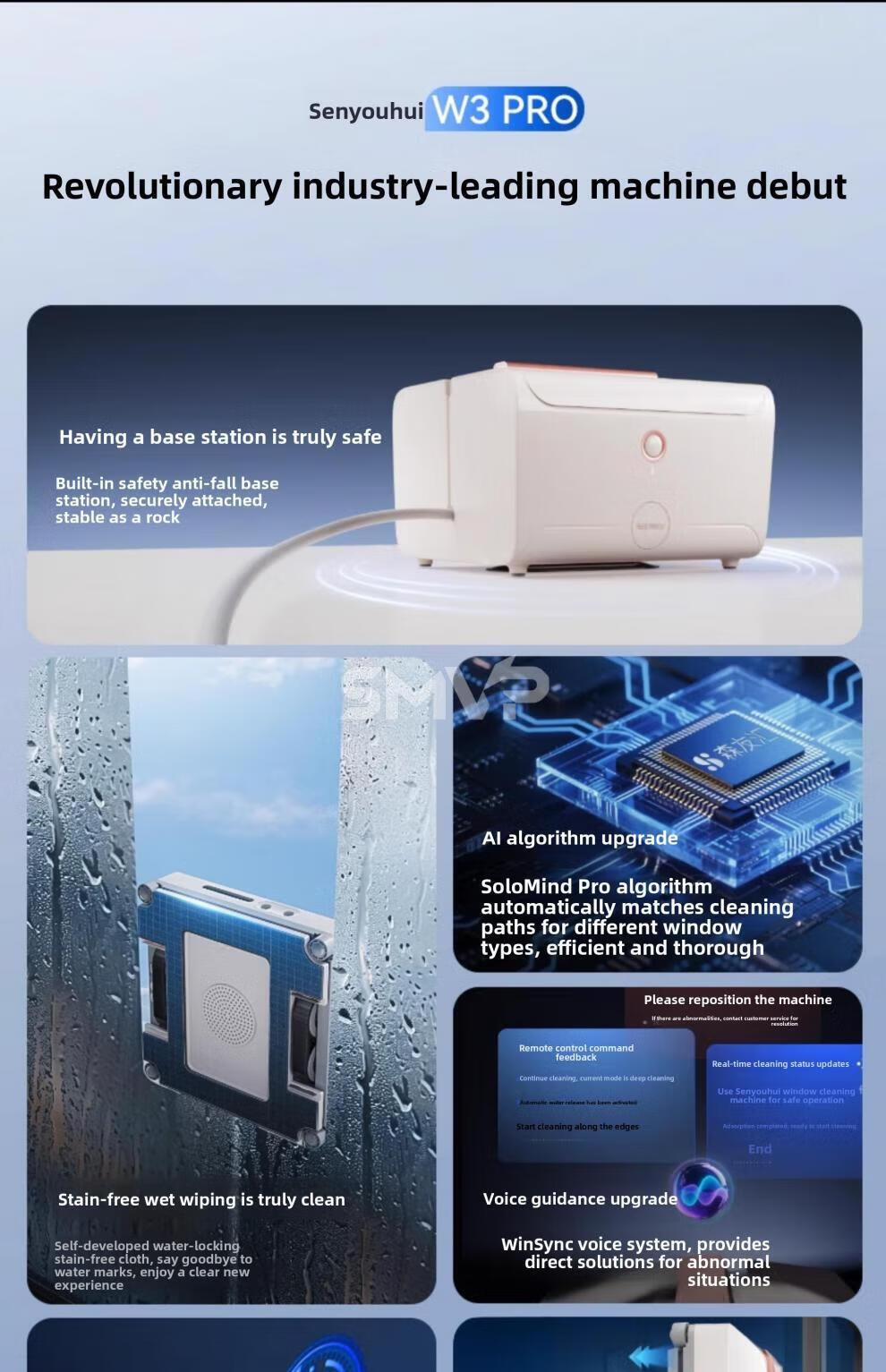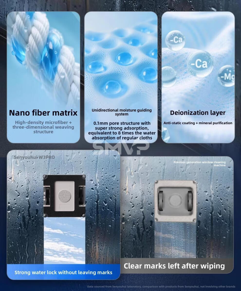 SMVP Germany imported quality high-end smart glass and window cleaning robot artifact fully automatic home electric 2025 new W3 PRO top-equipped base station+