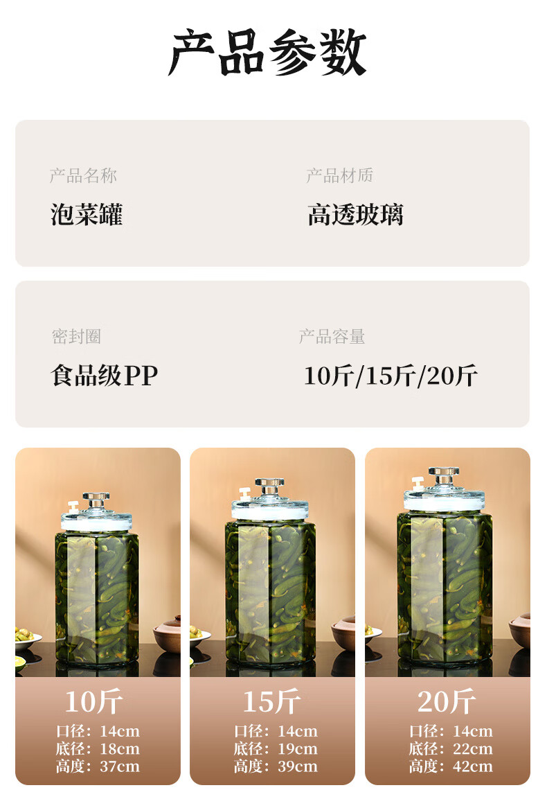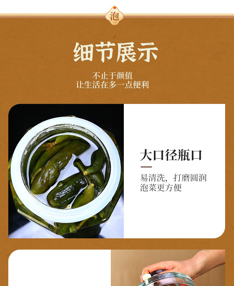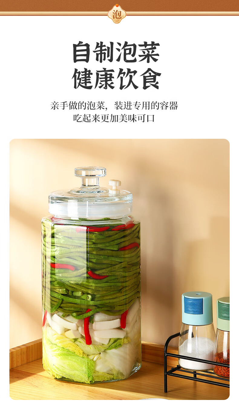 Tuojin German imported quality pickle jar glass sealed household pickle jar large capacity Sichuan pickle jar 10 catties naked bottle (octagonal self-venting)