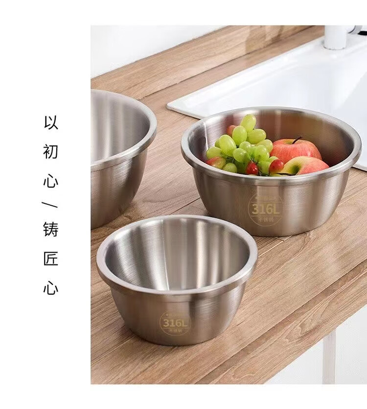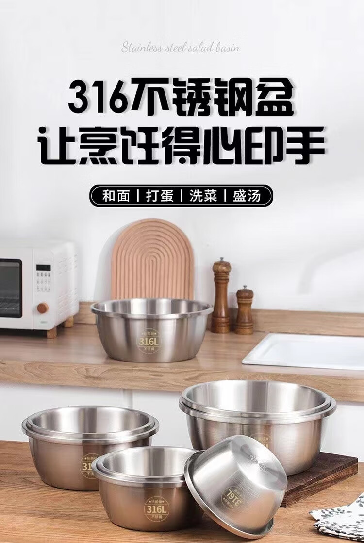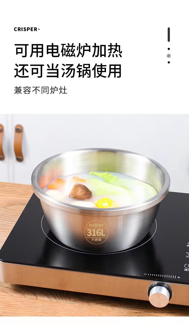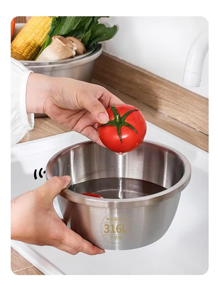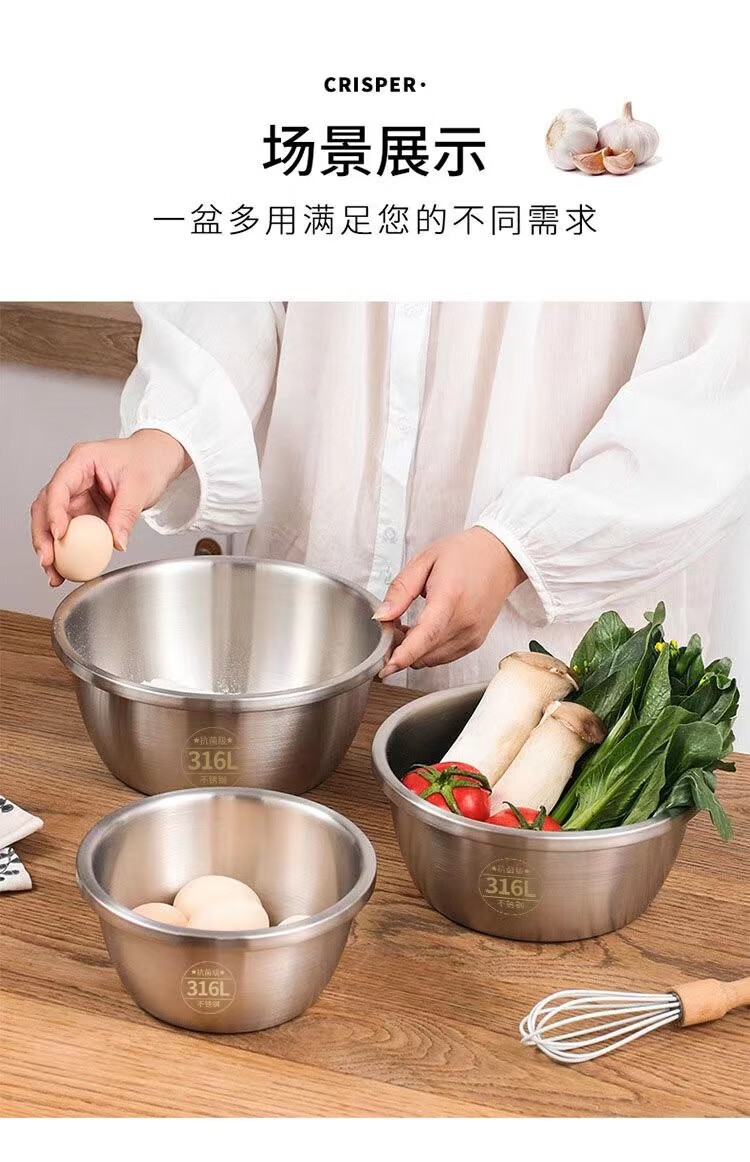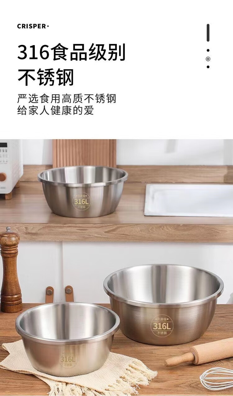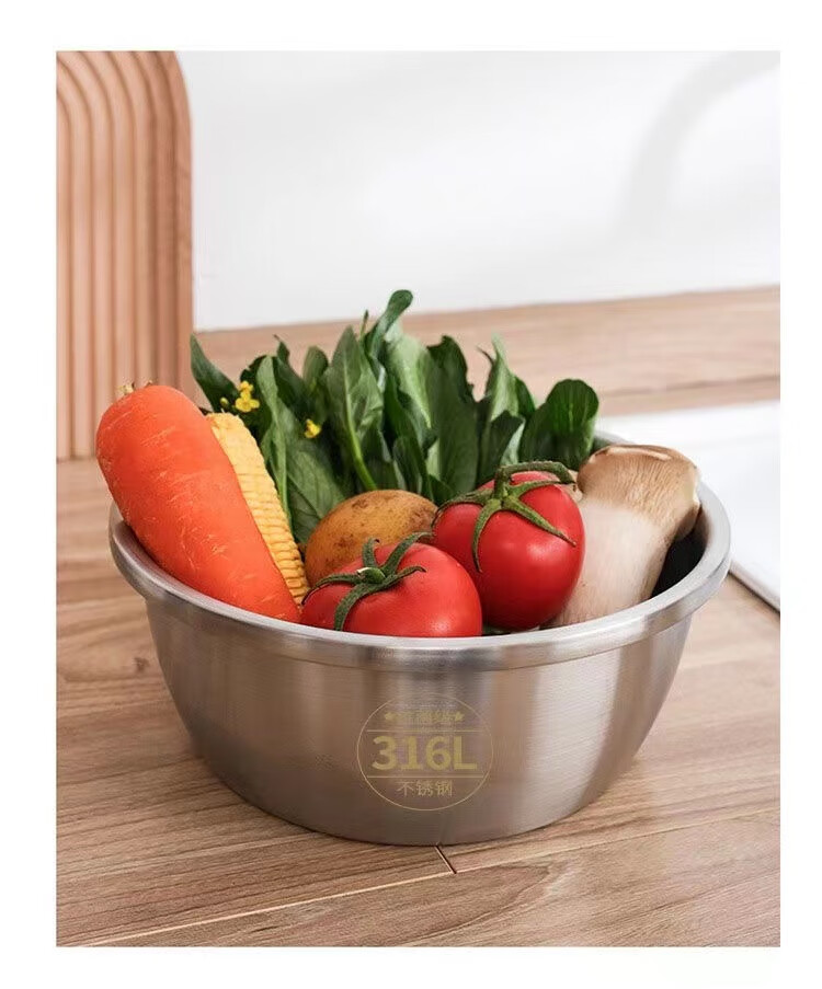 CLCEY stainless steel basin food capacity household small basin can be used for beating eggs and basin noodle soup basin 28cm