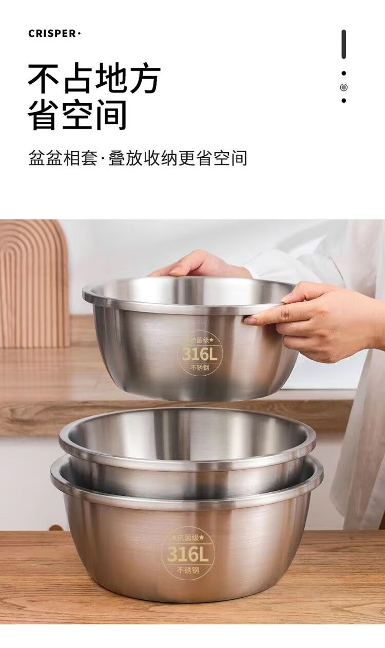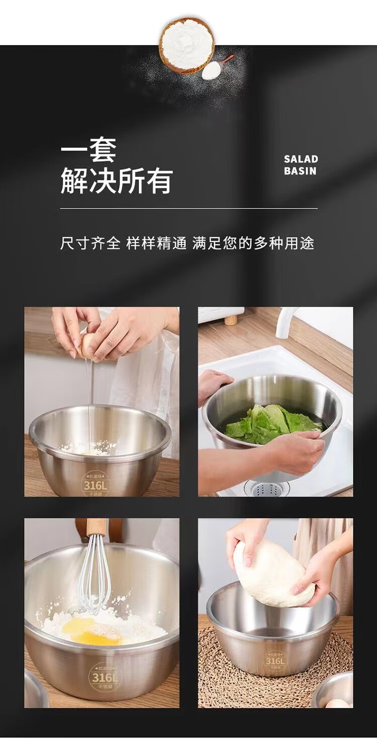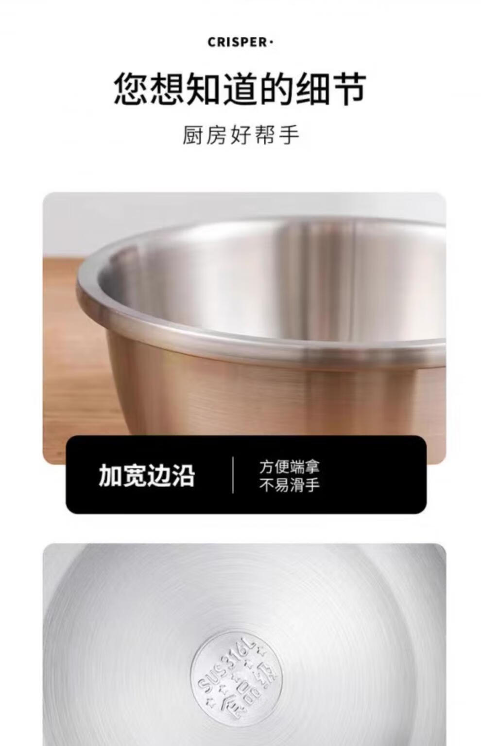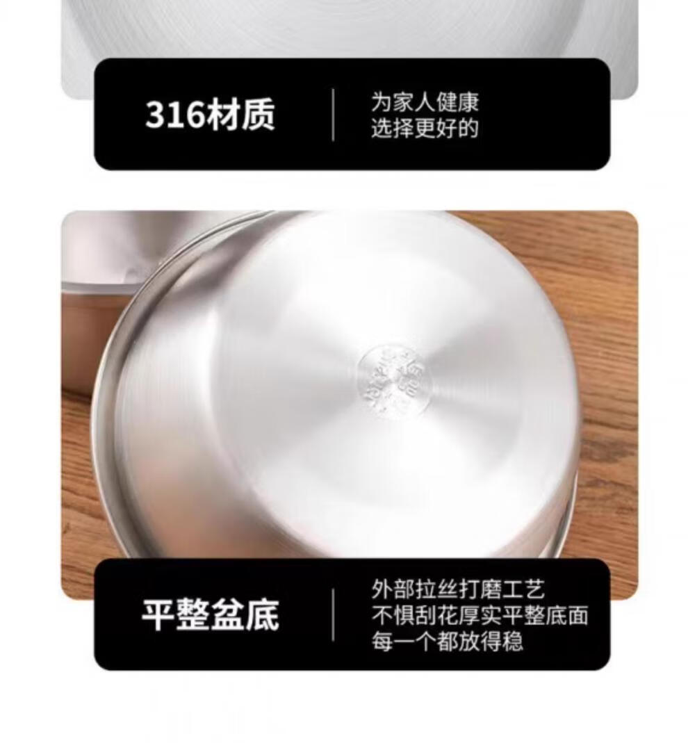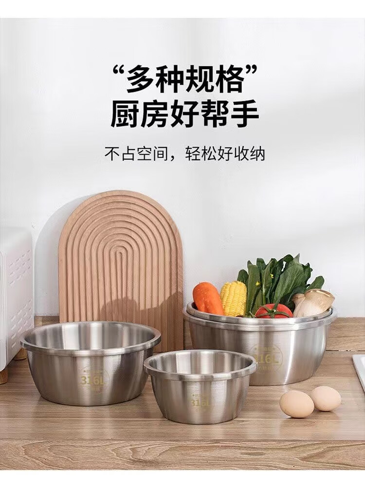 CLCEY stainless steel basin food capacity household small basin can be used for beating eggs and basin noodle soup basin 28cm