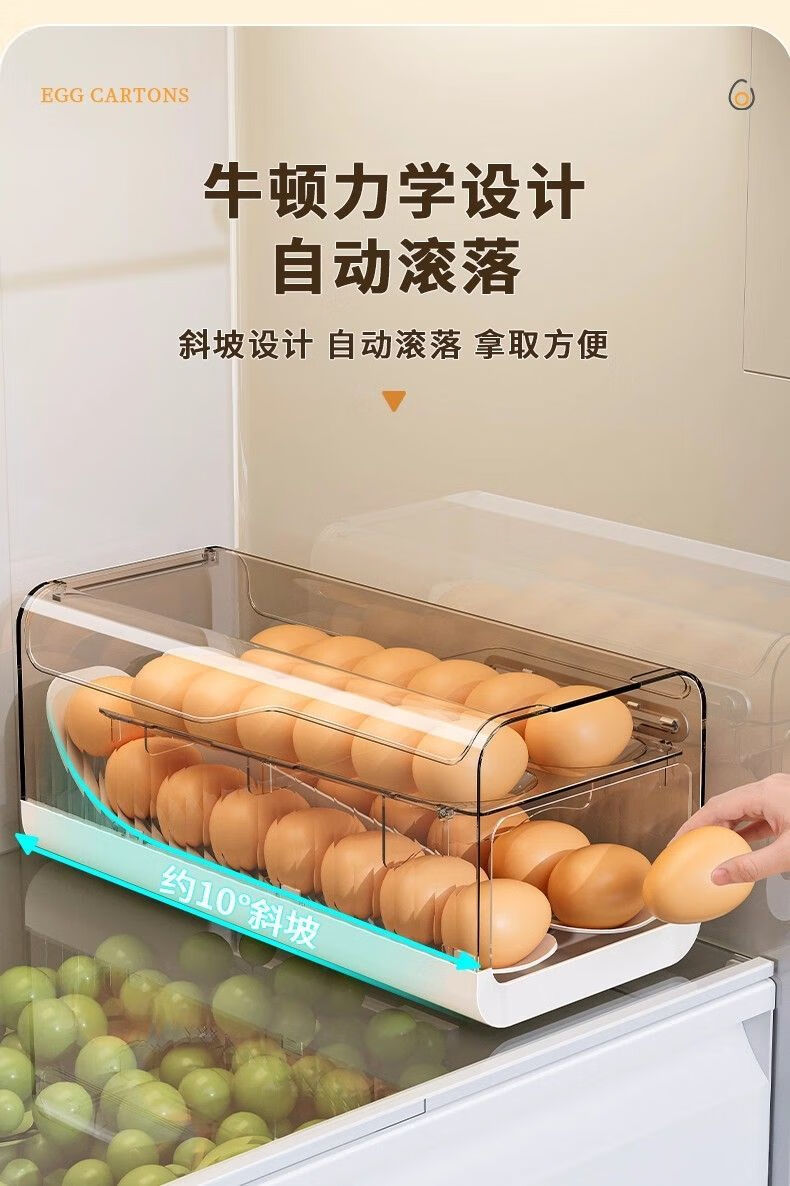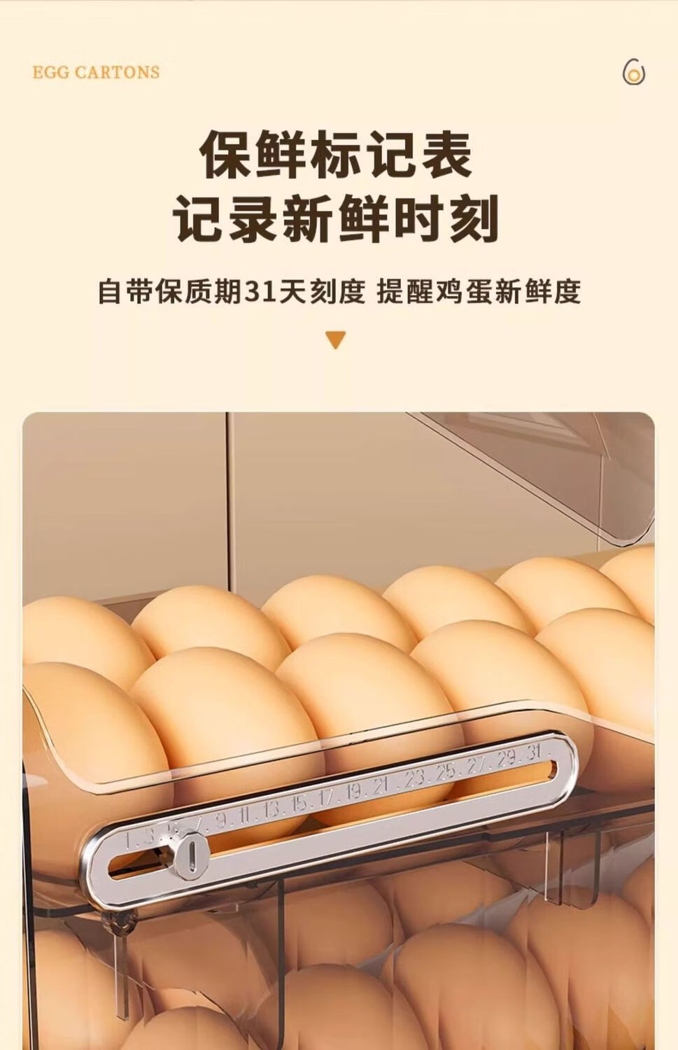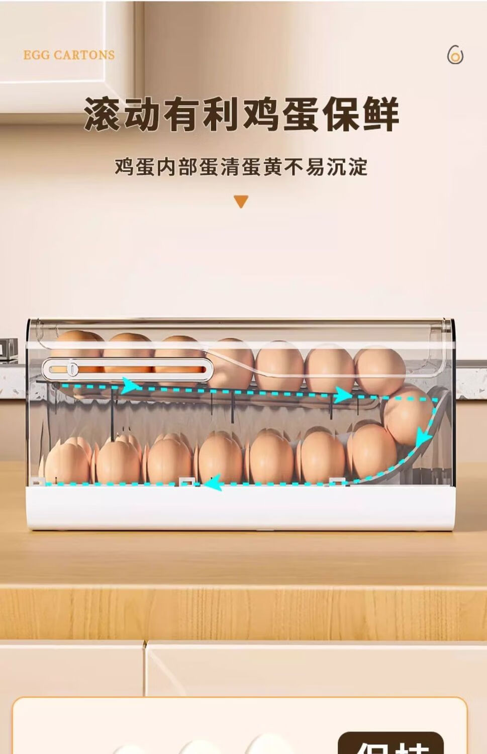Tuojin German imported quality egg storage box refrigerator kitchen multi-layer egg rolling box side door crisper organizer elegant white + large capacity + timer freshness + egg rolling device