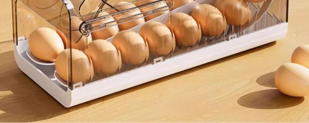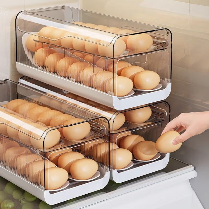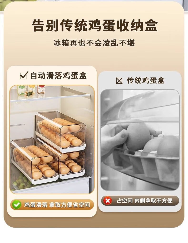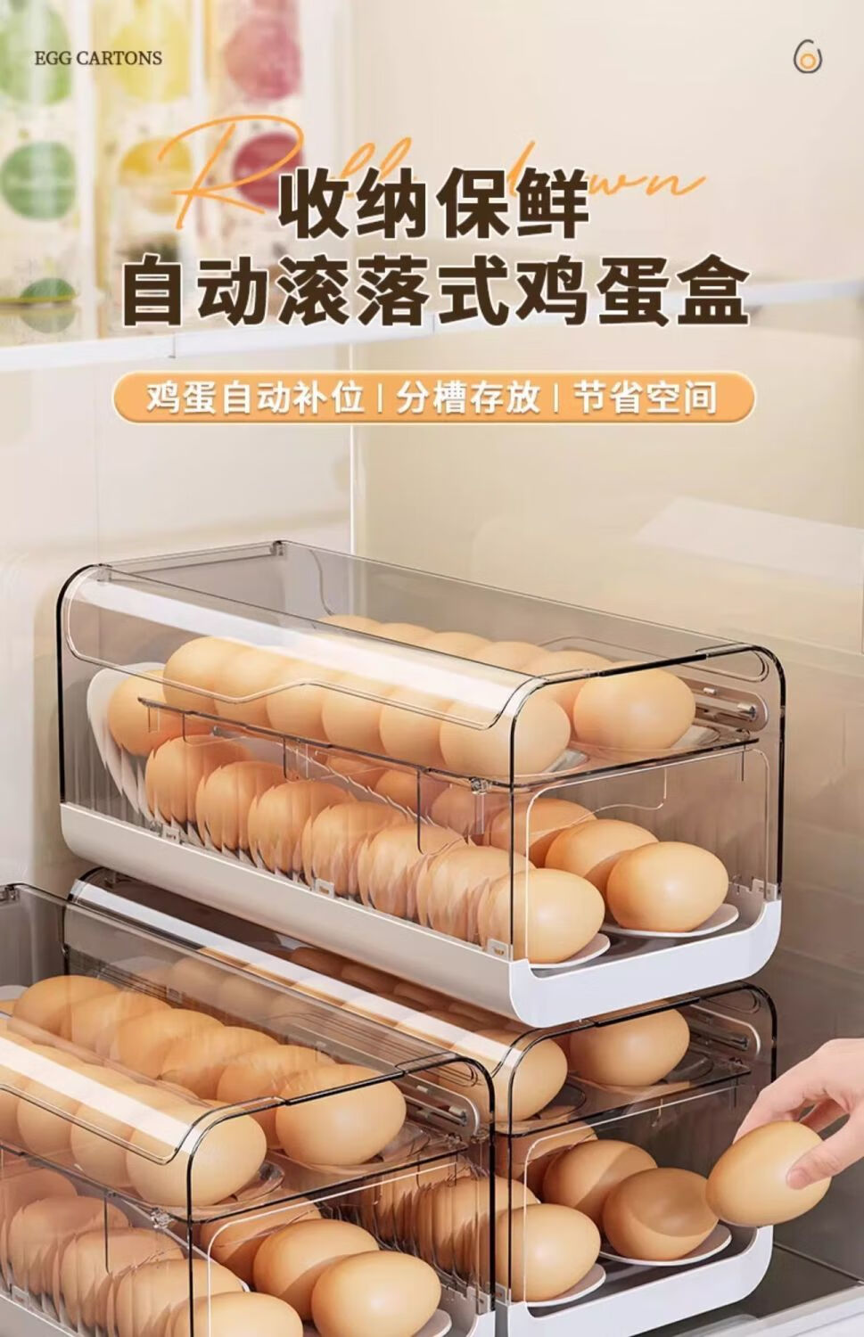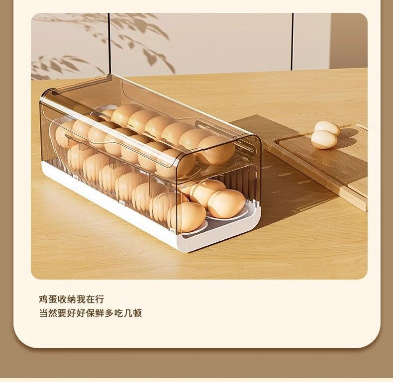 Tuojin German imported quality egg storage box refrigerator kitchen multi-layer egg rolling box side door crisper organizer elegant white + large capacity + timer freshness + egg rolling device