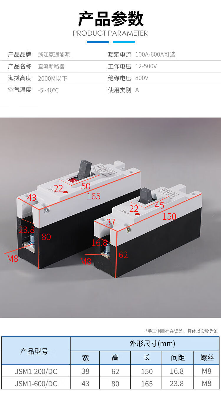 Electric vehicle DC air switch high power air switch molded case circuit breaker 200A300A400A600A 1P 300A
