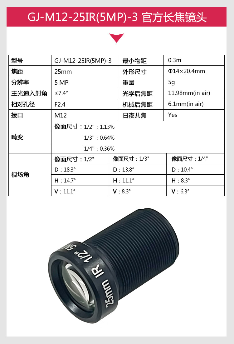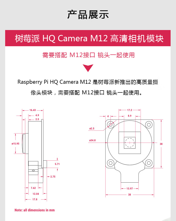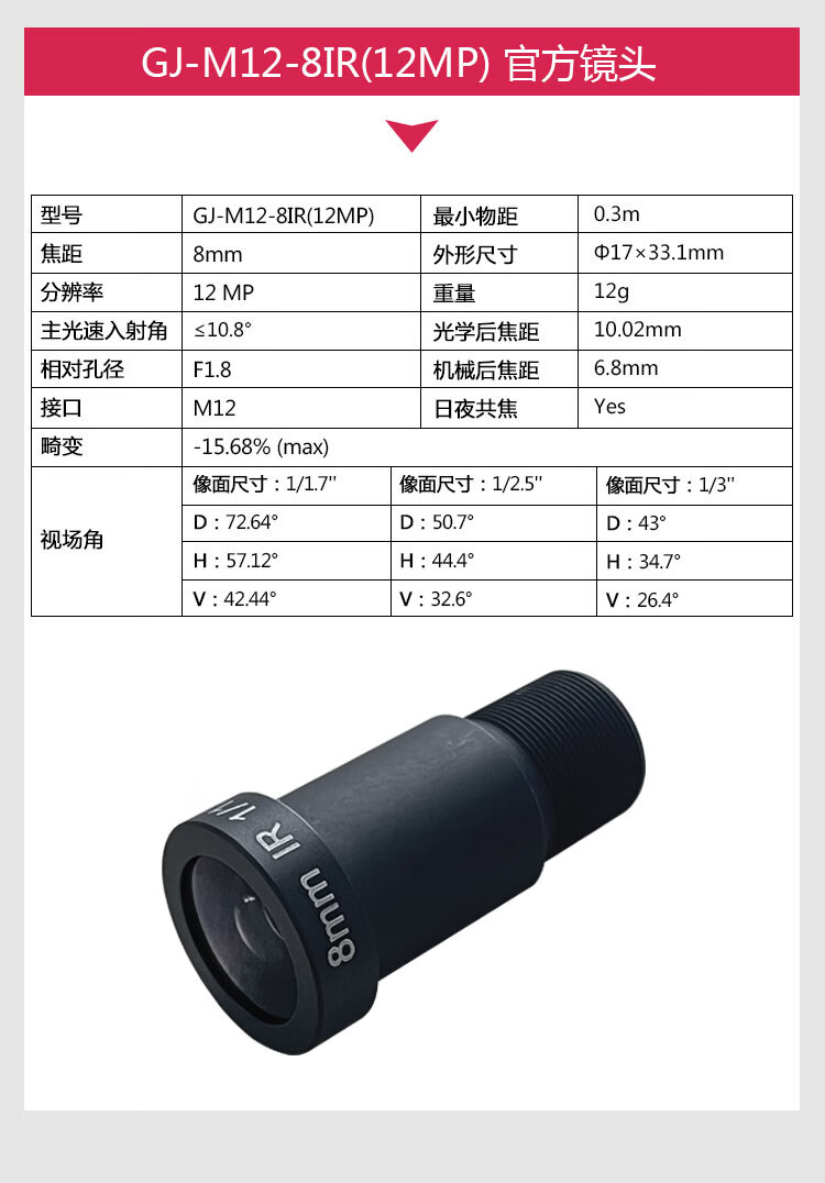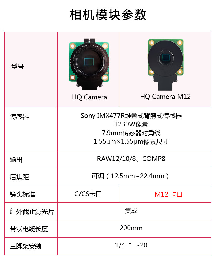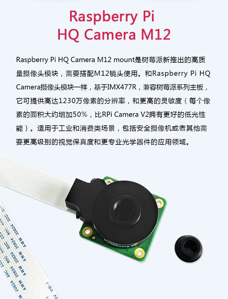 Yue Changsheng Raspberry Pi official original HQ Camera M12 camera module 12.3MP Sony IMX477 optional lens GJ-M12-8IR (12MP) official lens