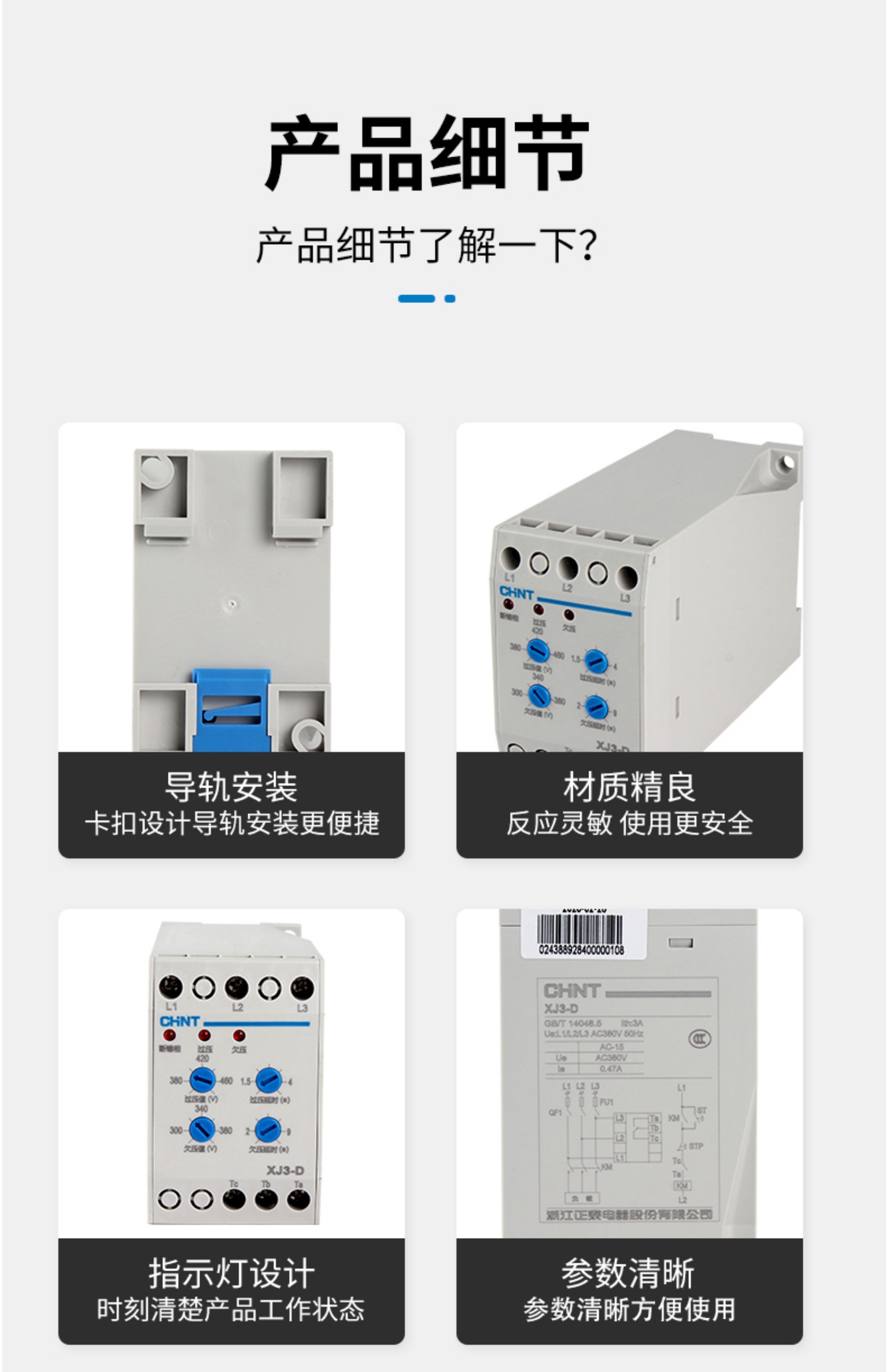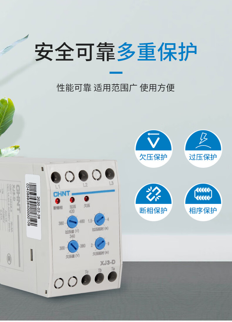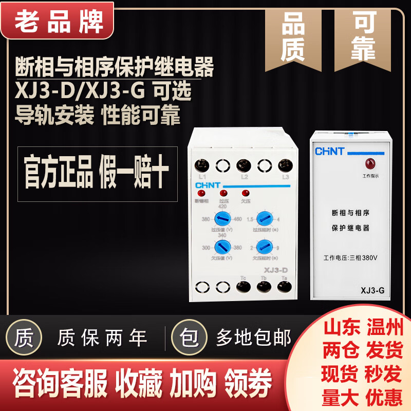 Yue Changsheng Chint XJ3-D phase sequence protector phase failure phase loss protector phase sequence relay protects three phases 380V XJ3-DAC380V