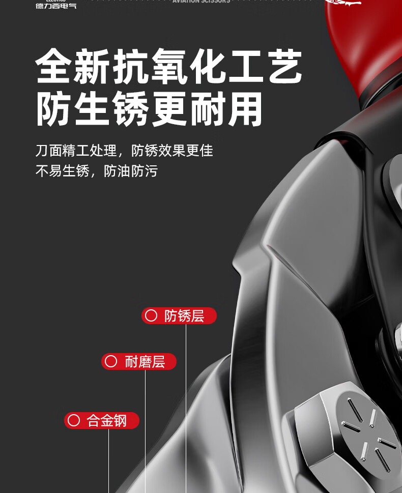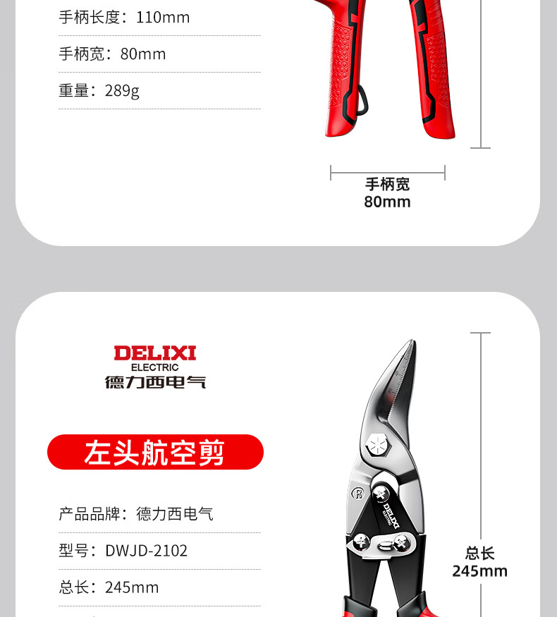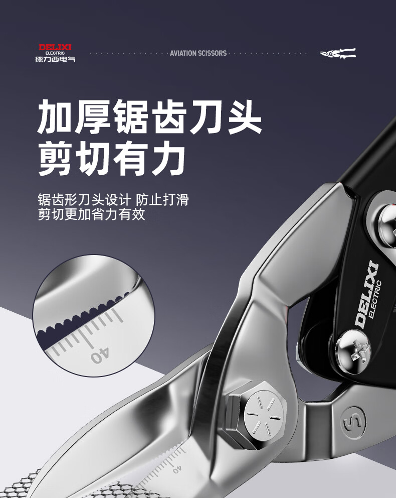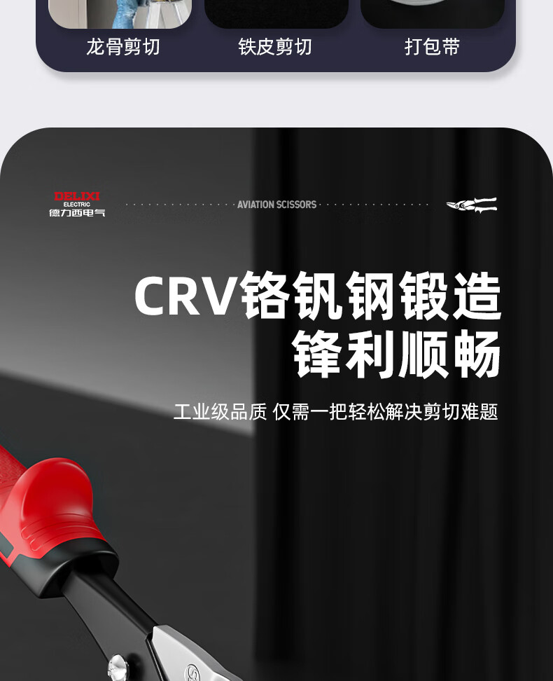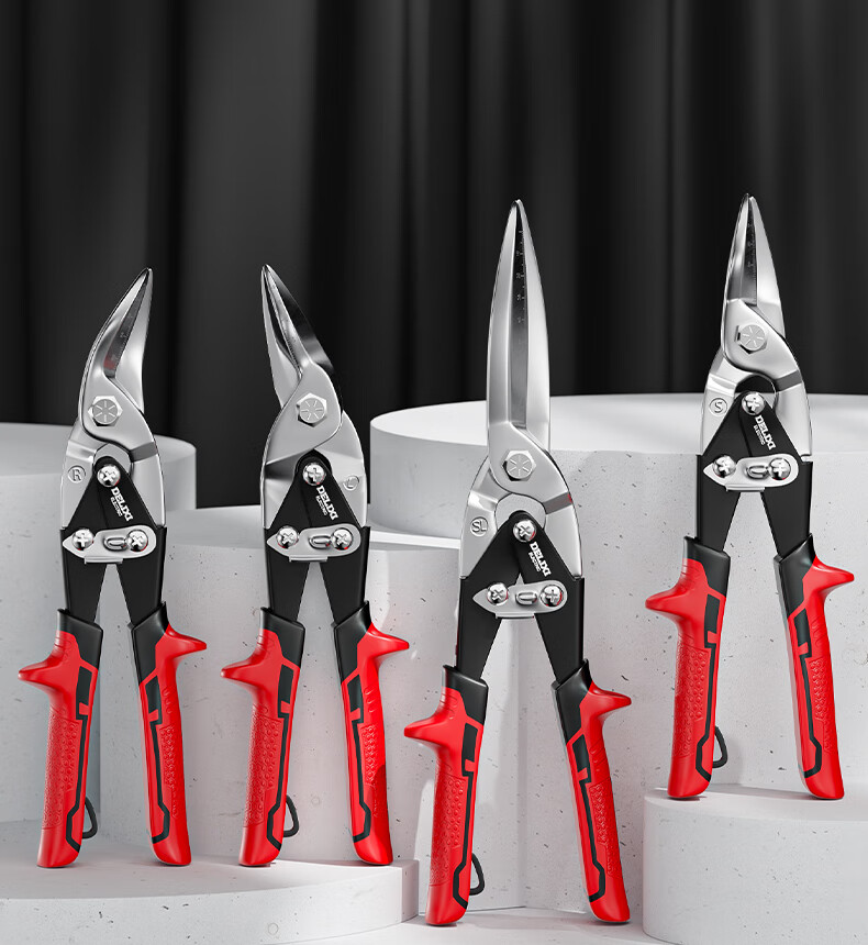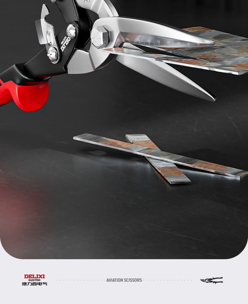 Delixi Iron Sheet Scissors Industrial Aluminum Plate Light Steel Keel Powerful Aviation Scissors Stainless Steel Special Wire Scissors Industrial Grade 10 Inches_Straight Head Aviation Scissors (+Hand