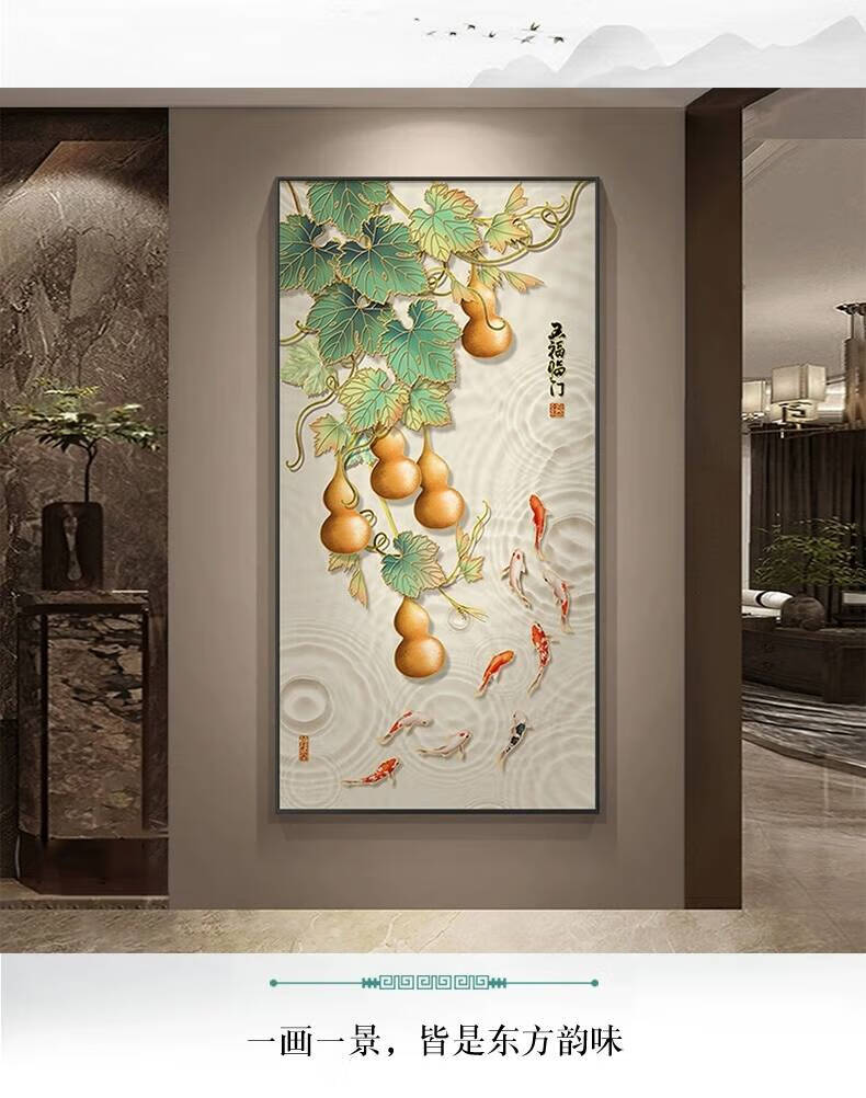 Kecss Wufu Linmen cross stitch 2025 new line embroidery living room self-embroidery embroidery vertical version porch nine fish picture full embroidery cotton thread 50*100CM medium grid 3-strand thread embroidery