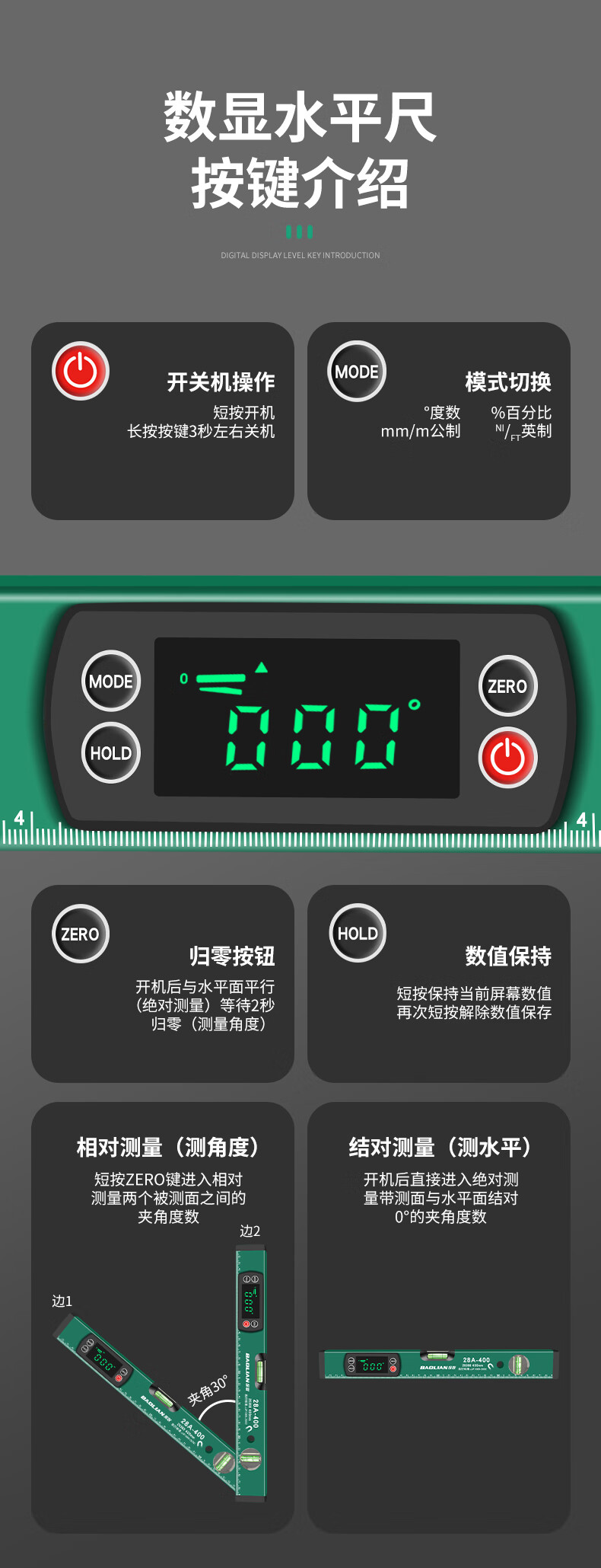 Baolian Digital Display Level High-precision Strong Magnetic Thickened Aluminum Alloy Measurement Level Electronic Level with Reading Level Aluminum Alloy Digital Display Strong Magnetic 300MM (Base Price
