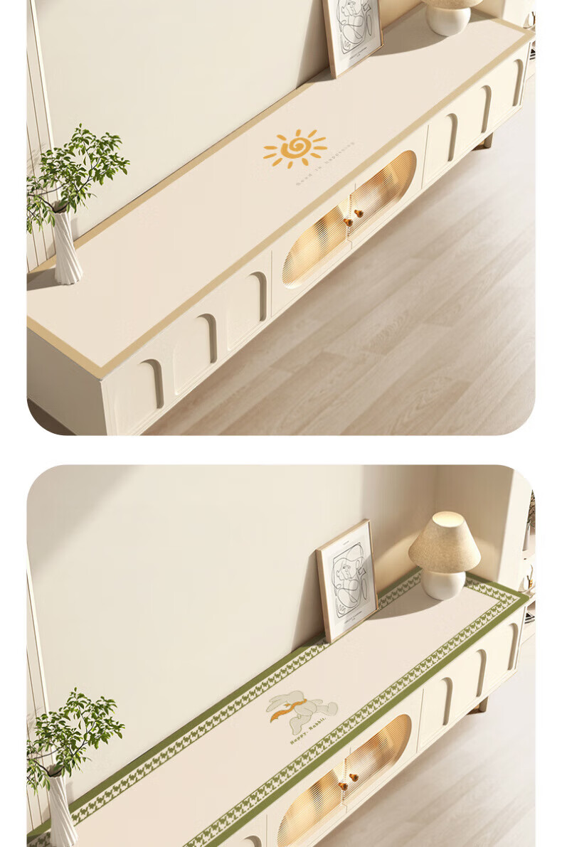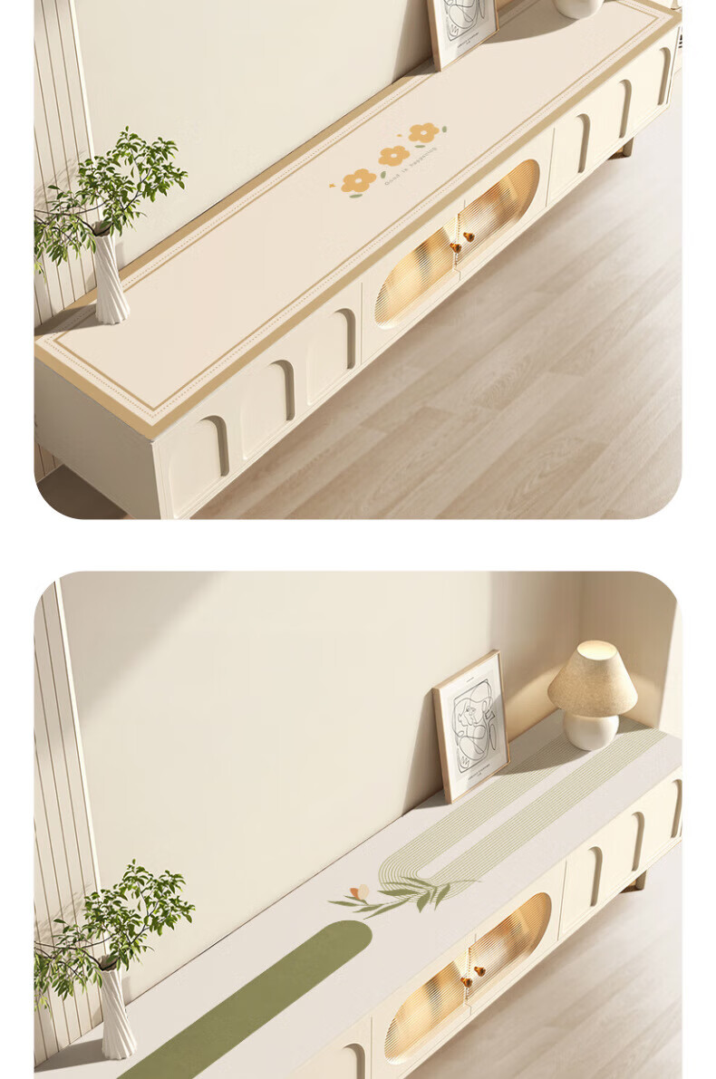 Ultra-luxury TV cabinet tablecloth, high-end light luxury dining table mat, leather waterproof, wipeable and washable sideboard mat, shoe cabinet mat, under the warm sun (upgraded non-slip bottom) 40*180cm