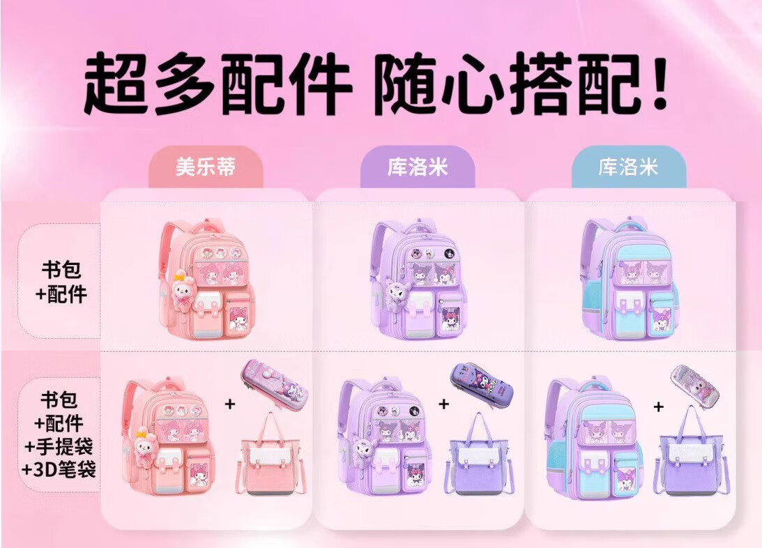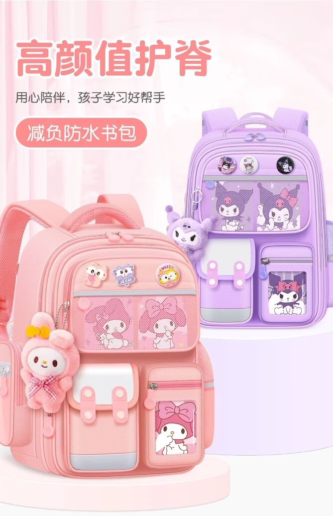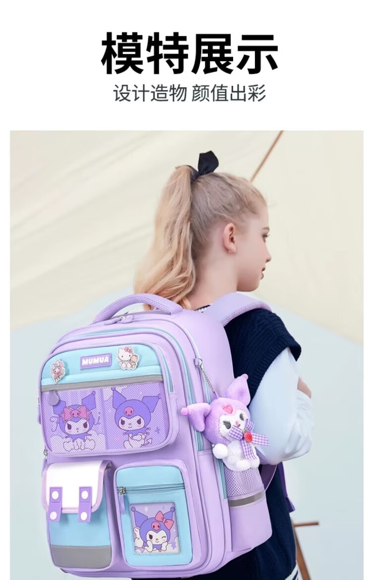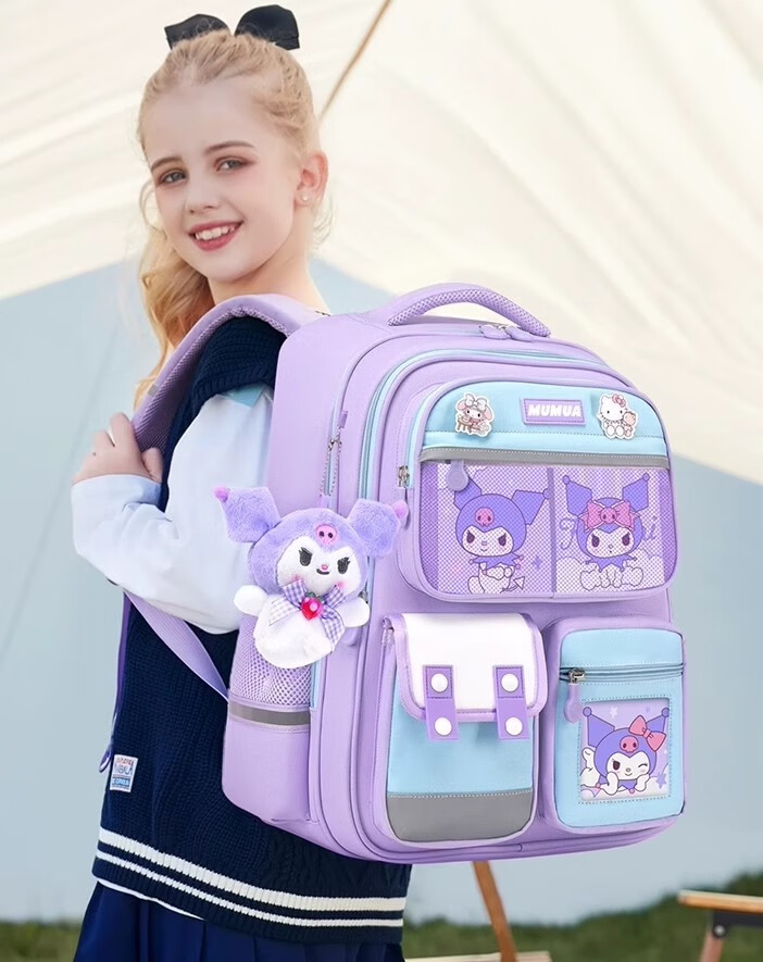 Xingmitu Kuromi Schoolbag Girls Primary School 1st, 2nd, 3rd and 6th Grade Large Capacity Boys Backpack Backpack Birthday Gift Kuromi Purple Pendant + 3 Cards + 6 Medals 1-2-3-4-5-6th Grade School Bag Admission Set New Year Birthday Gift