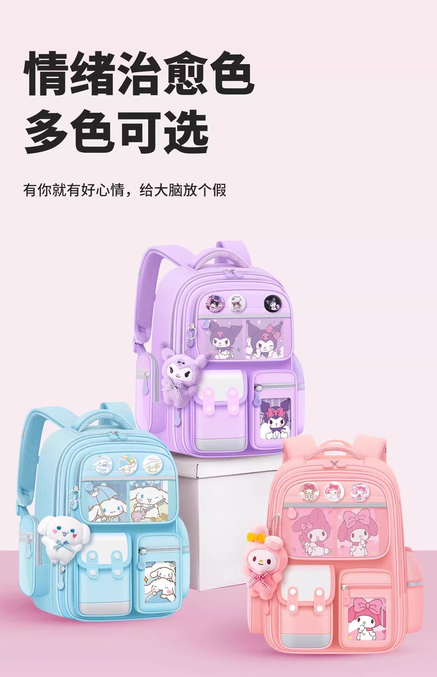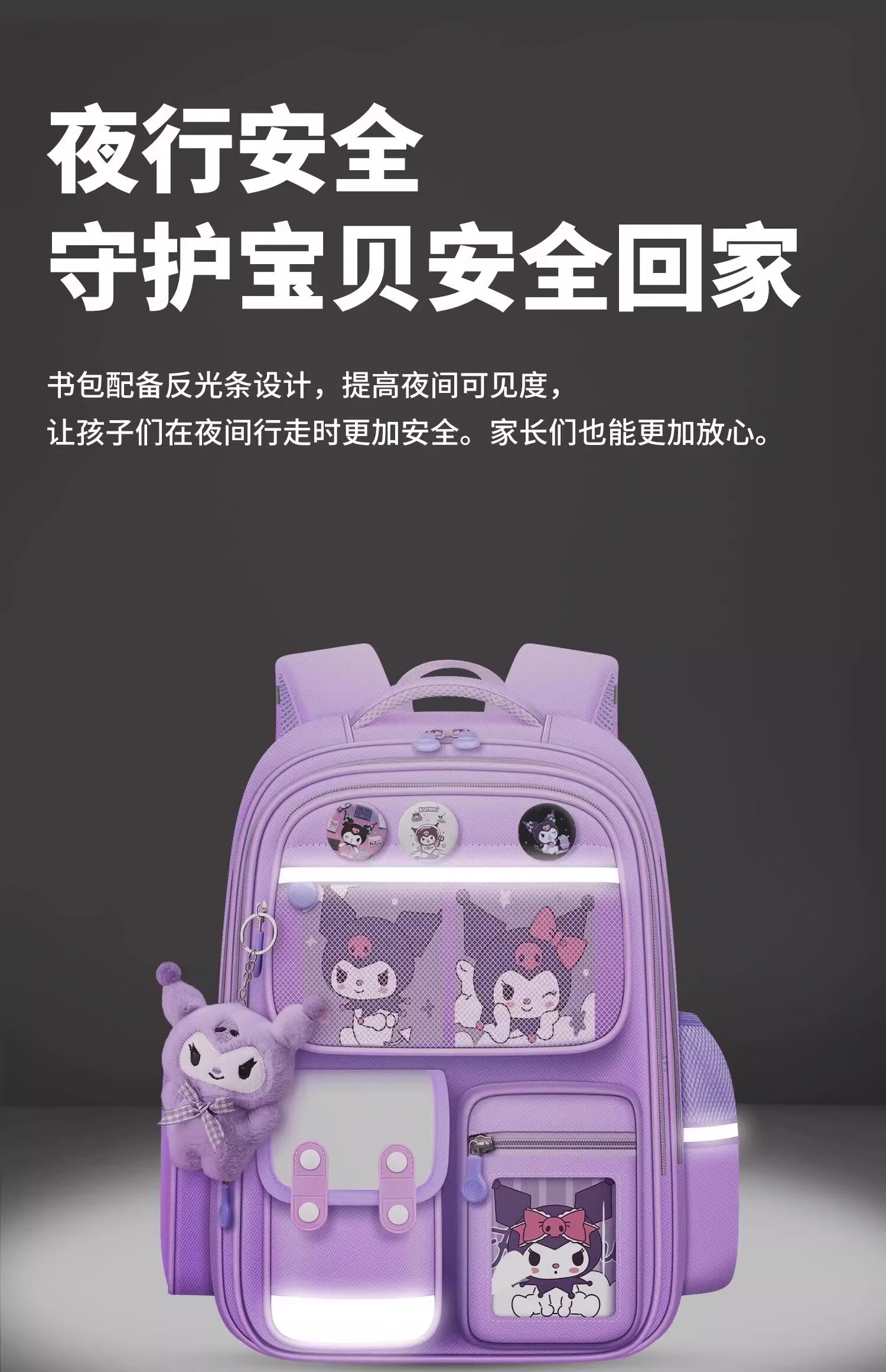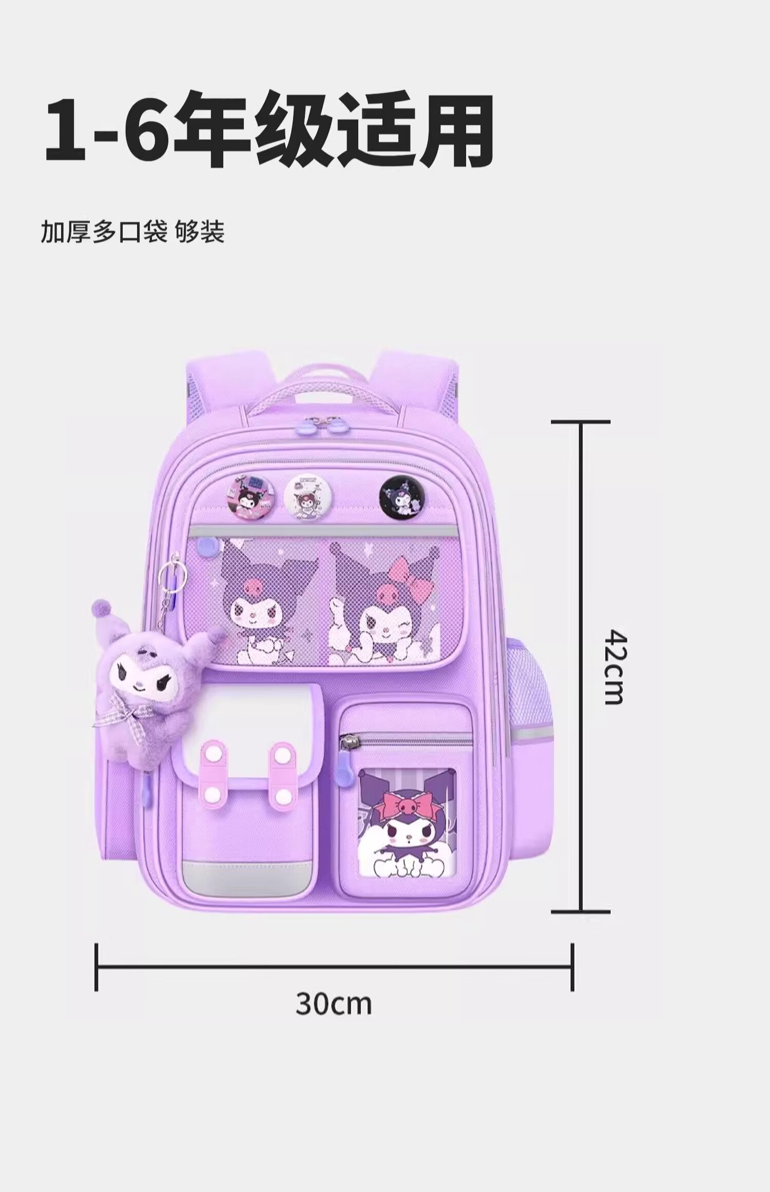Xingmitu Kuromi Schoolbag Girls Primary School 1st, 2nd, 3rd and 6th Grade Large Capacity Boys Backpack Backpack Birthday Gift Kuromi Purple Pendant + 3 Cards + 6 Medals 1-2-3-4-5-6th Grade School Bag Admission Set New Year Birthday Gift