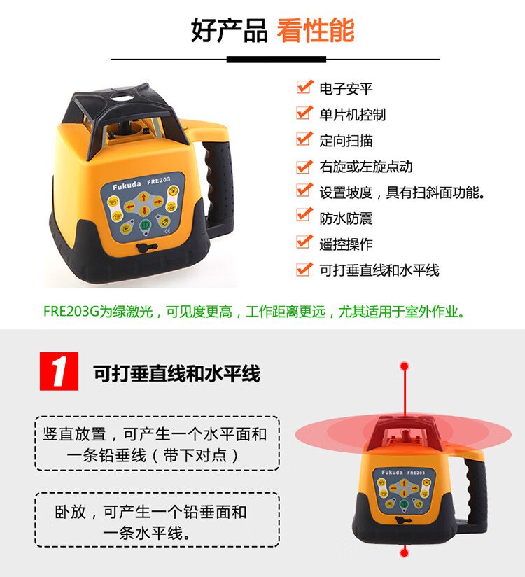 BEYZK Foton Rotary Laser Sweeper FRE203 Fully Automatic Laser Level 500 Meter Diameter Factory Building Leveling Green Light Sweeper Standard