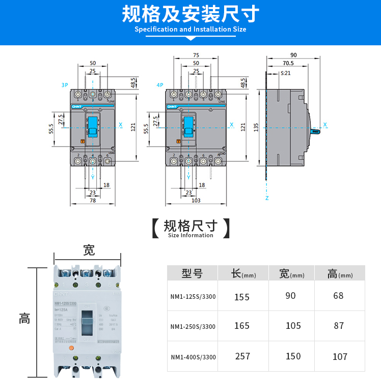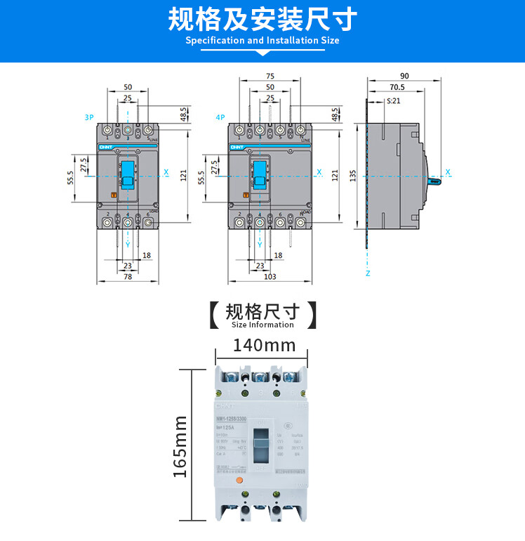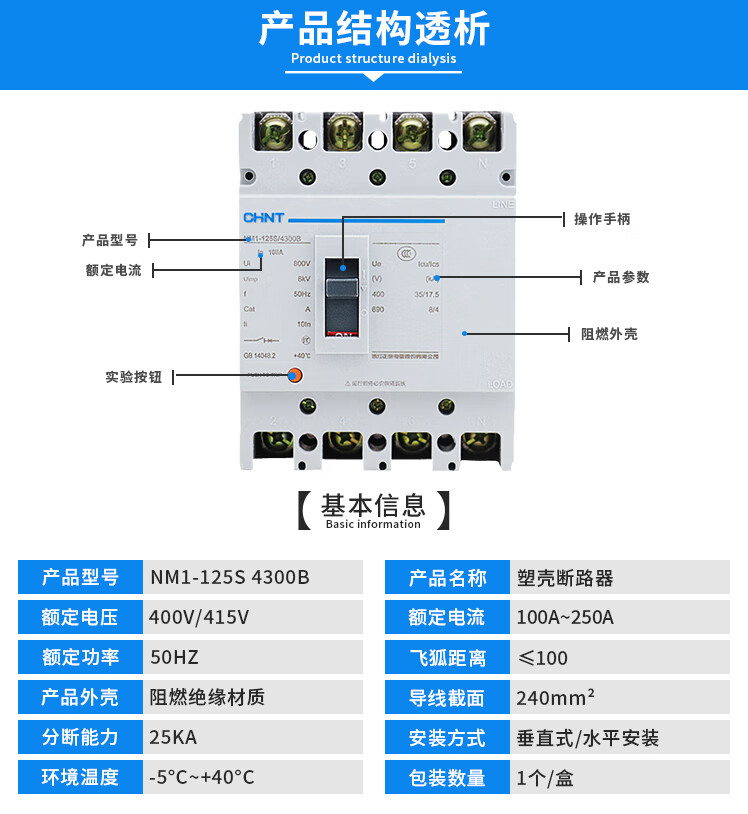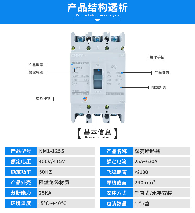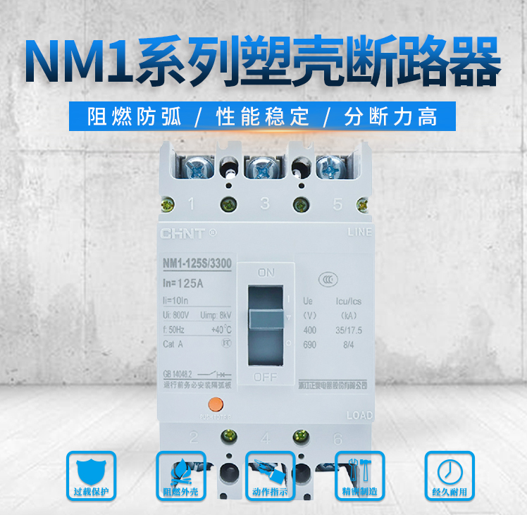 Shantou Lincun NM1 plastic case circuit breaker 80A125A160A400A air switch 3300 three-phase four-wire 380V3p4P 3P 63A