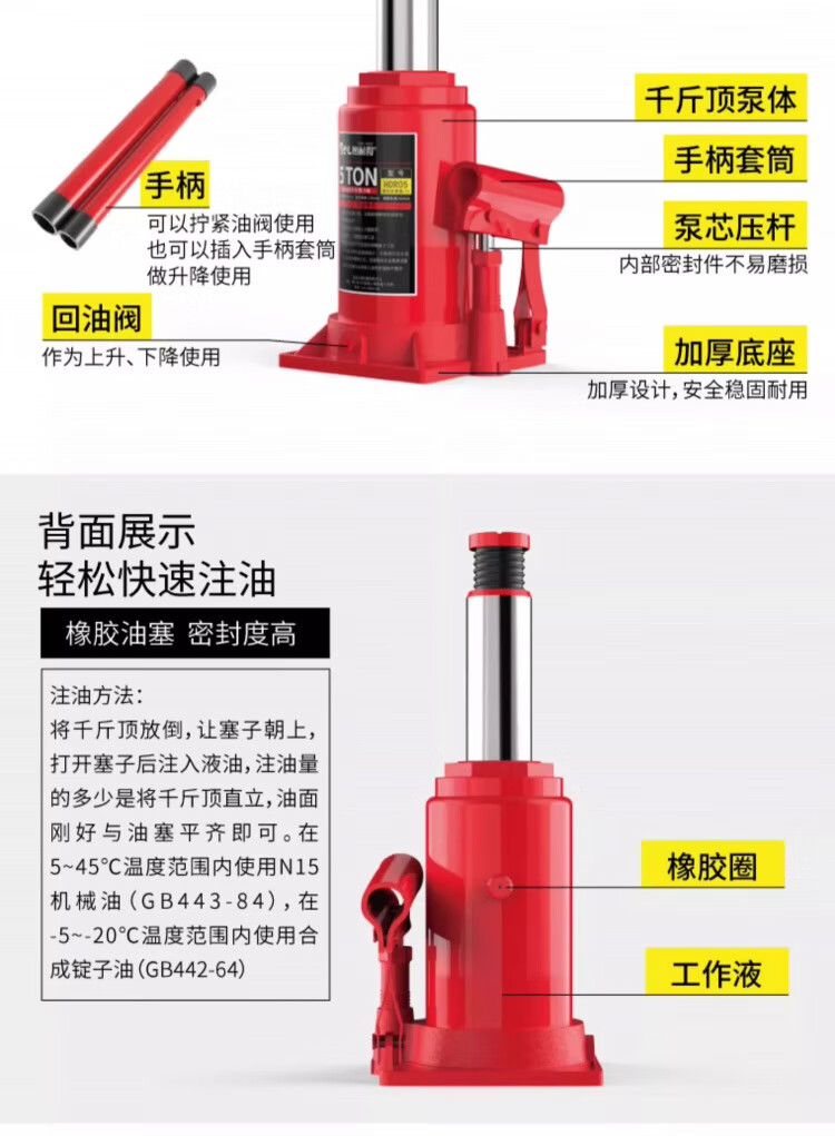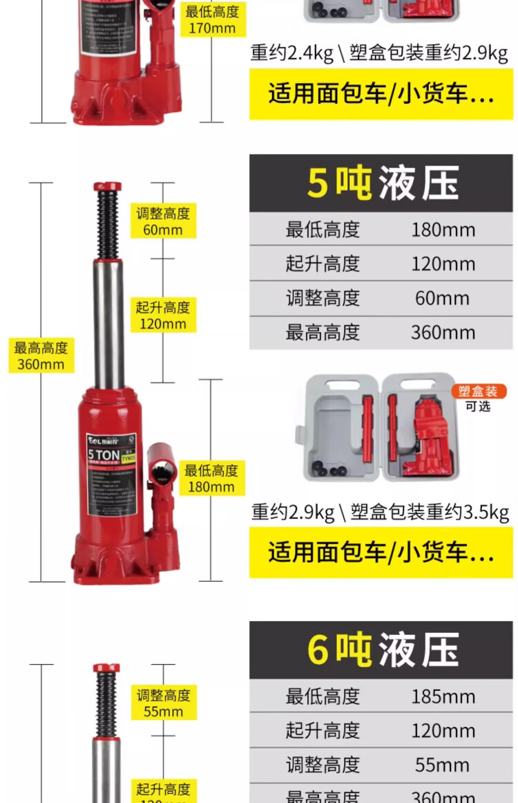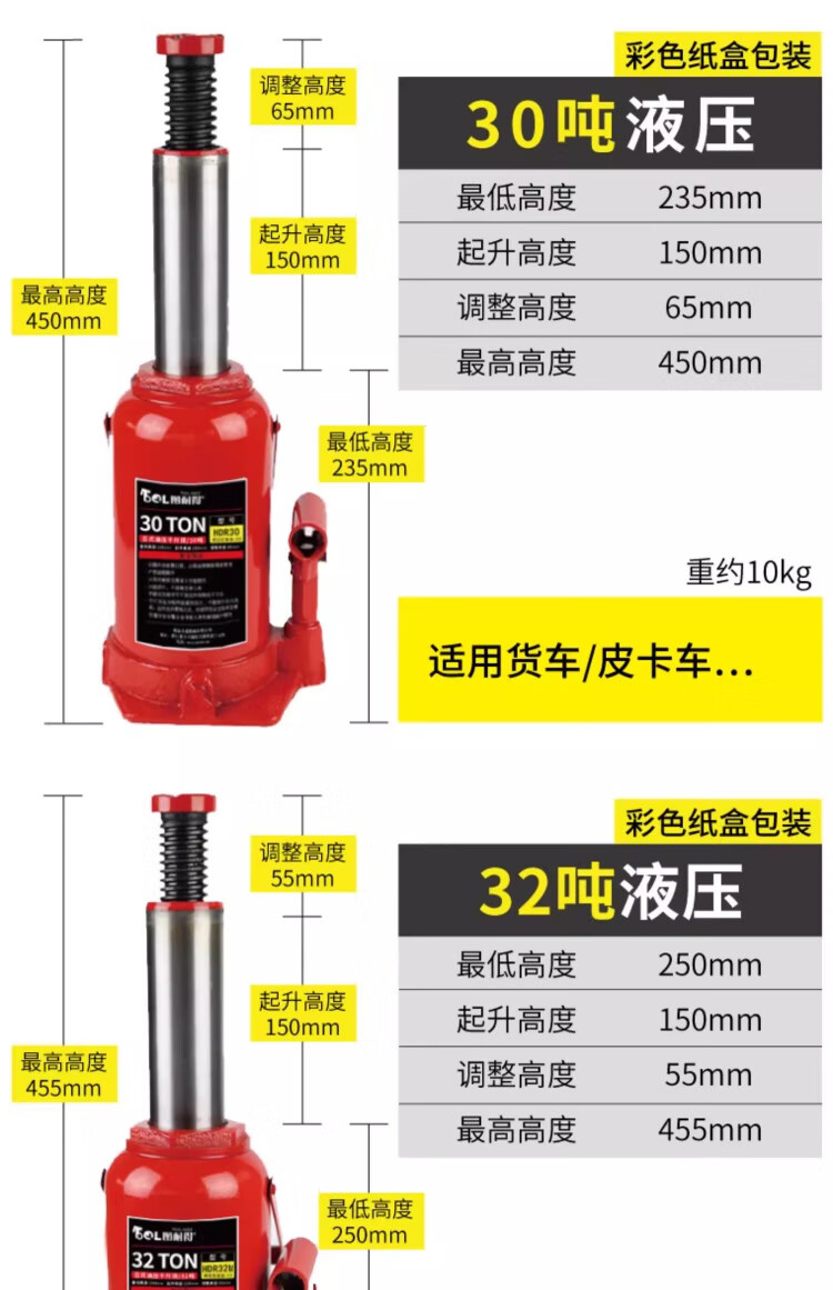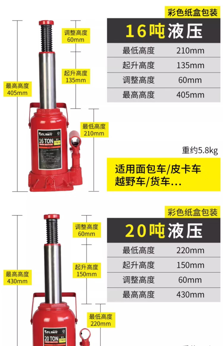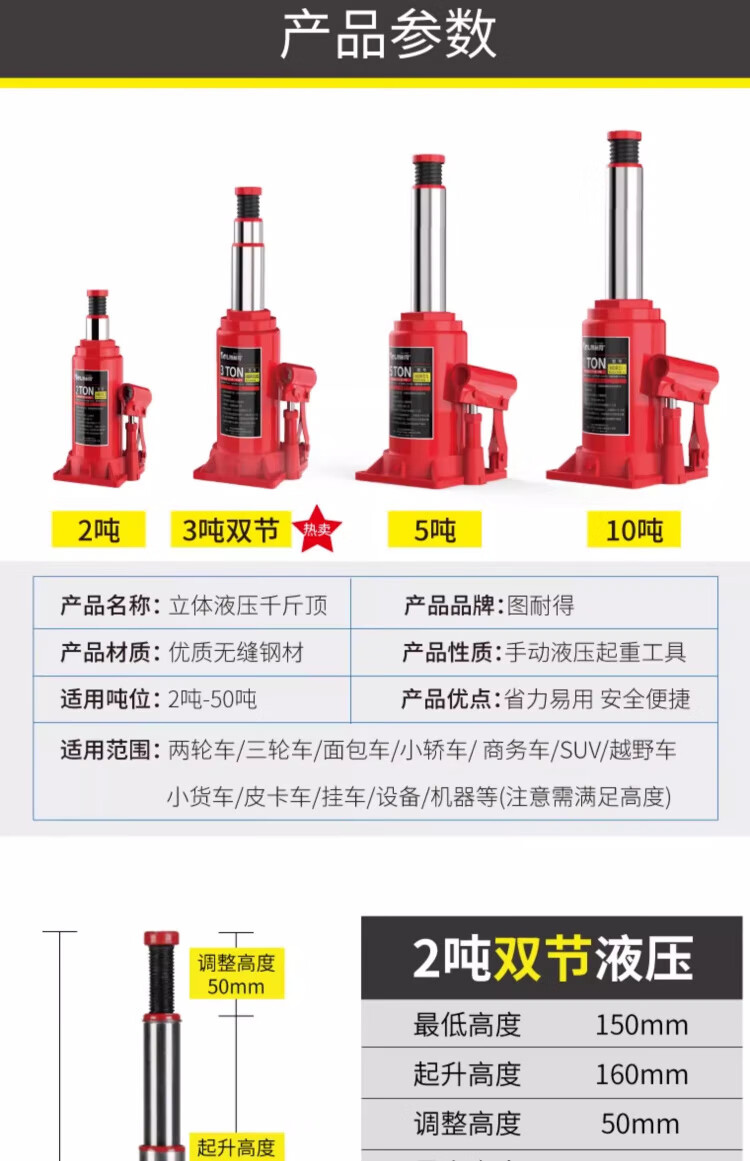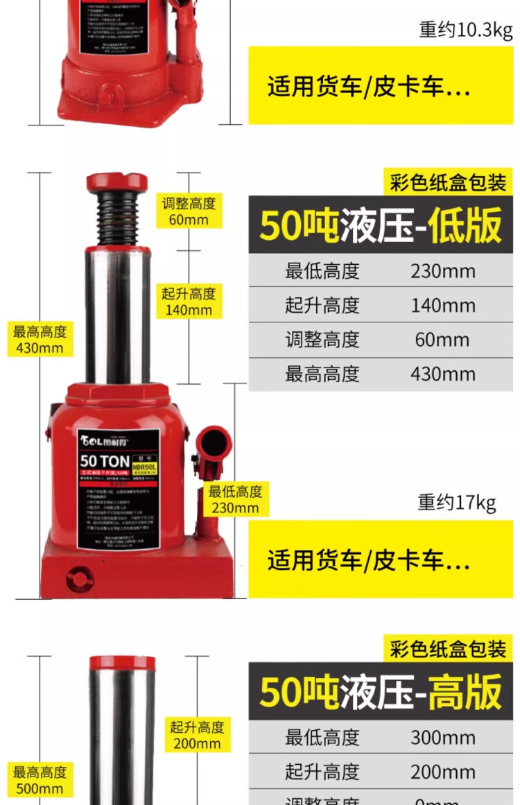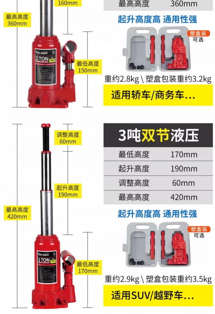 OLOEY vertical hydraulic jack car tire changing tool for off-road vehicle SUV van jack 20 tons double section