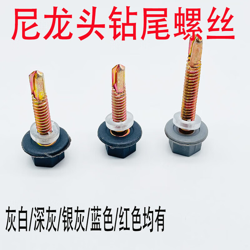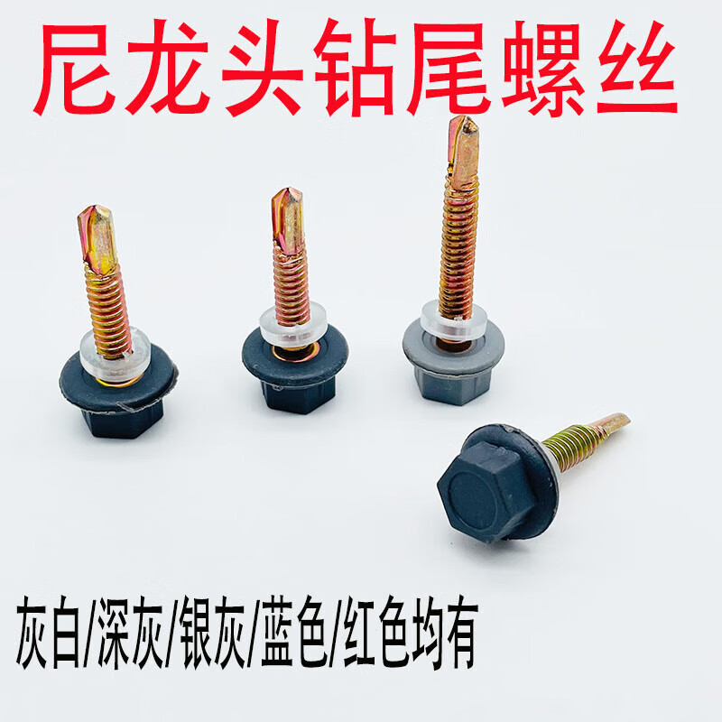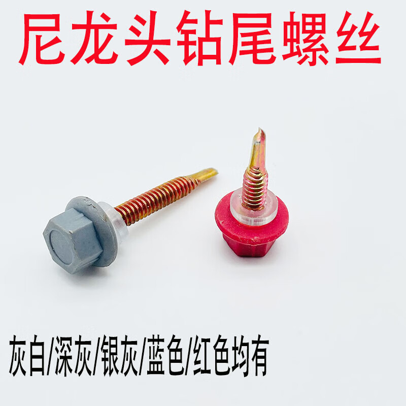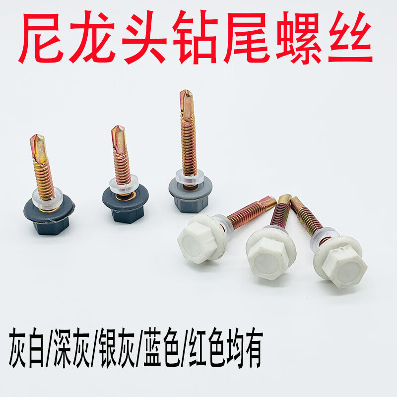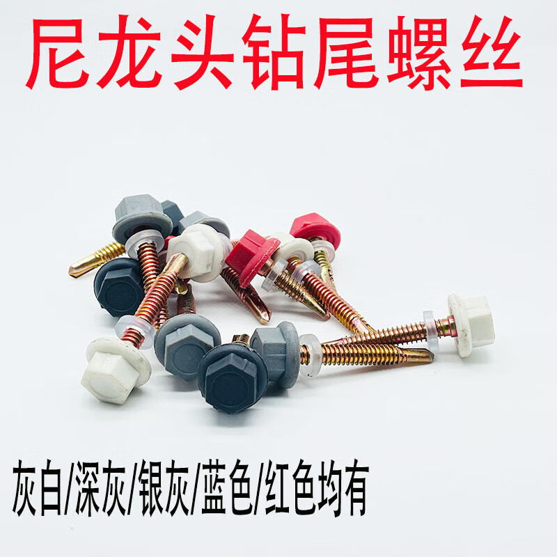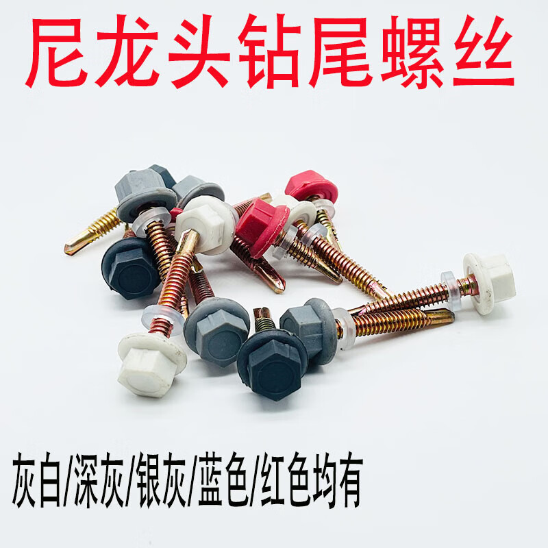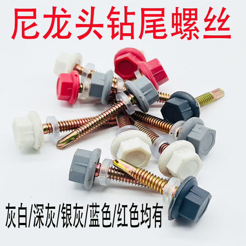 TNBROTHERS nylon head external hexagonal drill tail wire dovetail wire self-tapping self-drilling screws color steel tile resin tile waterproof cap installation nails. Color can be taken and remarked: white/grey/blue/red