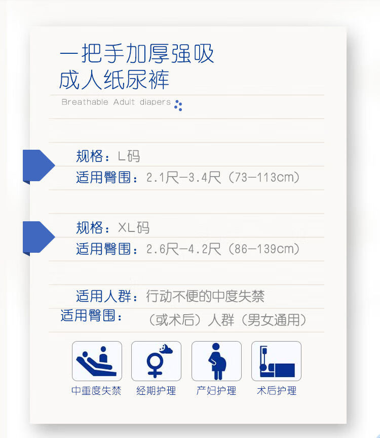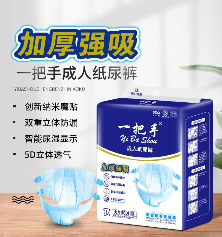 YiBaShou Adult Diapers Large Size Elderly Unisex Diapers Non-Pull-up Diapers Enhanced Absorption XL Size 30 Pieces Sticky Paper