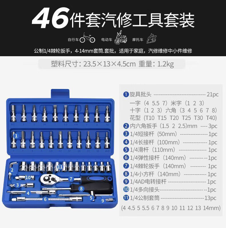 Yanran multifunctional auto repair tool set combination ratchet socket wrench car repair motorcycle repair tool box newly upgraded set of 4+42 pieces