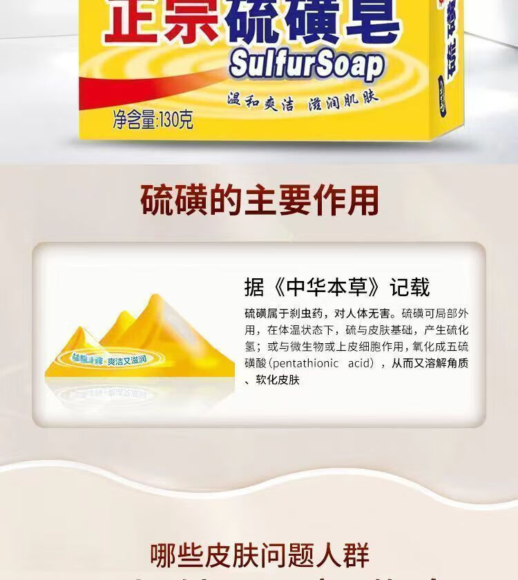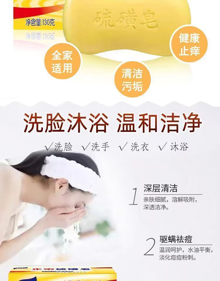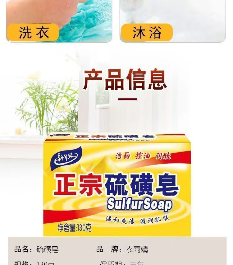 Large piece of authentic sulfur soap 130g hand wash face bath soap long lasting fragrance detergent set 3 pieces