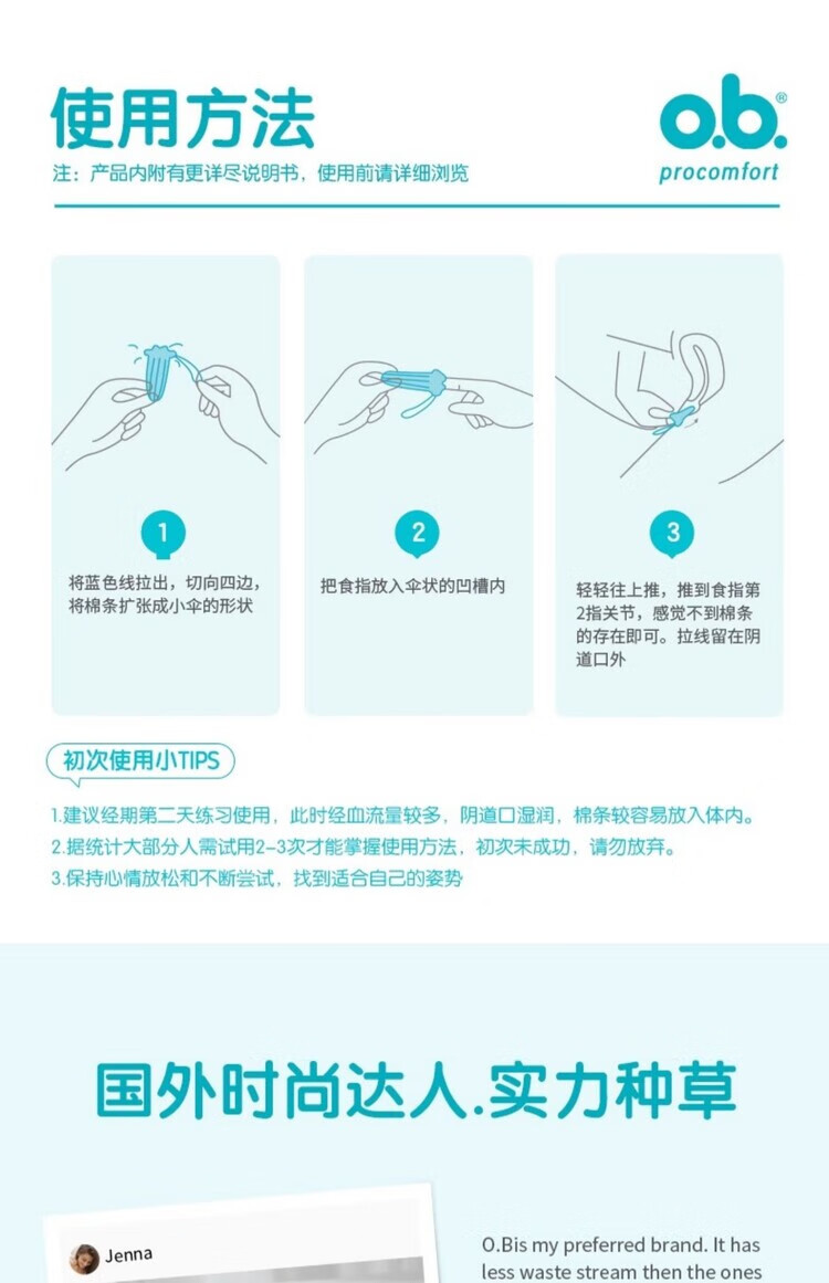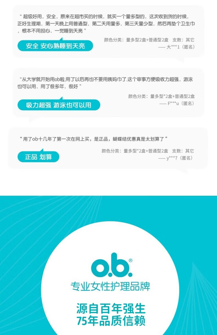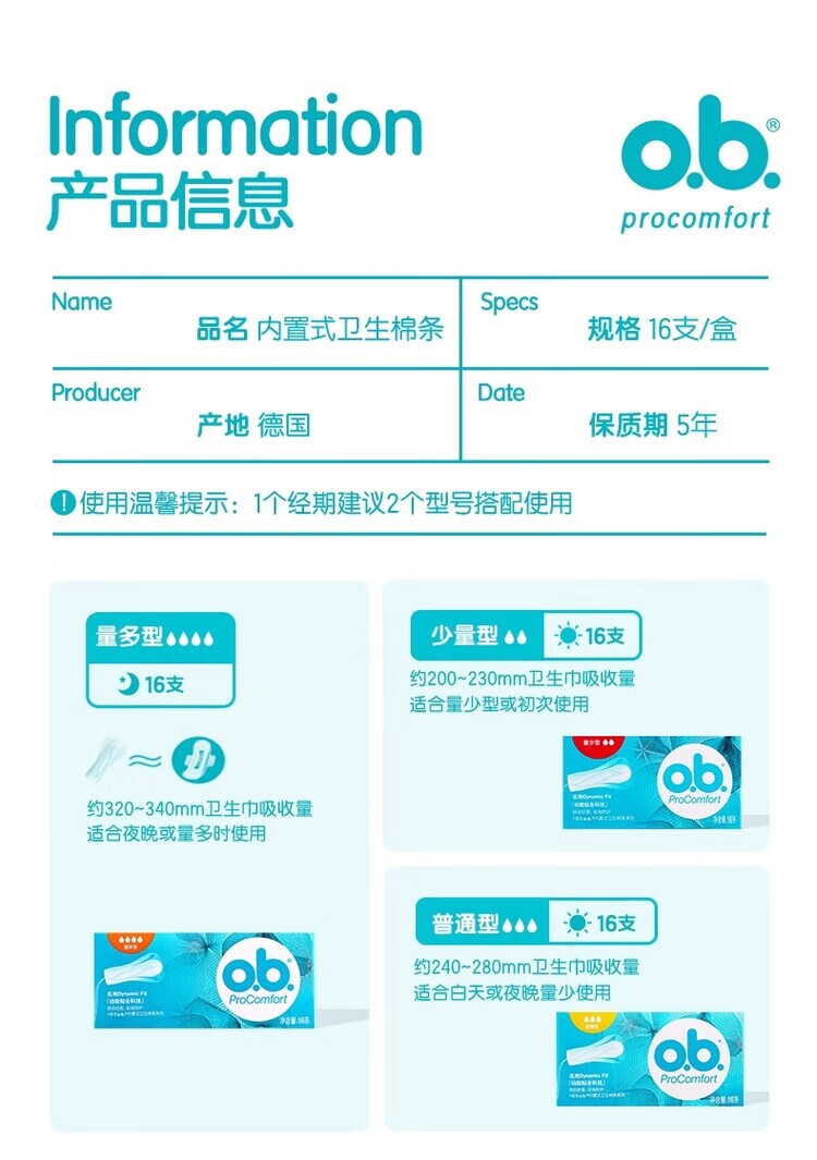 O.b. Women's tampons, built-in sanitary napkins, multi-volume swimming special tampons, menstrual aunt cotton swabs, multi-volume 8 boxes, others