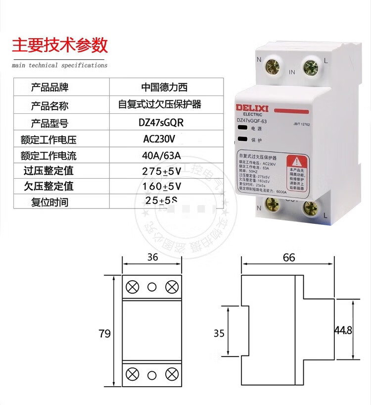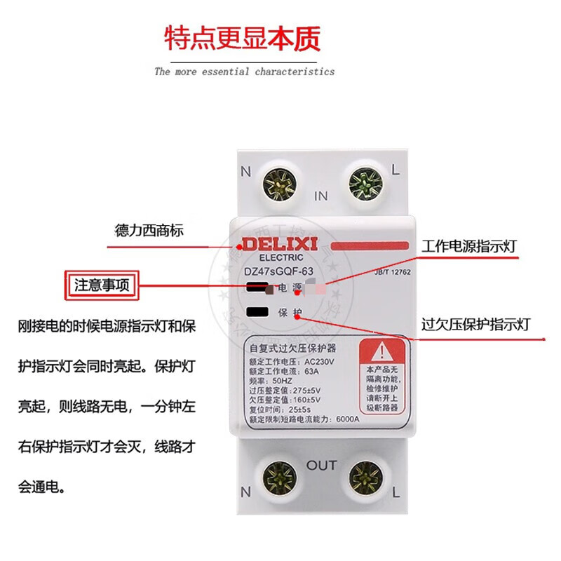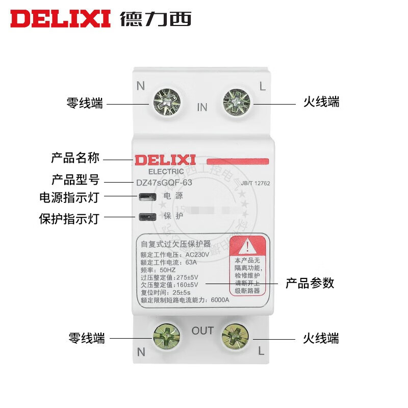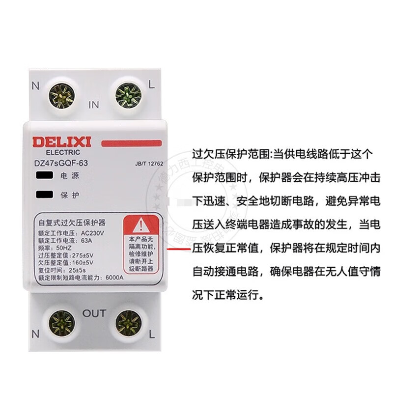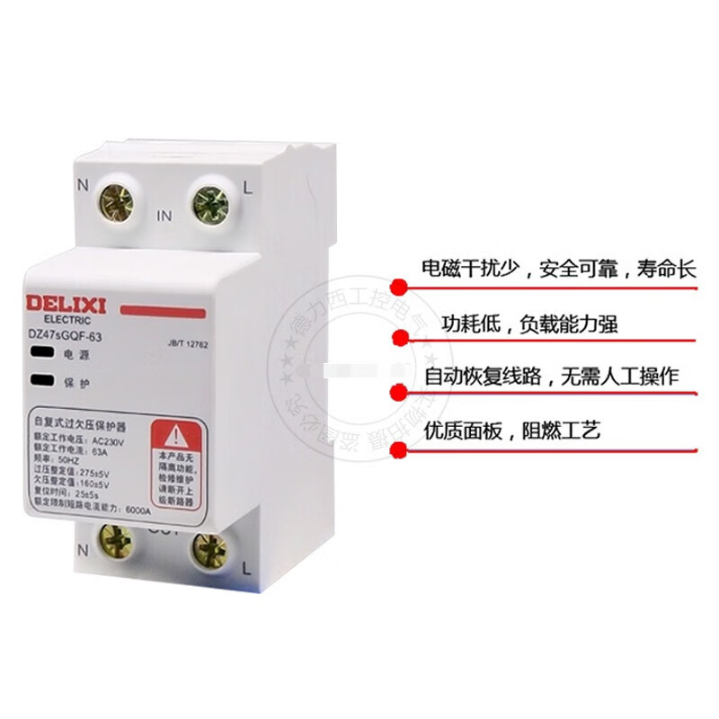Delixi self-restoring overvoltage undervoltage protector DZ47sGQF-63 63A 32A 40A 1P+N 3P+N 63A 3P+N