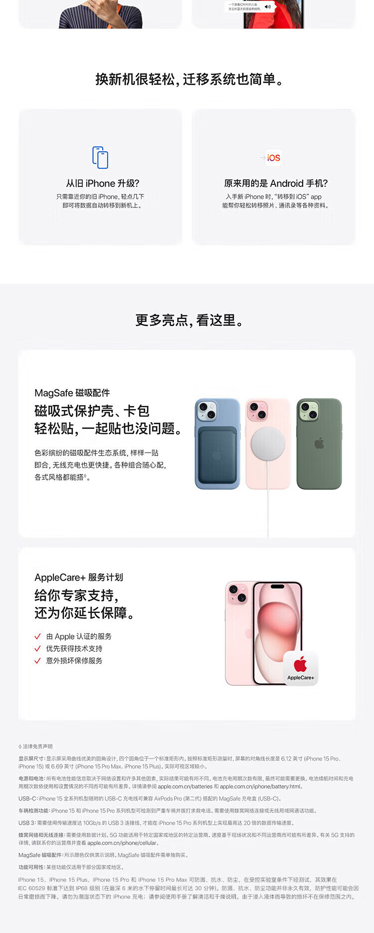 Apple Beijing Express Apple 15iPhone15 Series Apple 15promax Full Netcom 5G iPhone Apple 15plus Pink 6.7-inch 128G Accessories Gift Pack + 2 Years Store Warranty