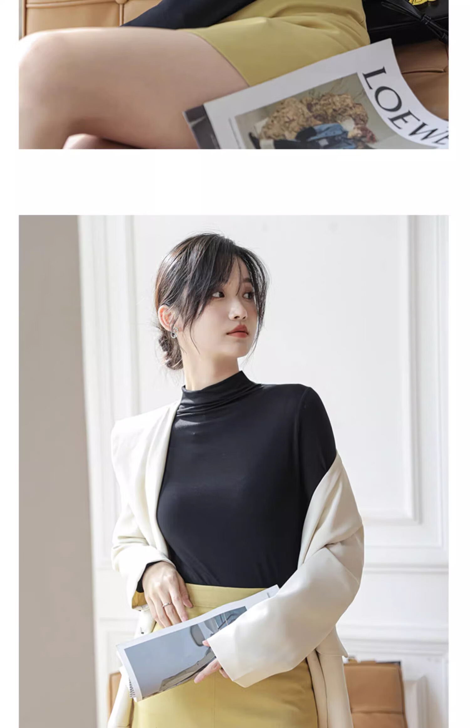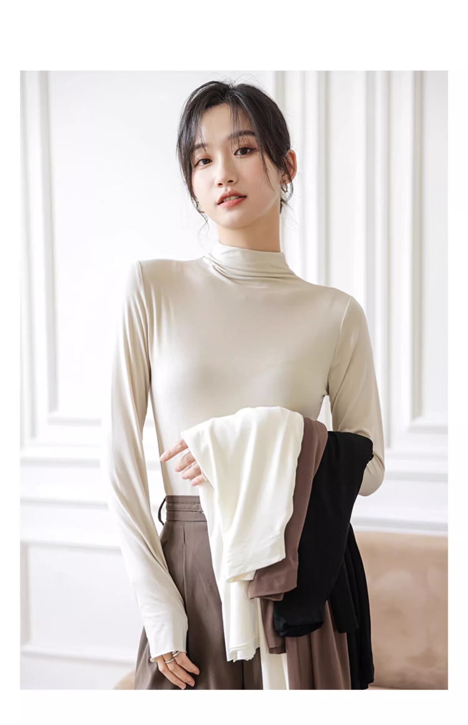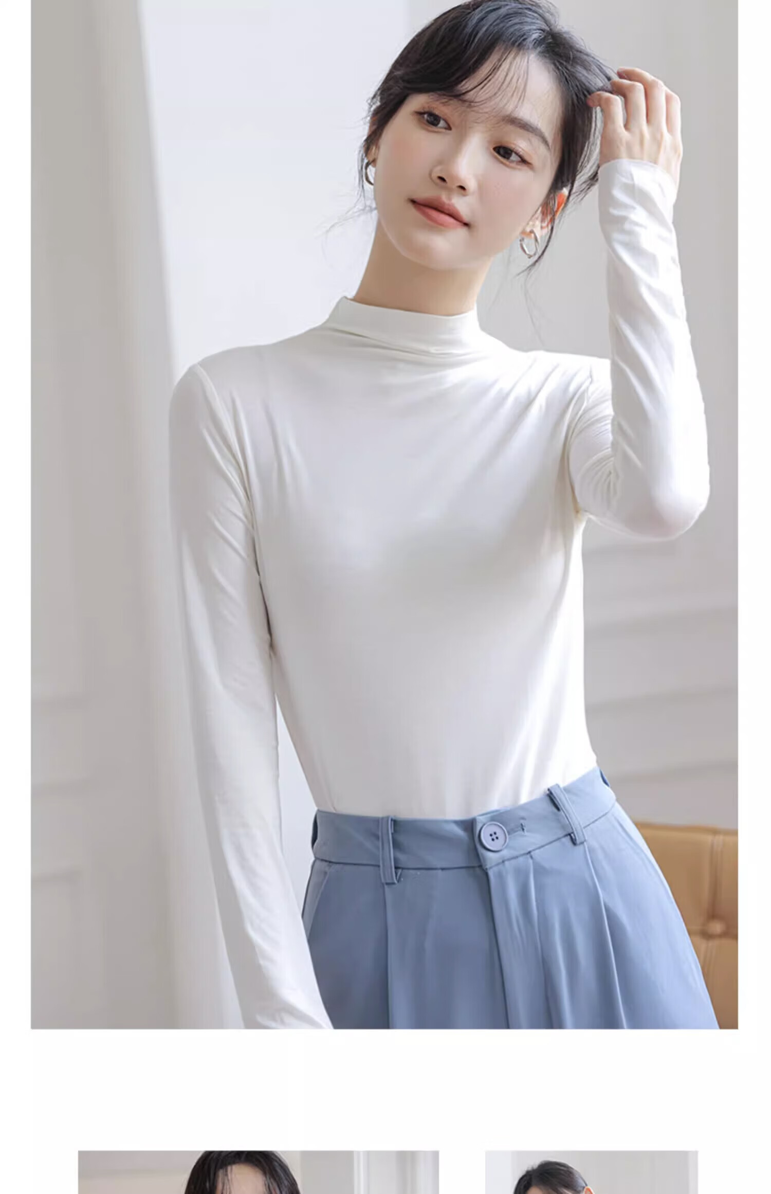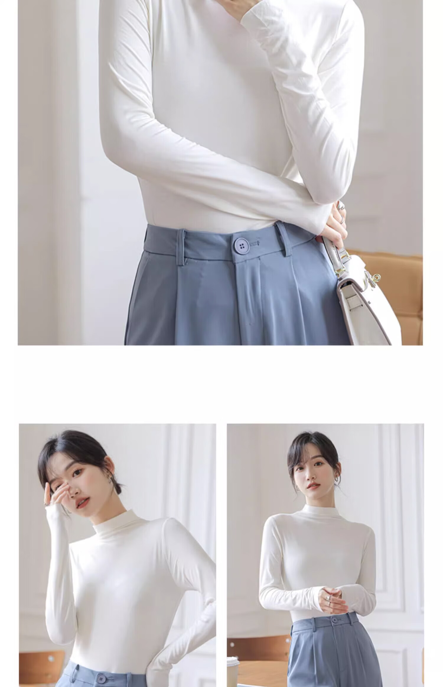 Half-turtle collar bottoming shirt for women 2025 new model that can be worn outside, autumn and winter, solid color, solid color slim-fitting long-sleeved top, white, one size fits all, recommended weight 80-140 catties
