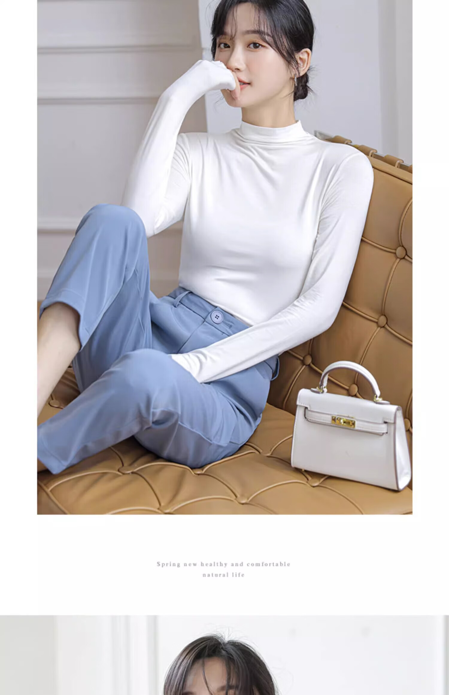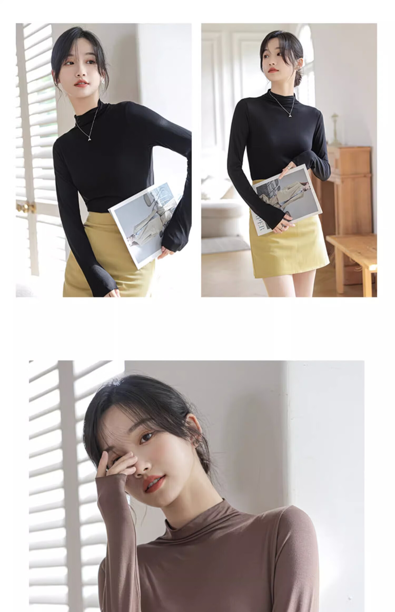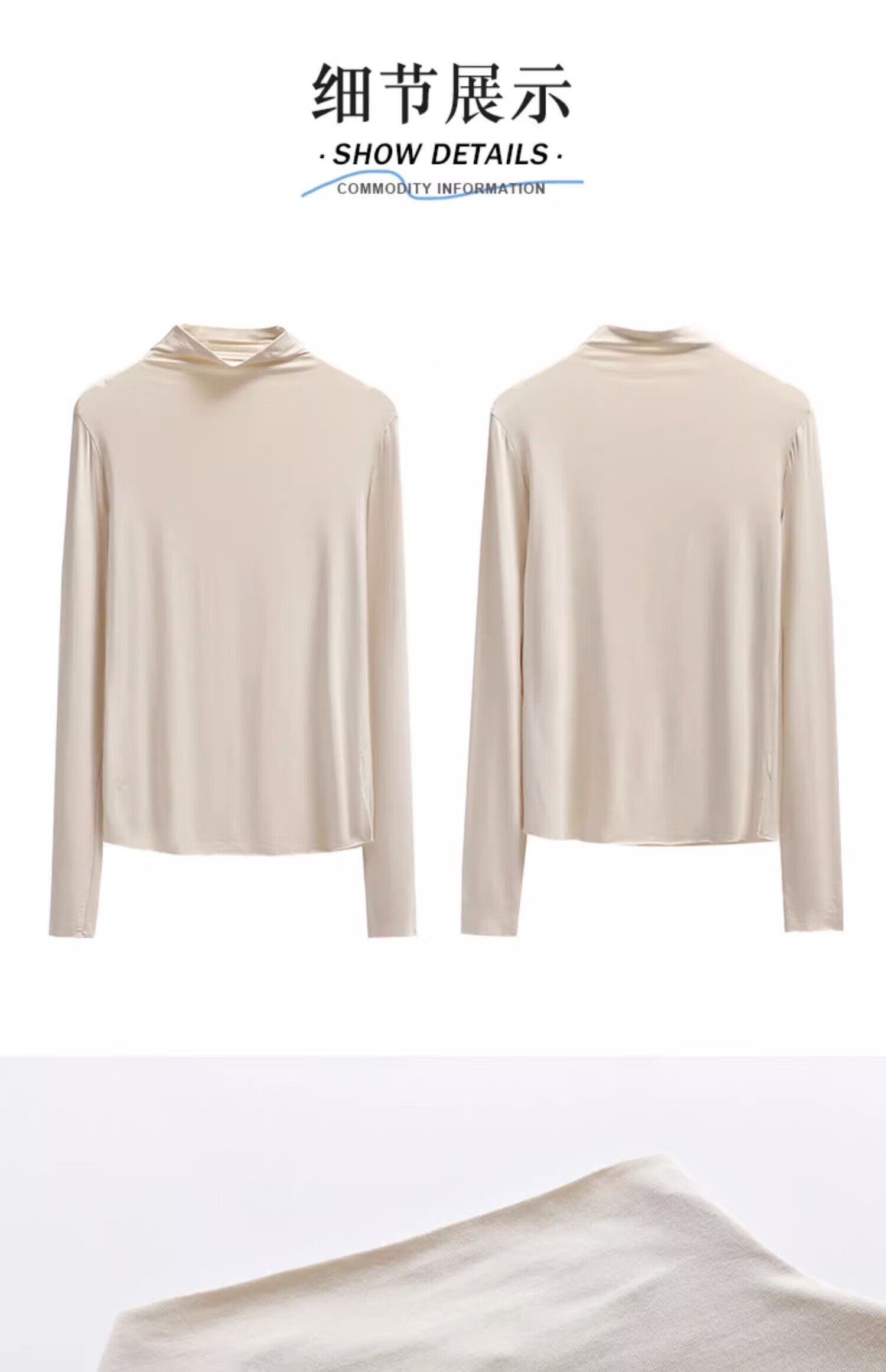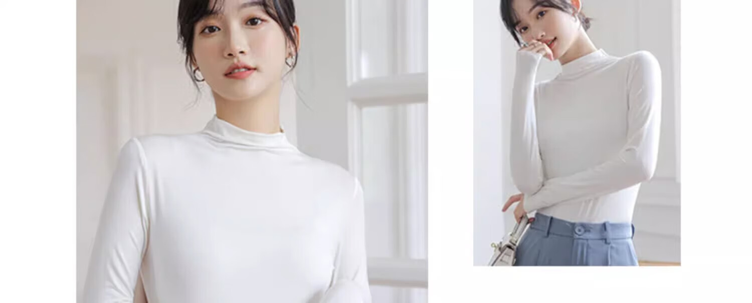 Half-turtle collar bottoming shirt for women 2025 new model that can be worn outside, autumn and winter, solid color, solid color slim-fitting long-sleeved top, white, one size fits all, recommended weight 80-140 catties