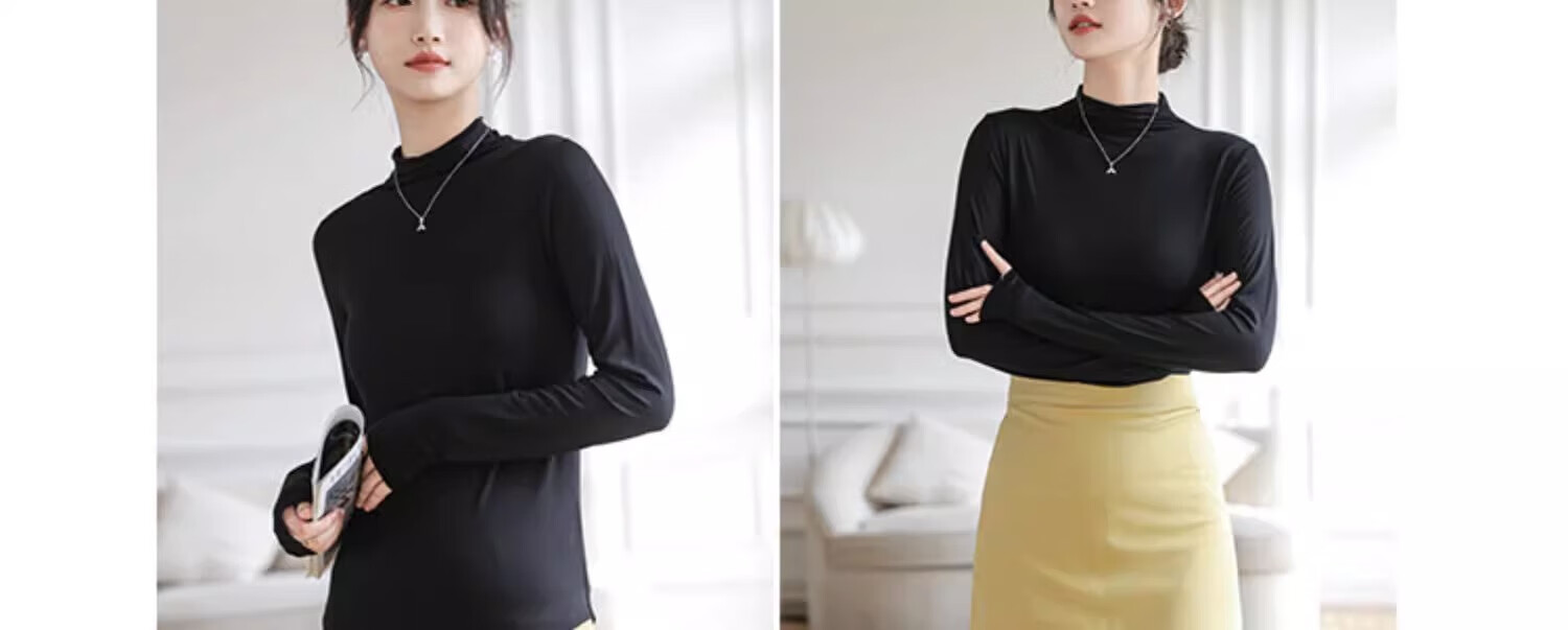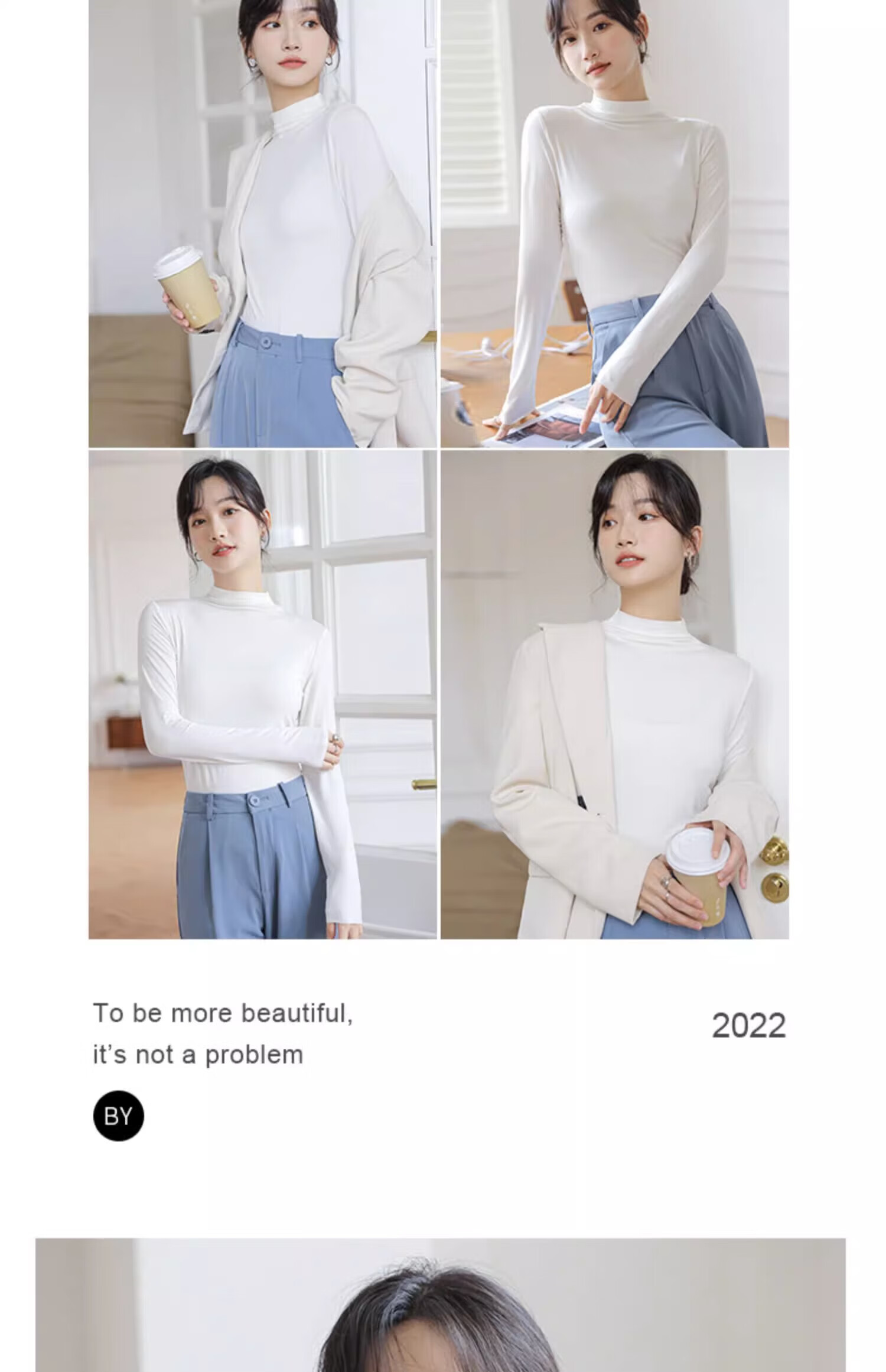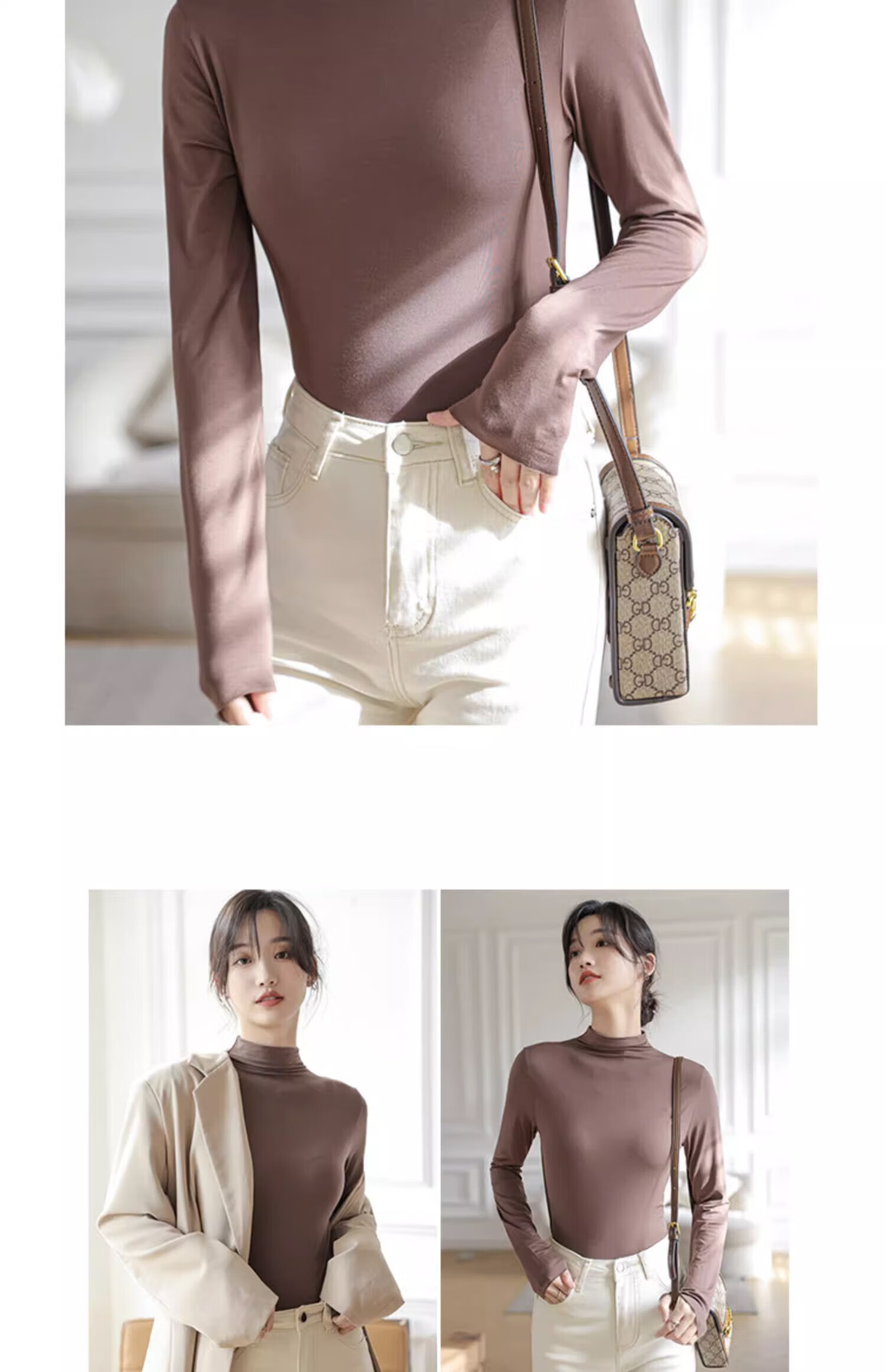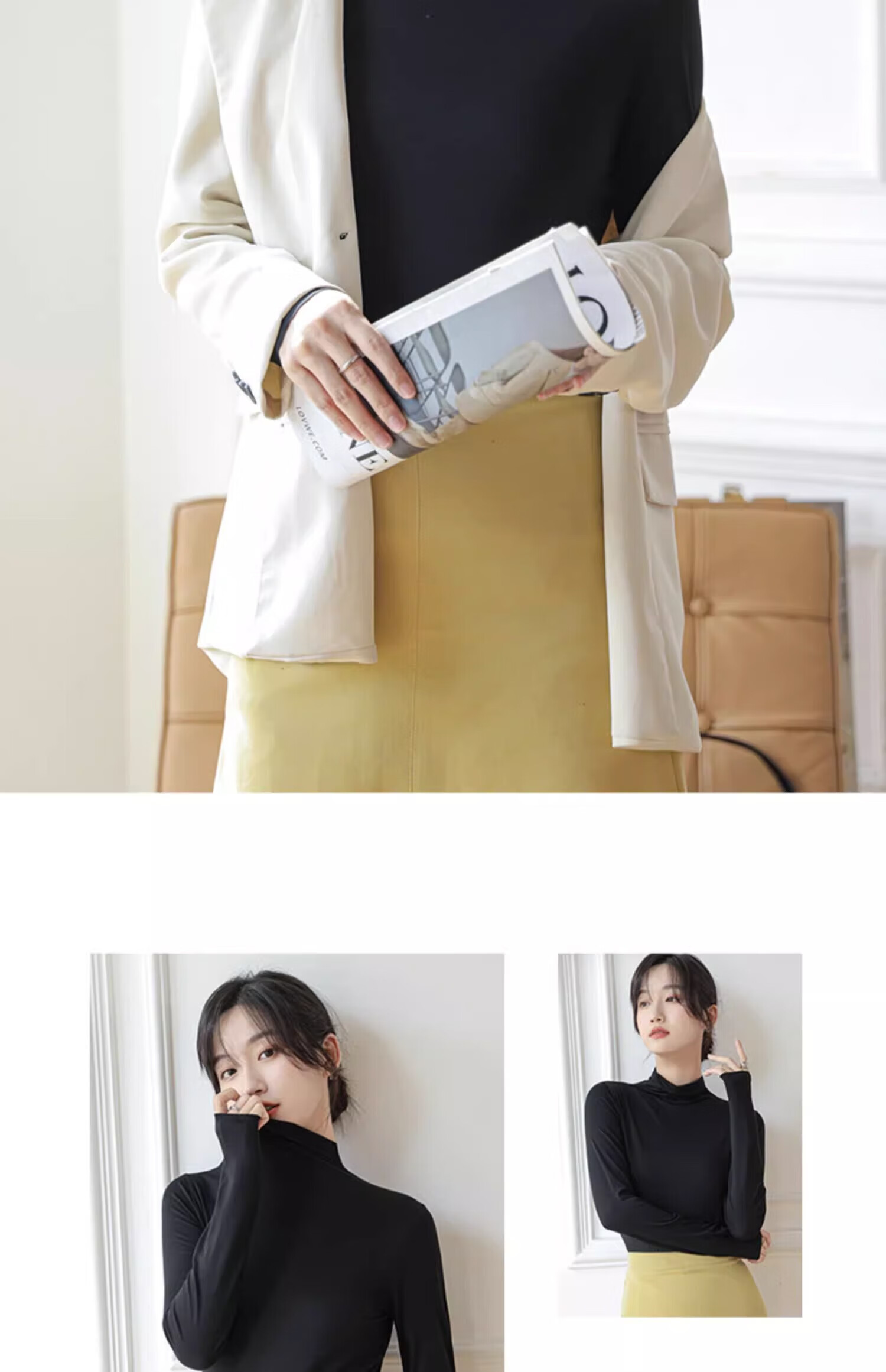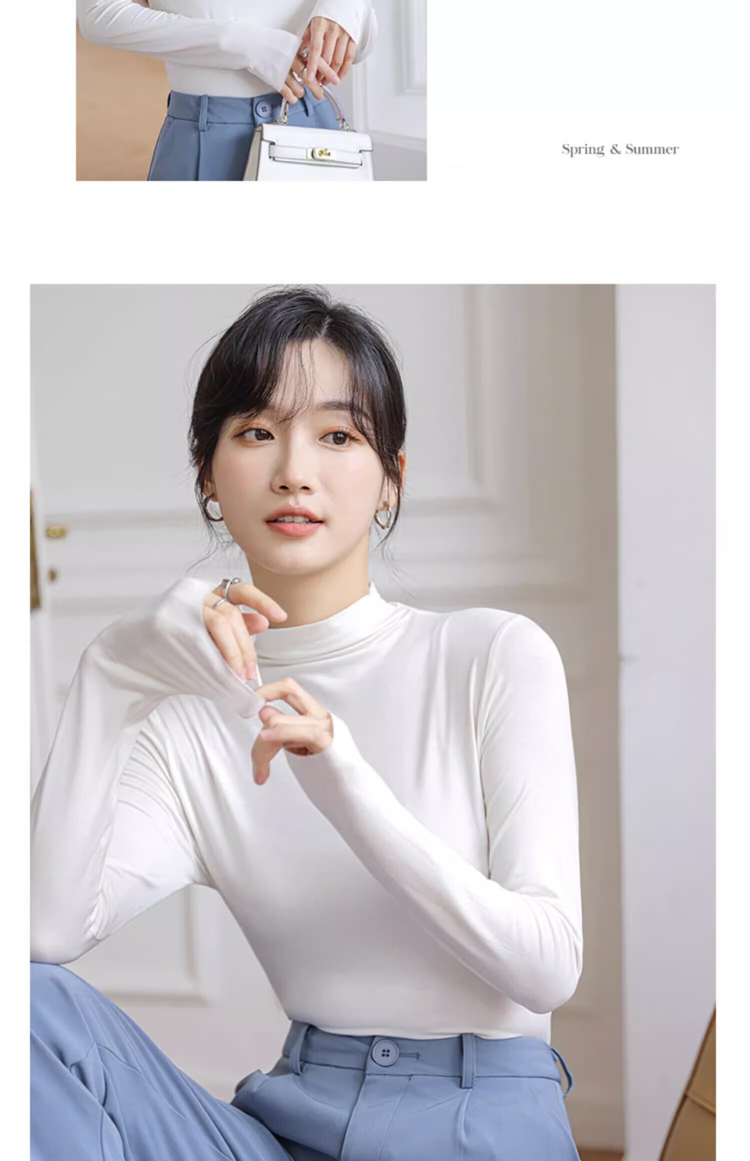 Half-turtle collar bottoming shirt for women 2025 new model that can be worn outside, autumn and winter, solid color, solid color slim-fitting long-sleeved top, white, one size fits all, recommended weight 80-140 catties