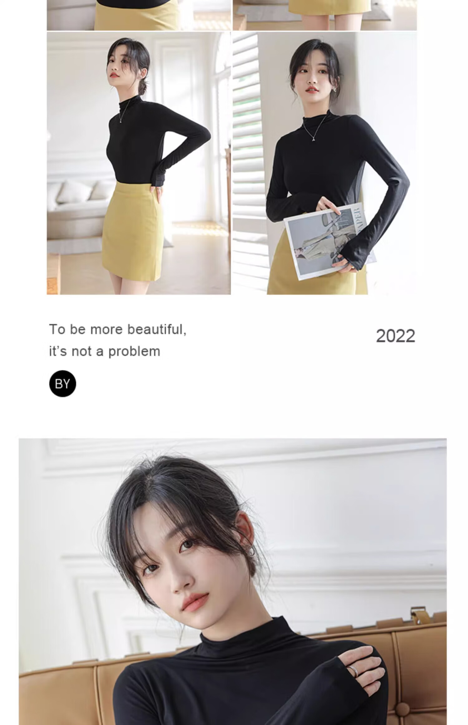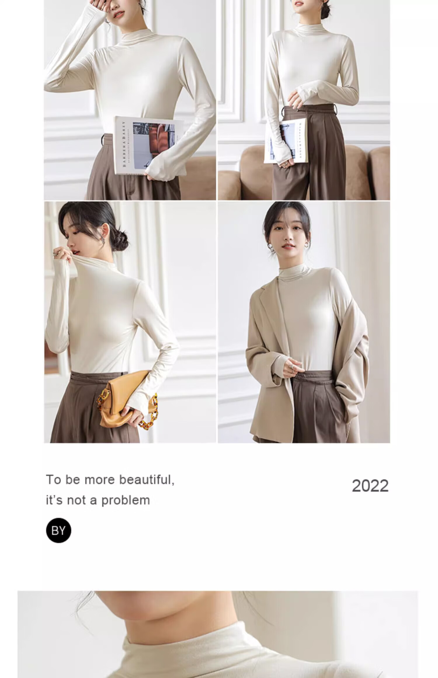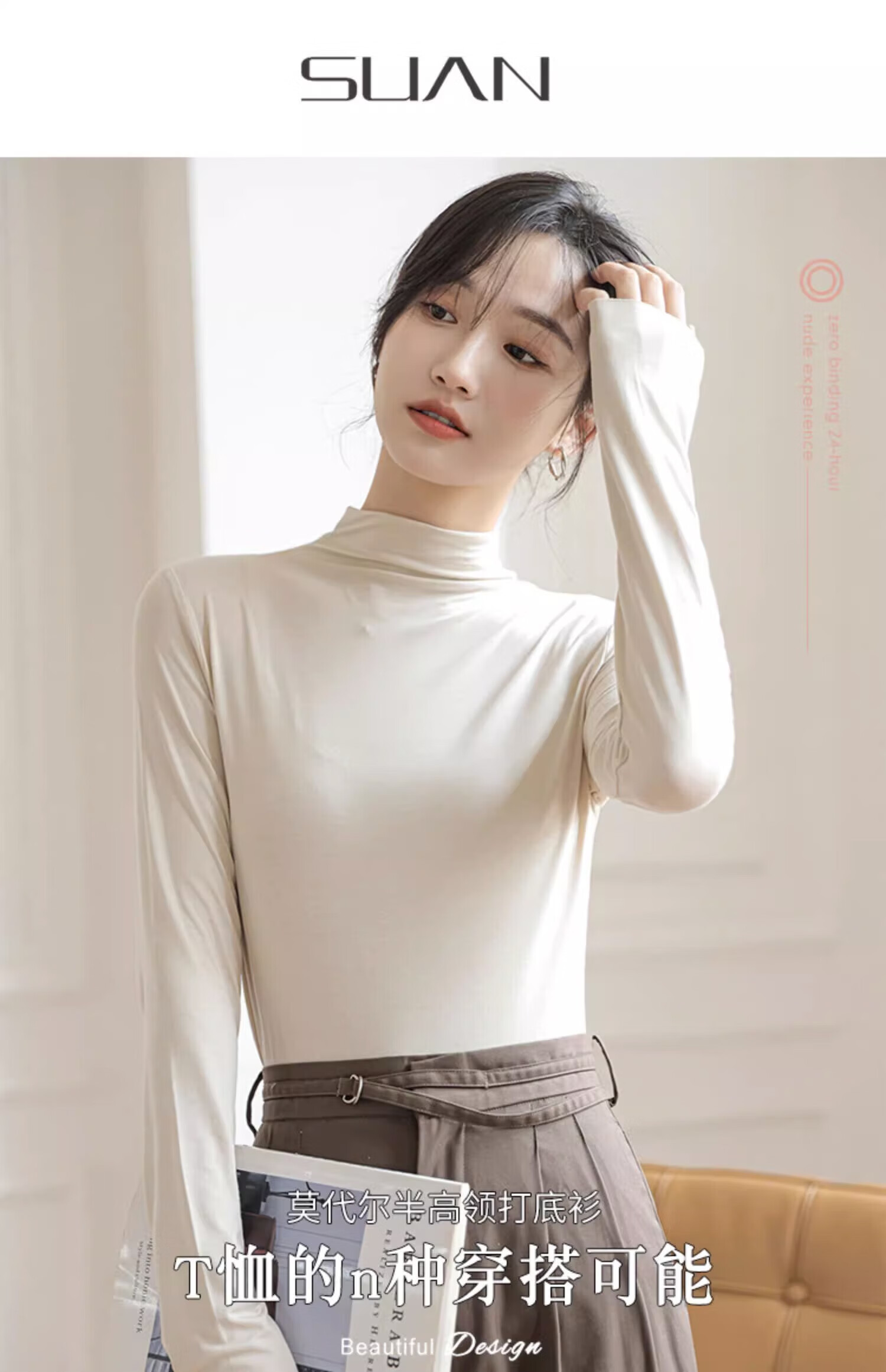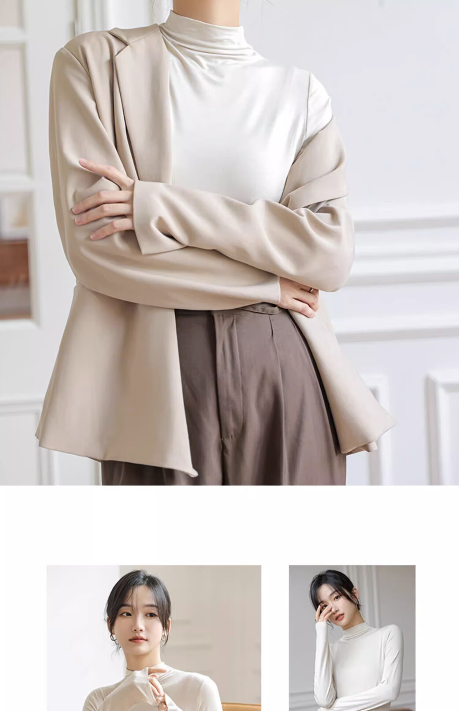 Half-turtle collar bottoming shirt for women 2025 new model that can be worn outside, autumn and winter, solid color, solid color slim-fitting long-sleeved top, white, one size fits all, recommended weight 80-140 catties