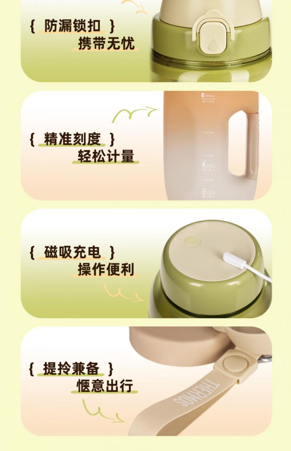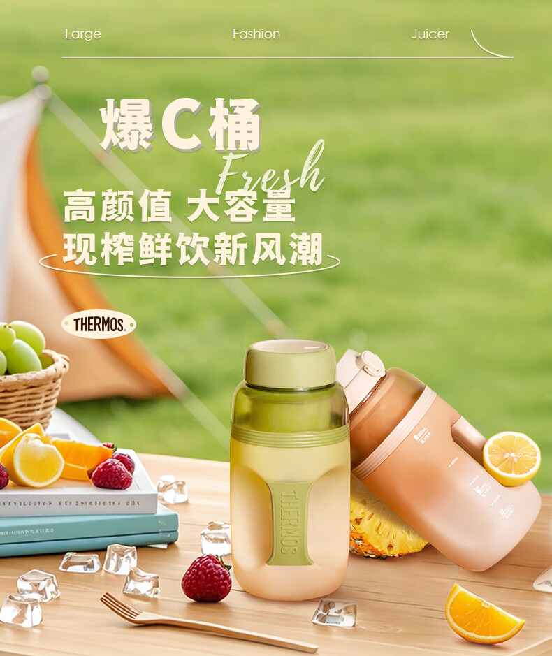 THERMOS Wireless Charging Juicing Ton Bucket Large Capacity Outdoor Juice Machine Multifunctional Juicing Bucket Juicing Cup Gradient Vibrant Beige