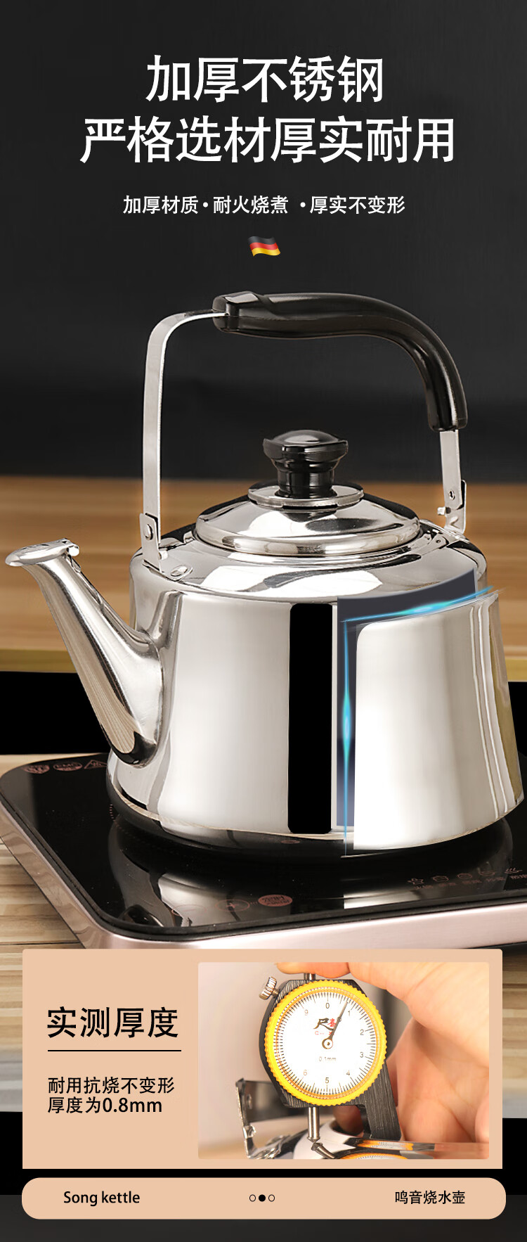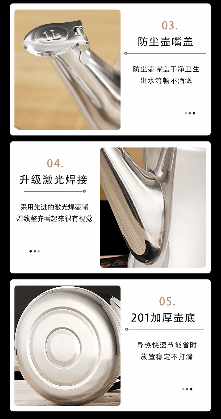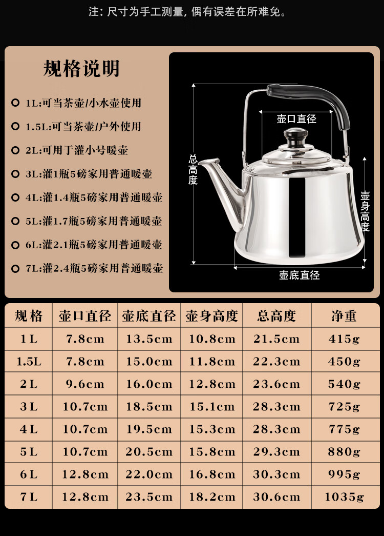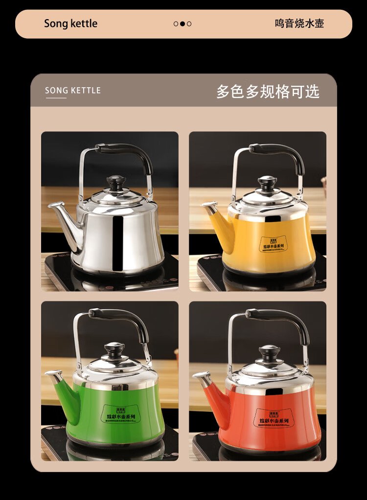 Meitemei color kettle extra thick stainless steel gas induction cooker tea kettle household kettle hot pot shop plus soup kettle stainless steel natural color 3L 7L
