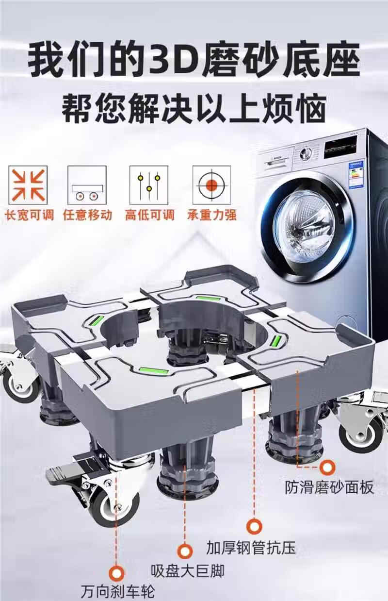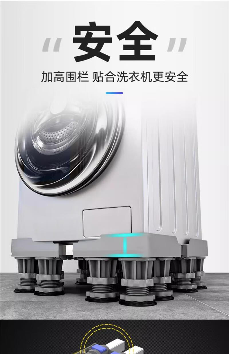 MPPMCK German washing machine base shelf universal fully automatic removable caster wheel increased height shockproof foot pad refrigerator pad standard 4 feet gray