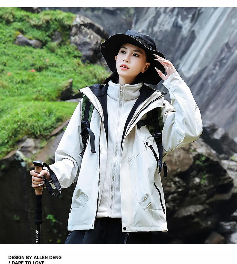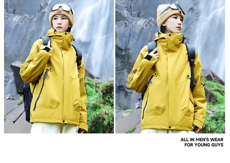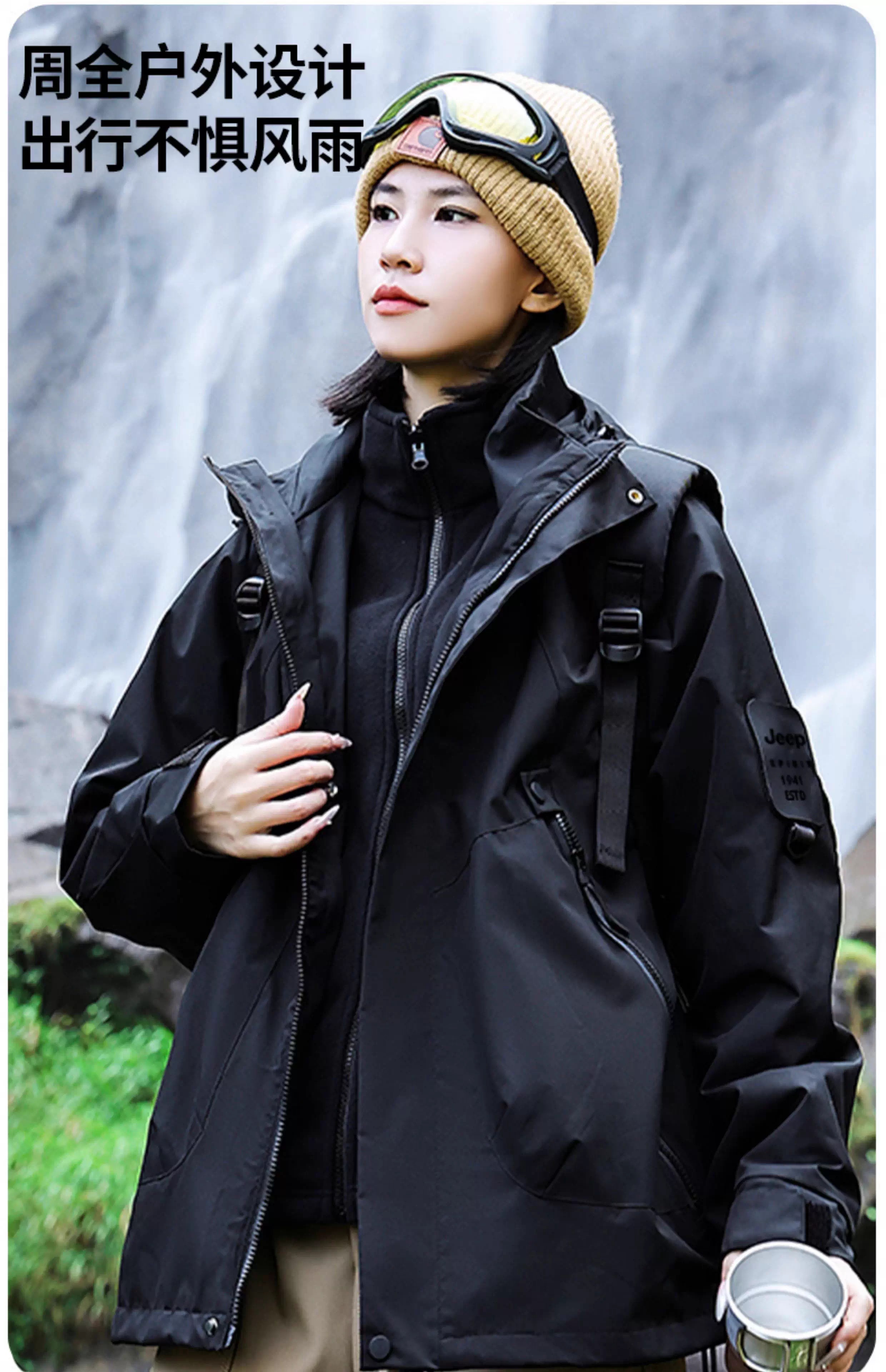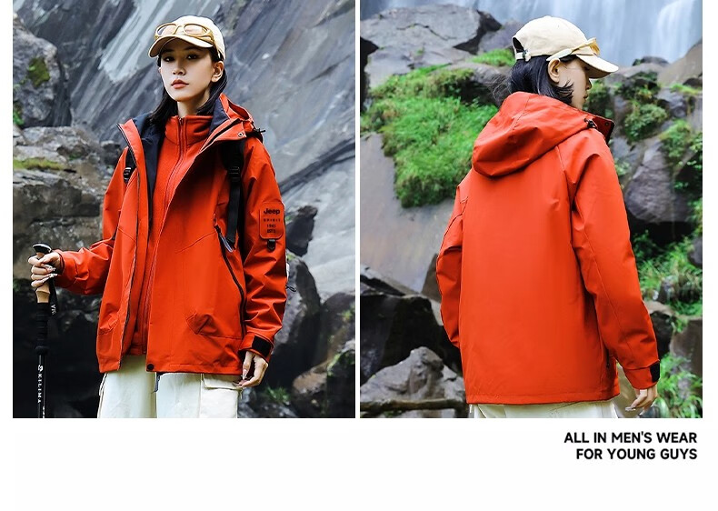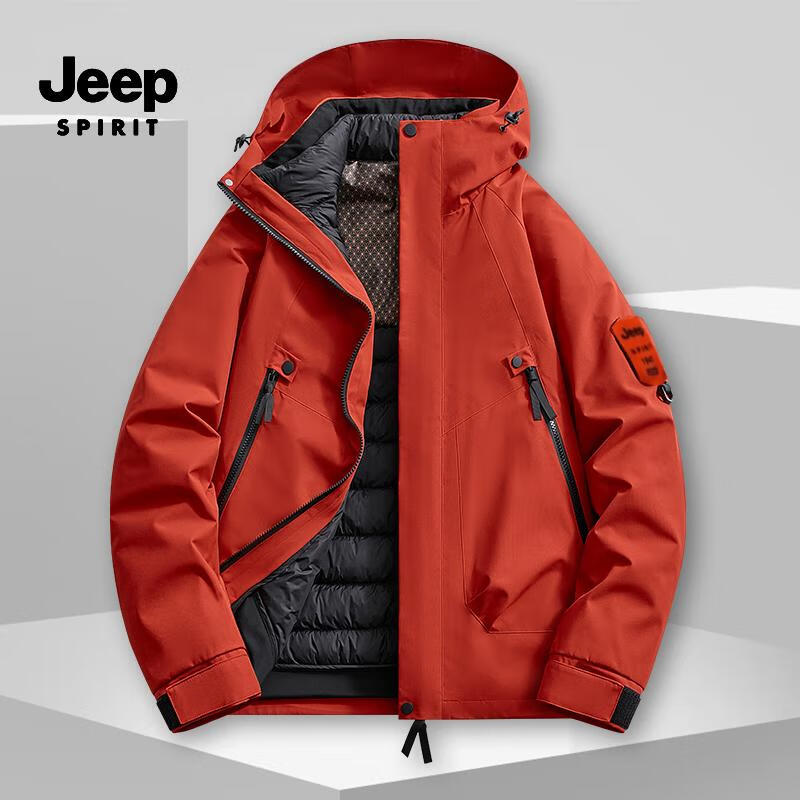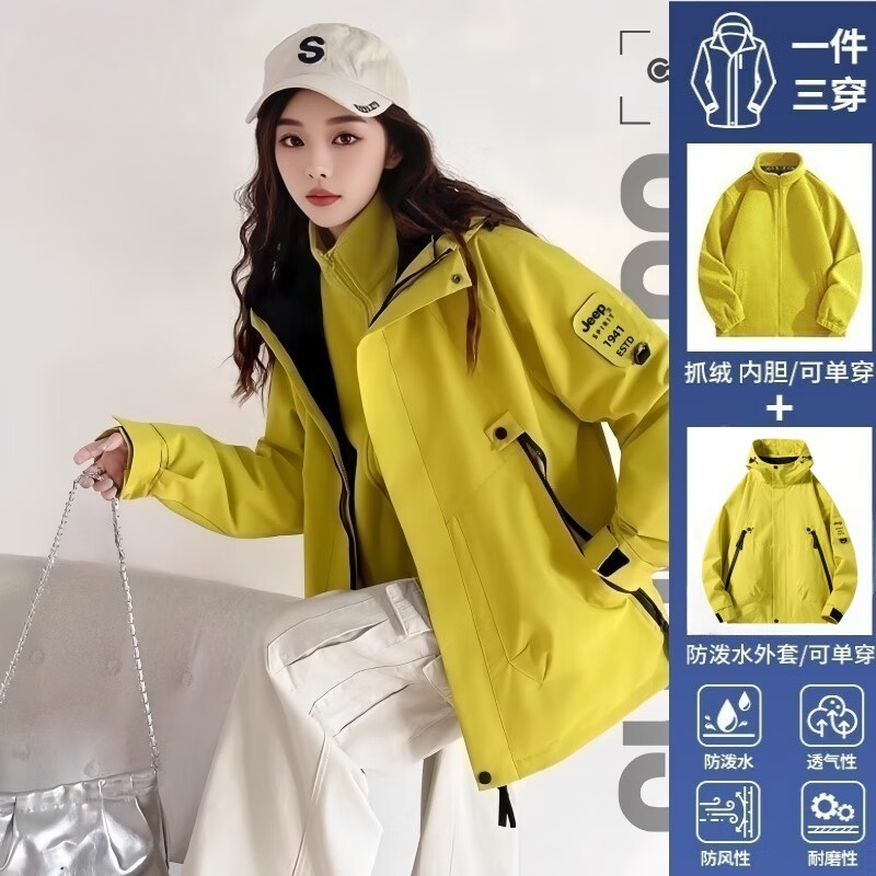 JEEP SPIRIT Jeep Jacket 3-in-1 Men's and Women's Down Liner Outdoor Warm Detachable Jacket Autumn and Winter Mountaineering Jacket Fluorescent Green Fleece Liner 3-in-1 L (Recommended 130-150 catties)