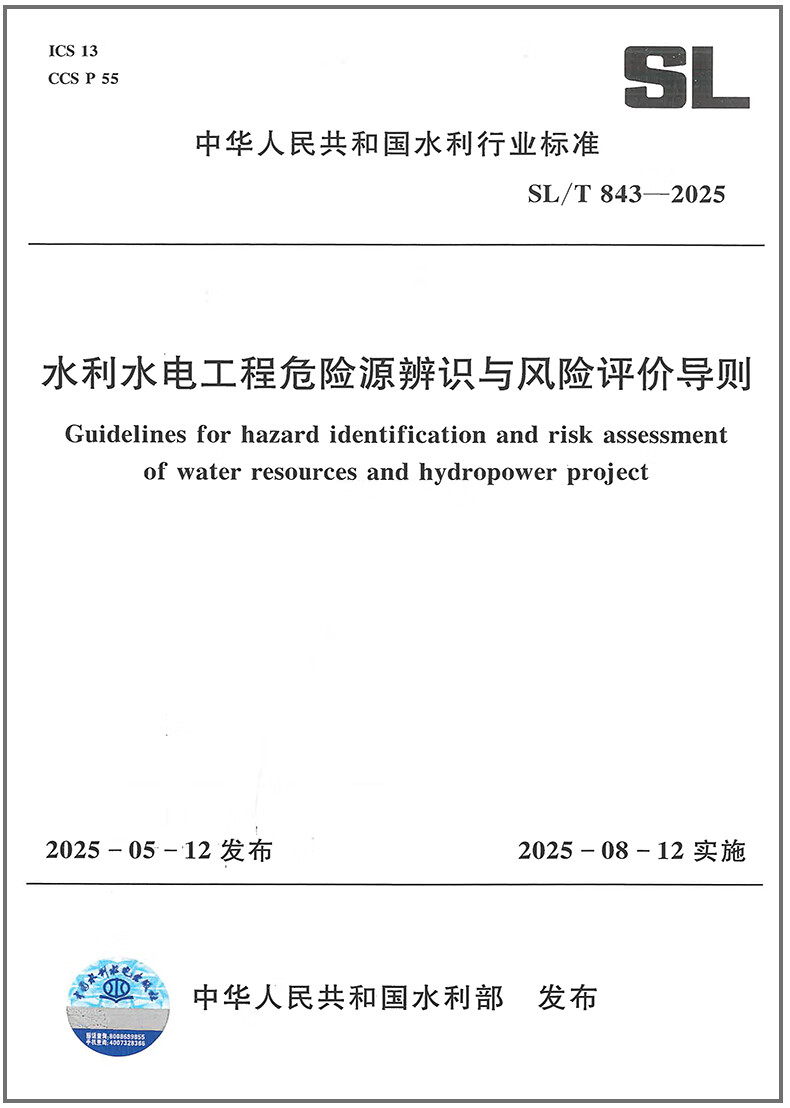 Quick release from stock New standard in 2025 SL/T 843-2025 Guidelines for Hazard Identification and Risk Assessment of Water Conservancy and Hydropower Engineering Implemented on August 12, 2025 China Water Conservancy and Hydropower Press