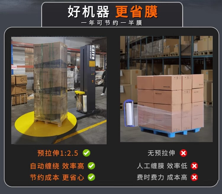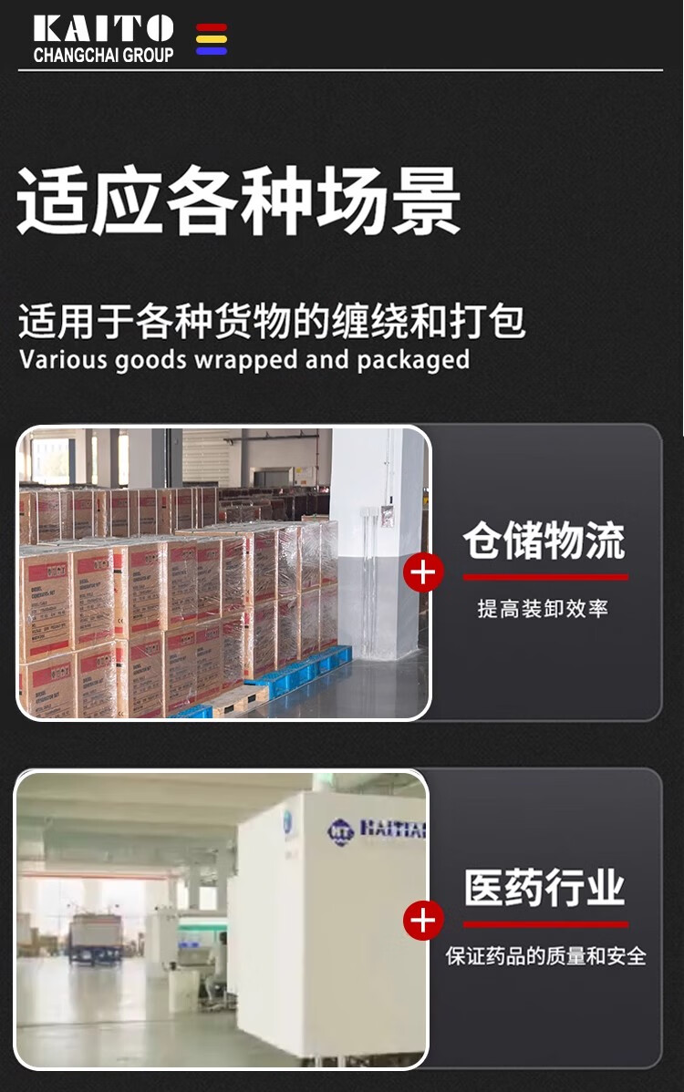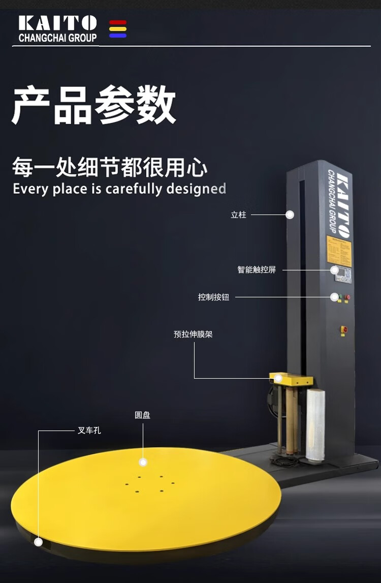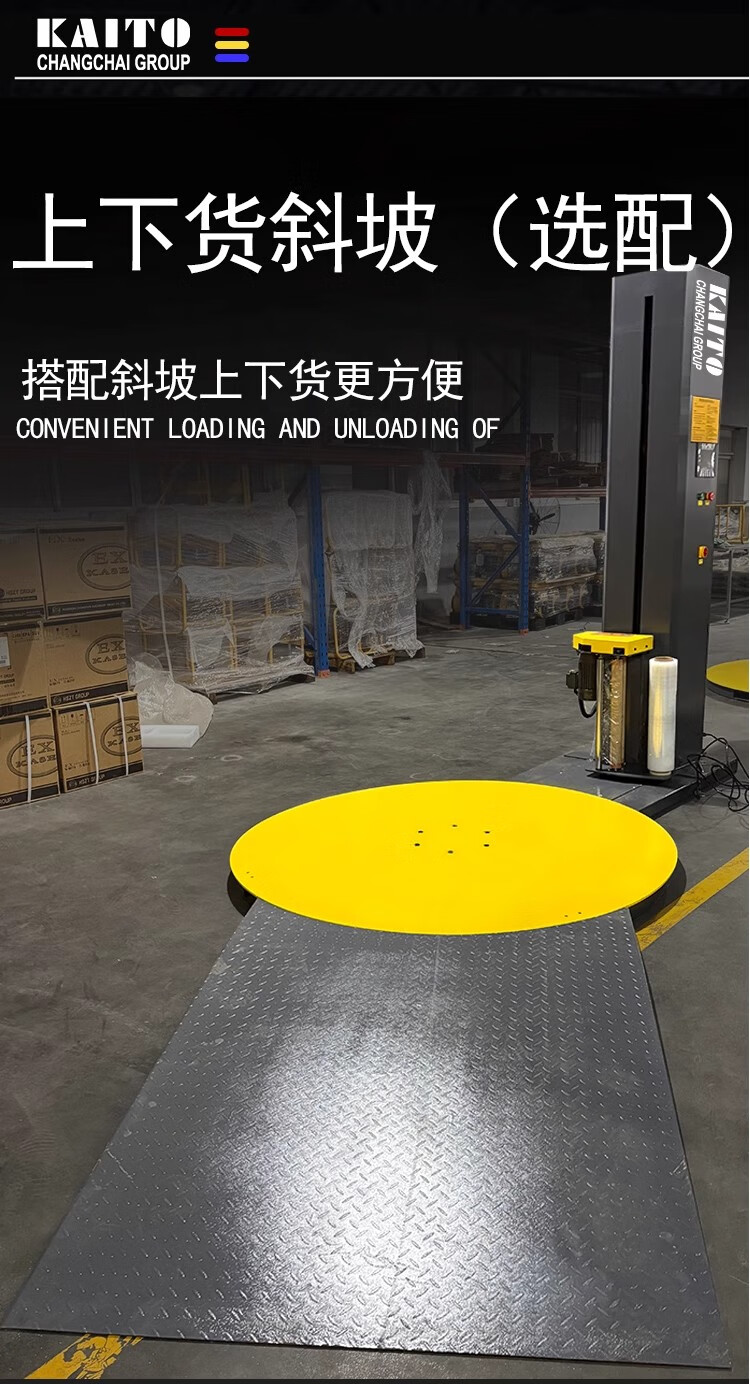 Changchai Group Kaituo fully automatic stretch film machine pre-stretched film packaging machine with tray factory-specific automatic packaging machine with a supporting ramp