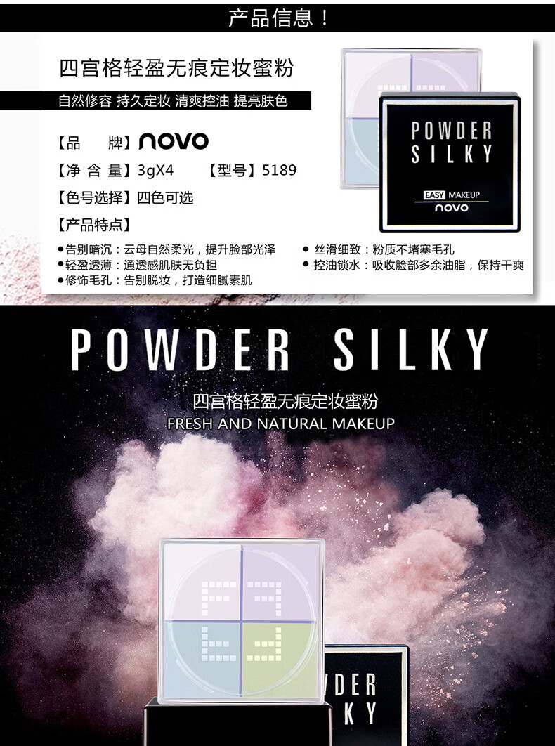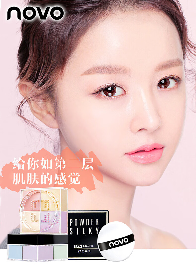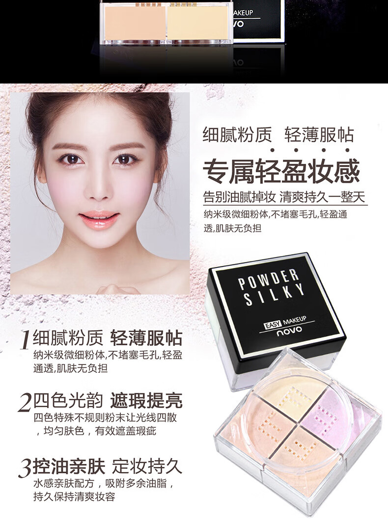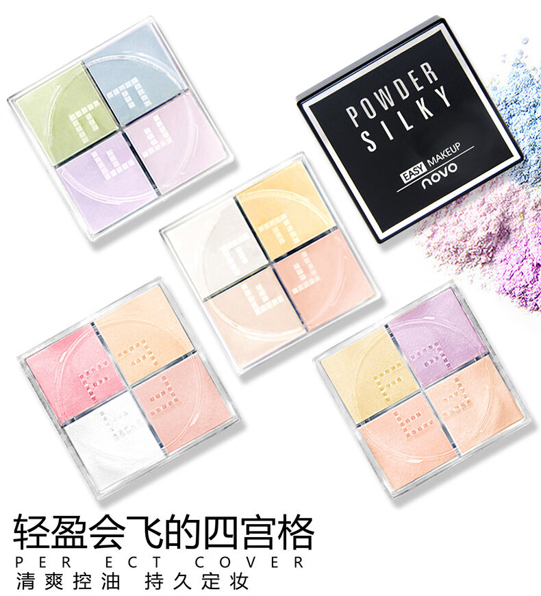NOVO four-square loose powder four-color setting powder for women, long-lasting, non-removing makeup, suitable for oily and dry skin, fine shimmer, pearlescent with shimmer 1# transparent matte