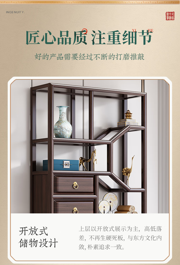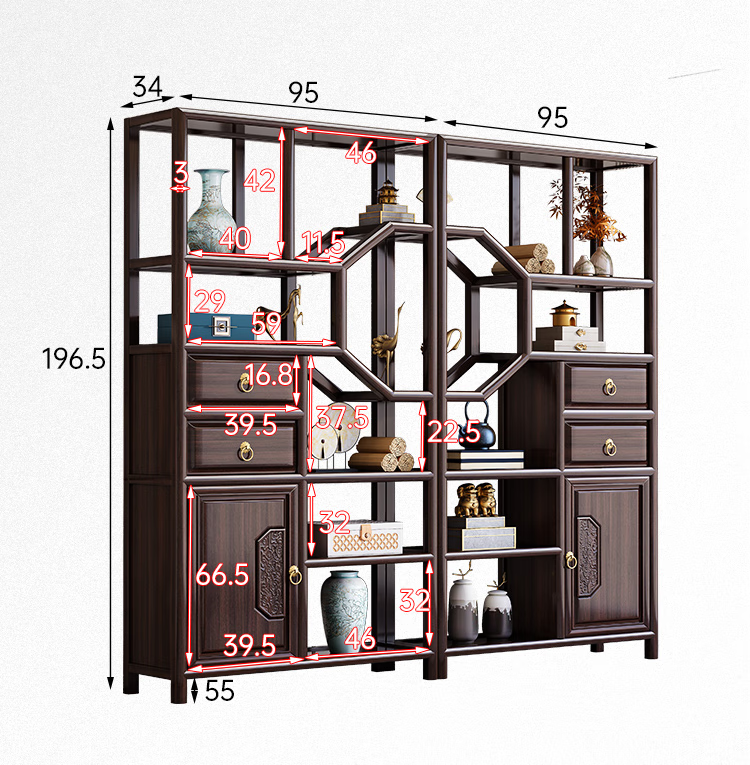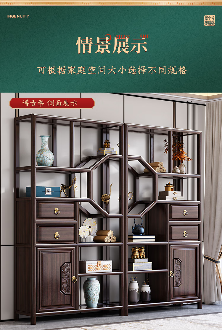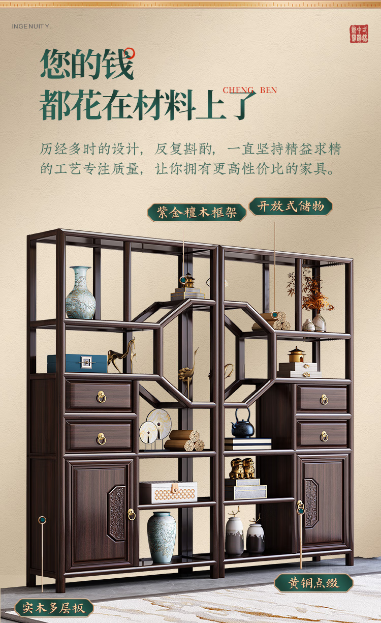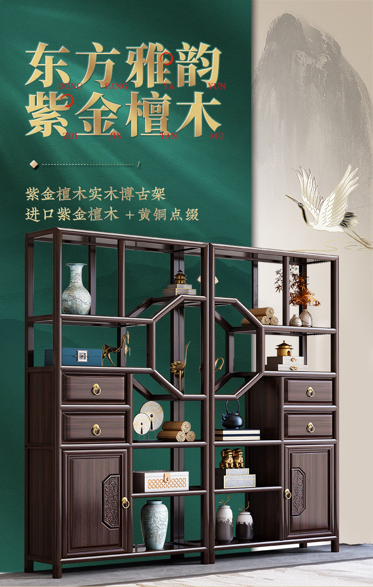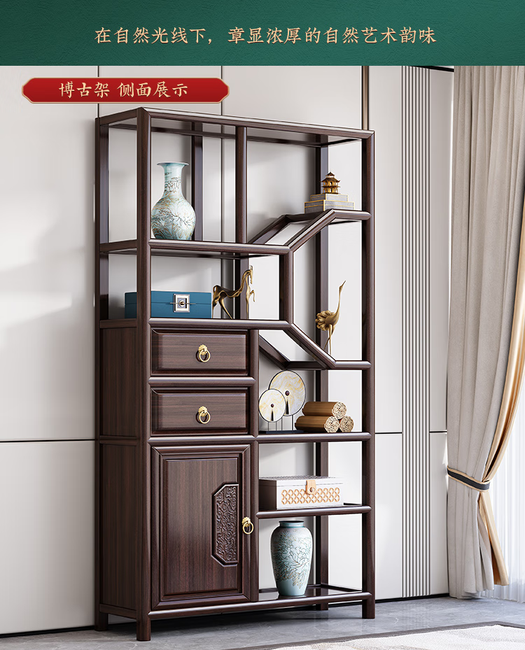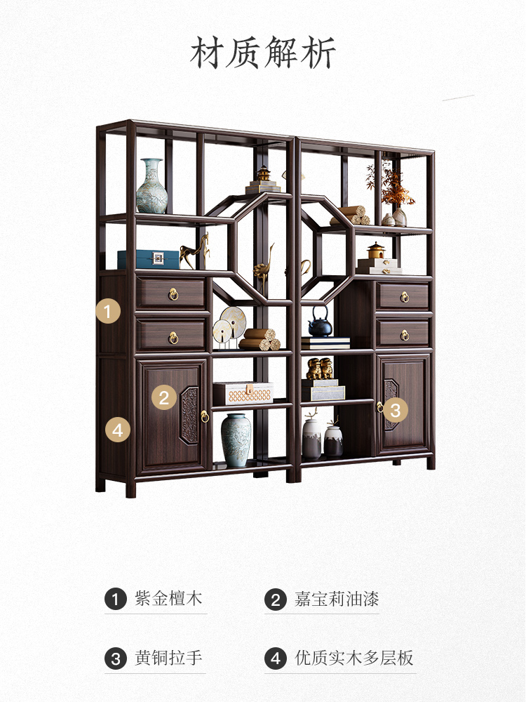 Cantonese wood journey ebony solid wood new Chinese style Bogu rack Duobao Pavilion living room partition bookshelf floor storage rack tea rack display cabinet Bogu rack left cabinet