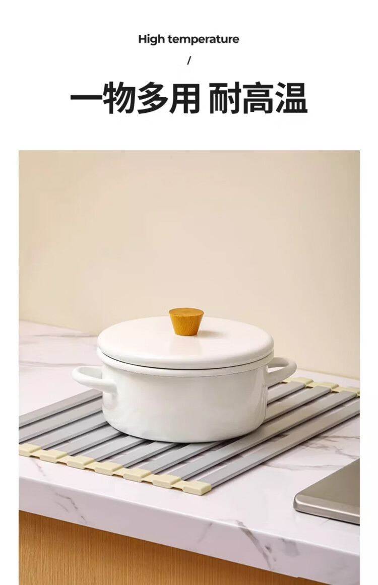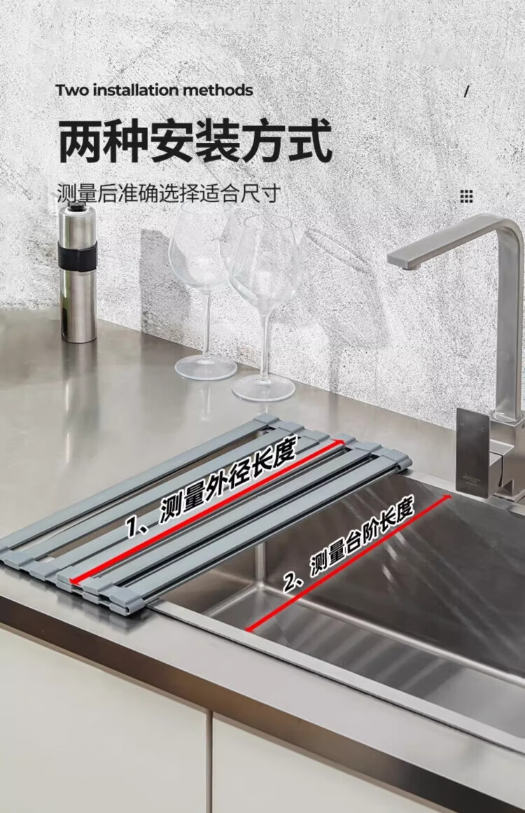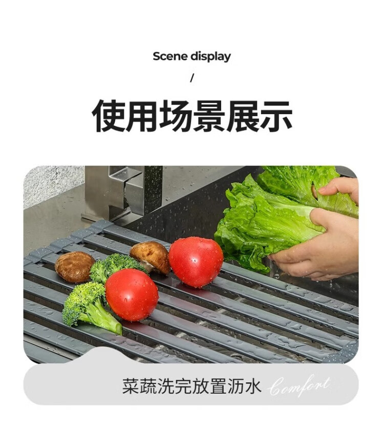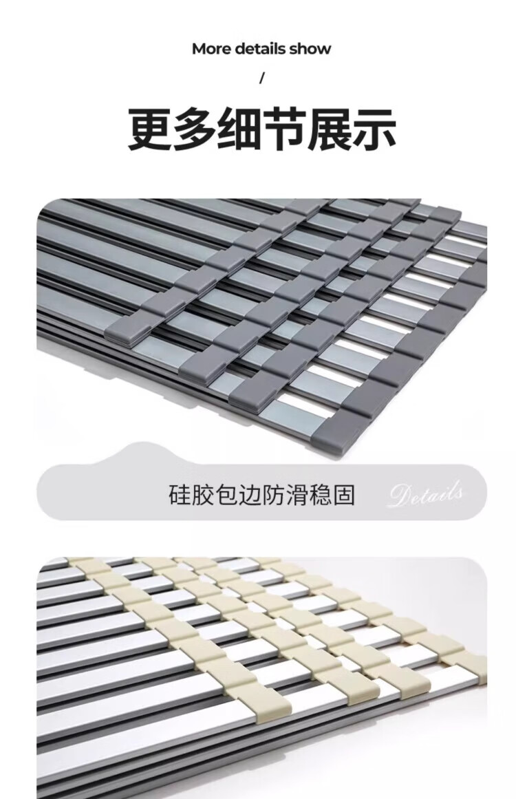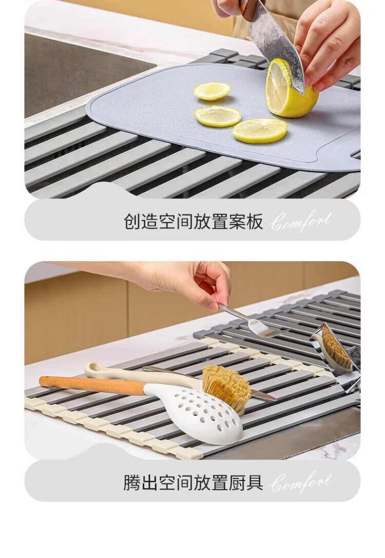 Yingtang Kitchen Sink Dish Rack Silicone Drain Rack Stainless Steel Folding Storage Rack Pool Light Luxury Silicone Water Control Roller Curtain 48*34.5CM Gun Ash-Drain Rack
